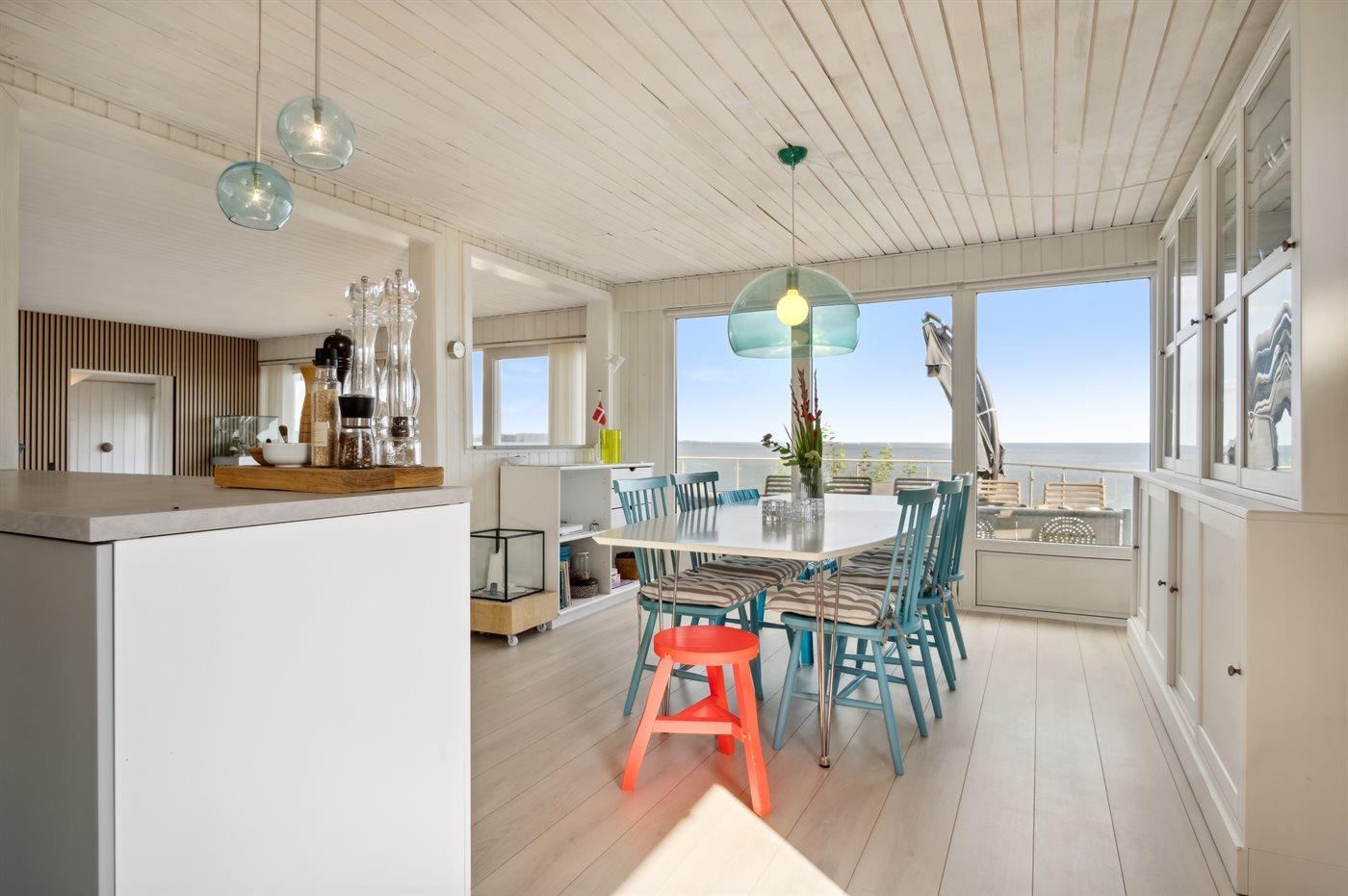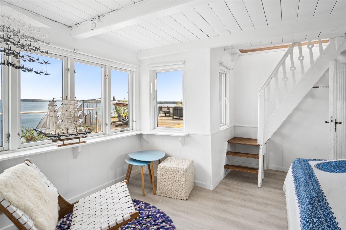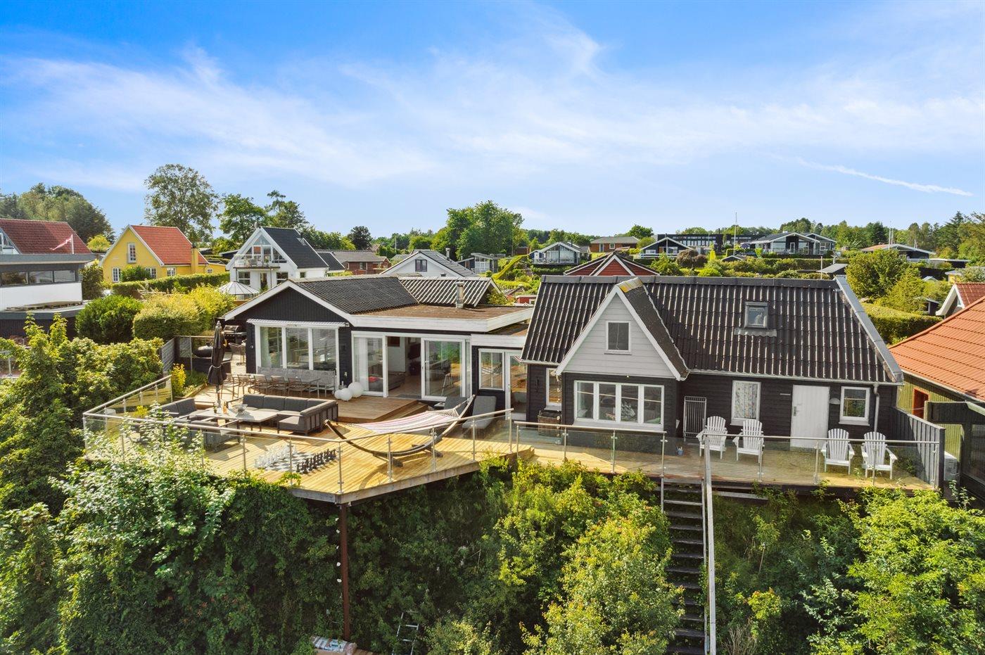 Dette skønne og meget velholdte sommerhus har en beliggenhed, som er svær at beskrive med ord og svær at finde bedre. Sommerhuset ligger helt ude i vandkanten højt hævet over fjorden, hvilket giver en enestående og bjergtagende udsigt i hvilken retning, blikket end vandrer. Husets beliggenhed er med andre ord en særdeles unik kombination af panoramaudsigt over fjorden og det smukke landskab. Man kan sidde på den fantastiske terrasse i de dejlige havemøbler med et glas vin eller en kop kaffe og med få skridt nå fjorden, som har en fin sandbund.