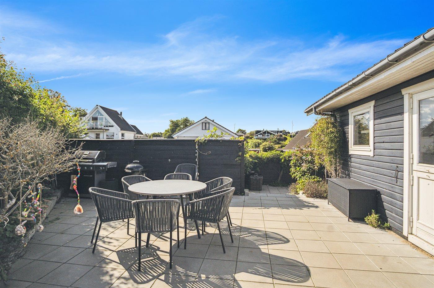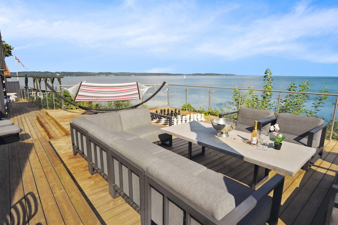 Fra den store terrasse kan der bruges timevis på at nyde disse helt særlige og ugenerte omgivelser. Her findes flere fantastiske terrasser på nærmest alle sider af huset, så der altid er mulighed for at nyde solen og sidde fuldstændig ugeneret. Efter svømmeturen i fjorden kan brusebadet tages under den udendørsbruser, og herefter kan den udendørs sauna nydes - stadig med den skønne udsigt over fjorden.
