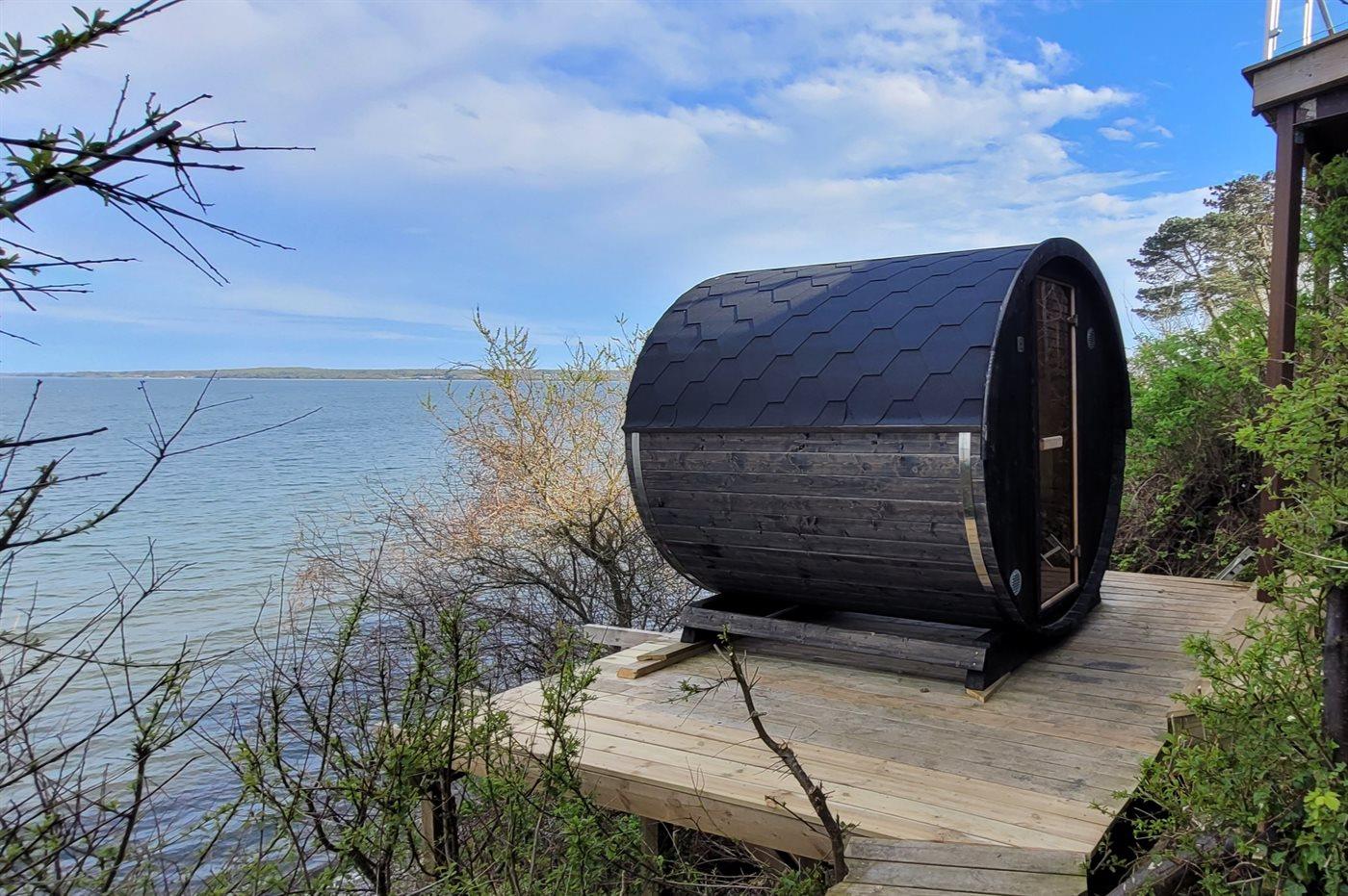 Ferieboligen er beliggende på en 1200 m² stor naturgrund. Grunden er indhegnet. Der er 5 m til havet. Nærmeste forretning er beliggende i en afstand af 3500 m. Til ferieboligen hører åbent terrasseareal. Udgang til altan. Bålsted. Udendørs sauna. Udendørs bruser. På lune aftener sørger en udendørs pejs for hyggelig stemning. Grill til rådighed. Parkering ved ferieboligen.