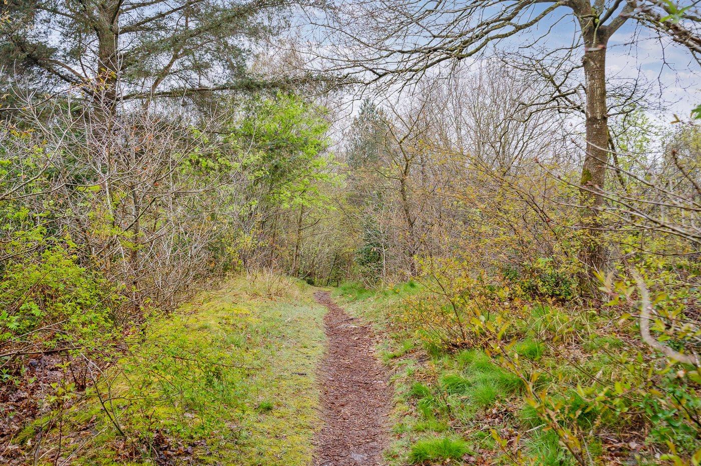 Ferieboligen er beliggende på en 2207 m² stor grund i skov/plantage. Der er 300 m til havet. Nærmeste forretning er beliggende i en afstand af 3000 m. Til ferieboligen hører åbent terrasseareal. Desuden er der overdækket terrasse. Der er redskabsrum. Trampolin. Grill til rådighed. Der er installeret stik til opladning af elbil. Type 2 stik. Med 11 kW ladeeffekt. Parkering ved ferieboligen.