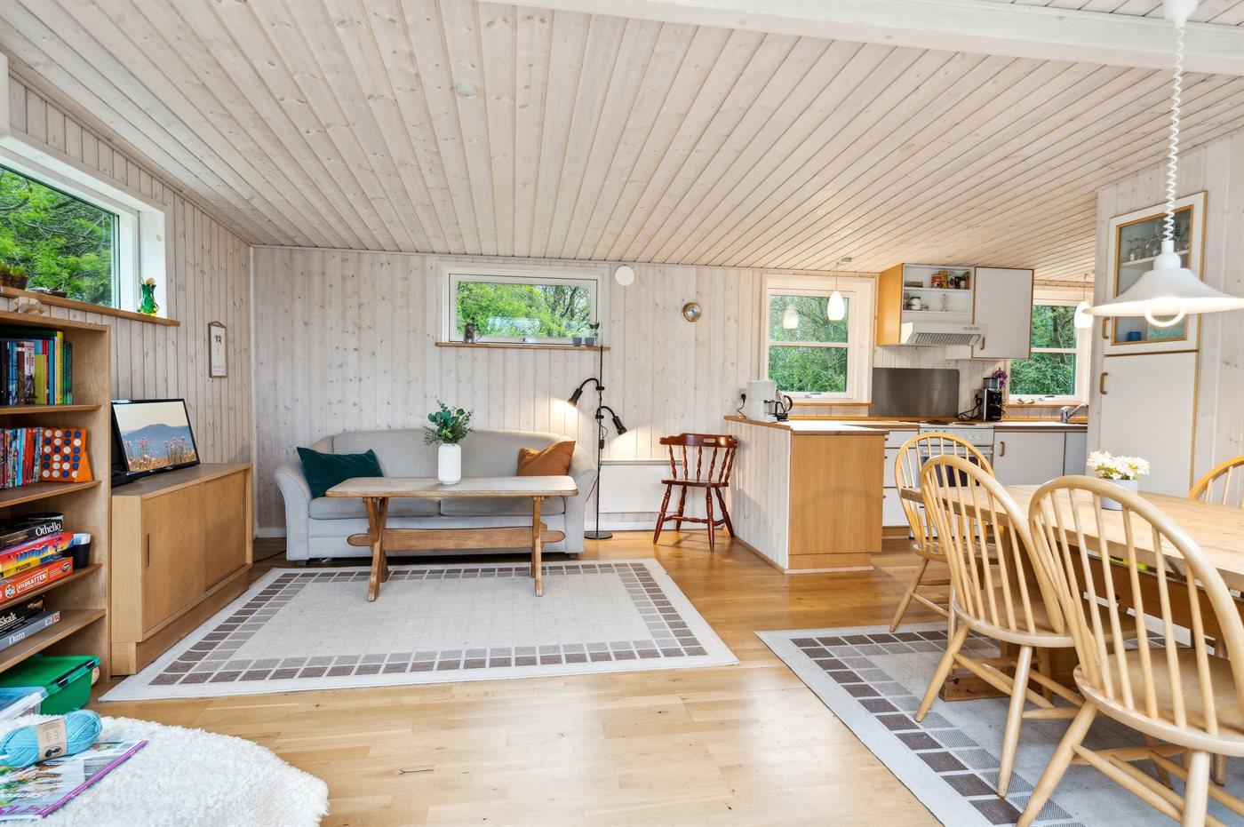 Indvendigt fremstår feriehuset lyst og moderne med en rigtig god planløsning, så boligen er oplagt til f.eks. en familie med 2 børn eller måske blot et par, som ønsker at tage hunden med på ferie. Sommerhuset er løbende renoveret og senest i 2024. Den skønne have er et herligt sted at opholde sig. Grunden er dejlig ugeneret, og her er god plads til, at børn kan boltre sig på den skønne naturgrund.