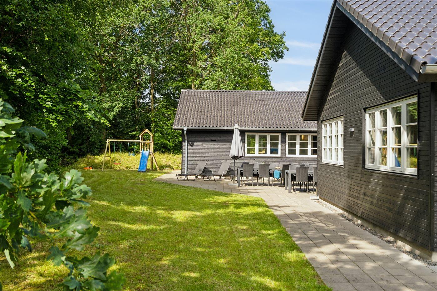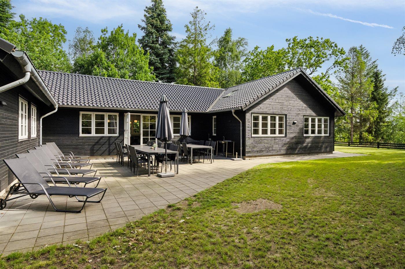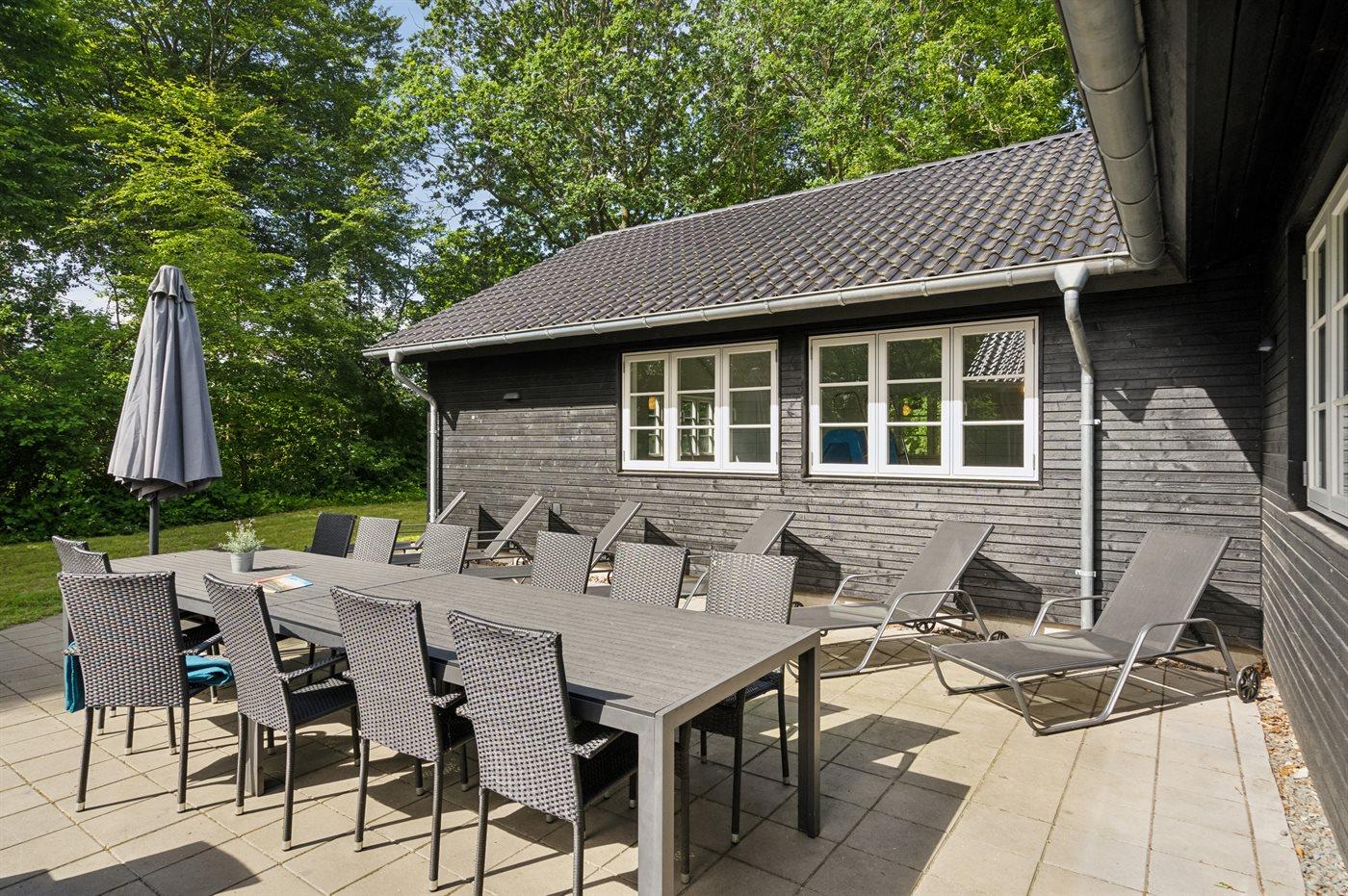 Den skønne have er et herligt sted at opholde sig. Huset er beliggende fuldstændig ugeneret omgivet af høje træer, hvilket er ganske unikt for så stort et luksussommerhus. På grunden er der god plads til, at børn kan boltre sig. Sommerhuset har et skønt terrasseareal. Herfra kan de naturskønne og fredelige omgivelser nydes i fulde drag, og der er altid mulighed for at finde en dejlig lækrog.