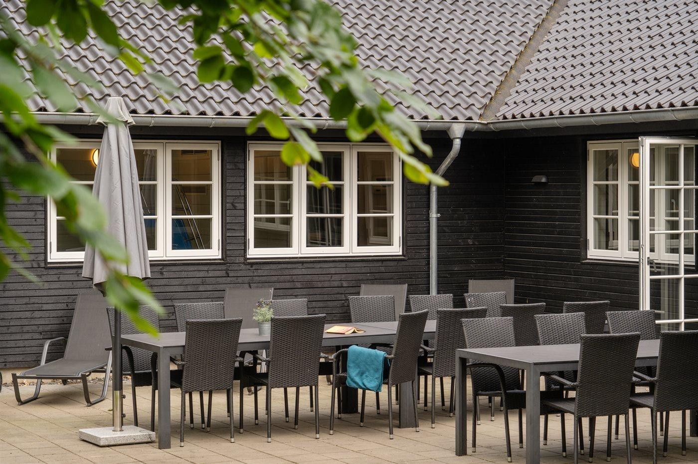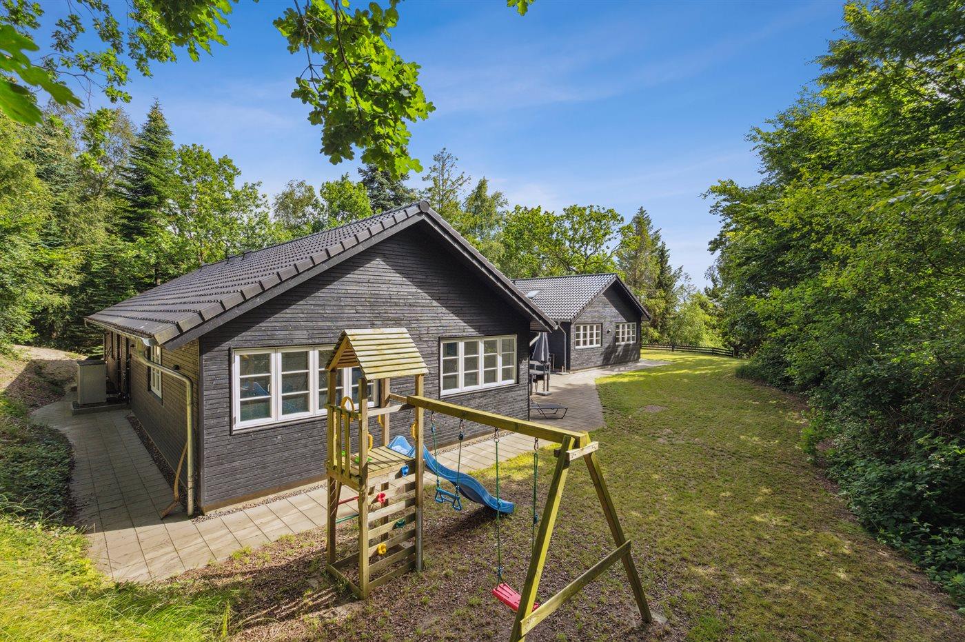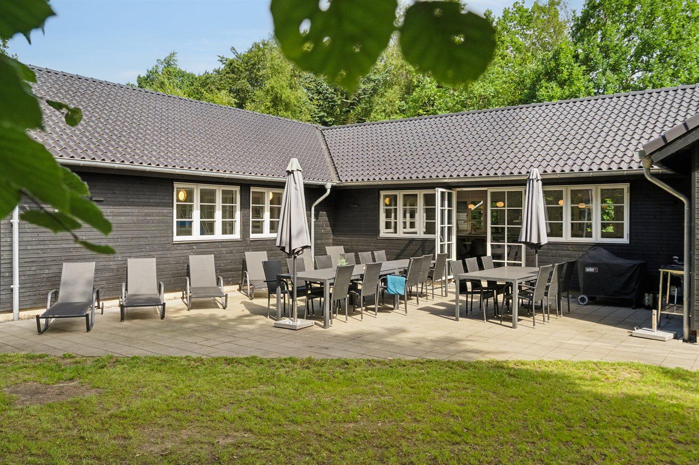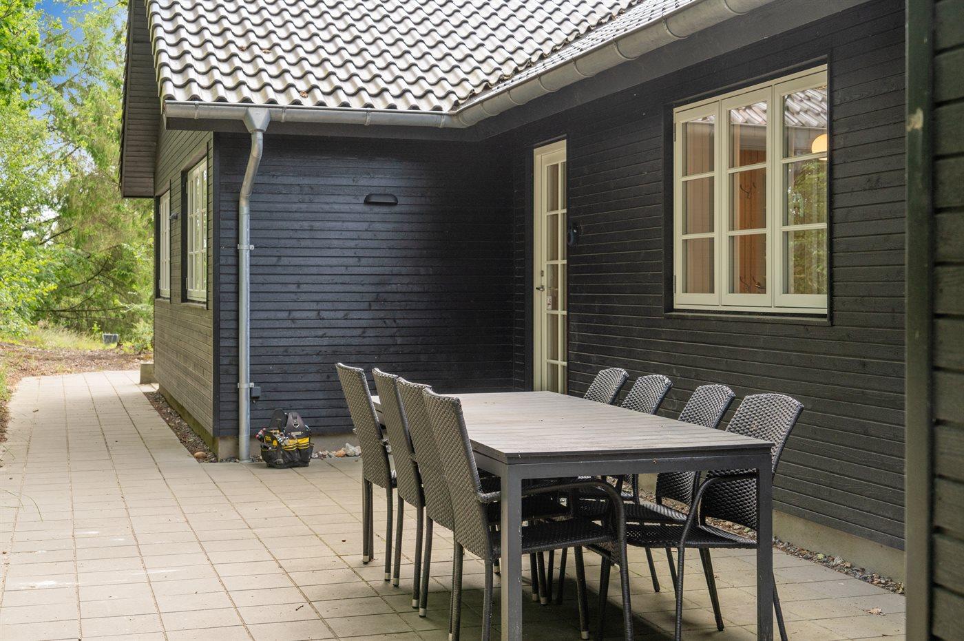 Den skønne have er et herligt sted at opholde sig. Huset er beliggende fuldstændig ugeneret omgivet af høje træer, hvilket er ganske unikt for så stort et luksussommerhus. På grunden er der god plads til, at børn kan boltre sig. Sommerhuset har et skønt terrasseareal. Herfra kan de naturskønne og fredelige omgivelser nydes i fulde drag, og der er altid mulighed for at finde en dejlig lækrog.