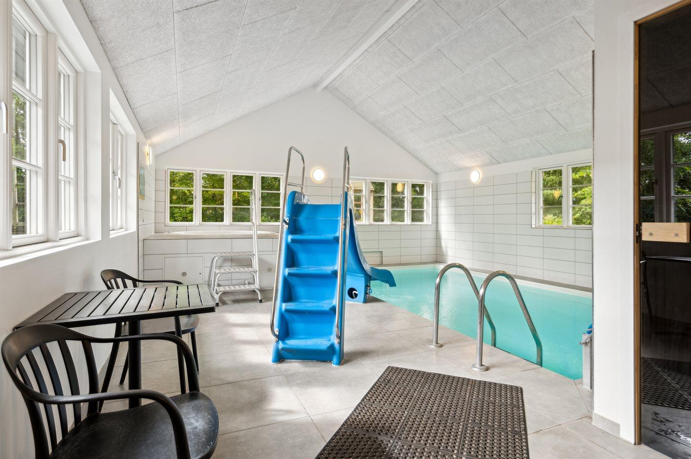 I den indendørs swimmingpool er der mulighed for leg og hyggeligt samvær.Swimmingpoolen har modstrømsanlæg. Der findes en vandrutsjebane. Der er gulvvarme i swimmingpoolområdet.