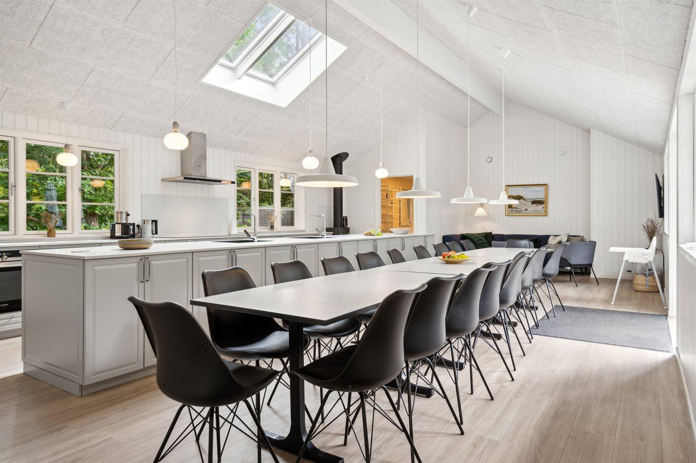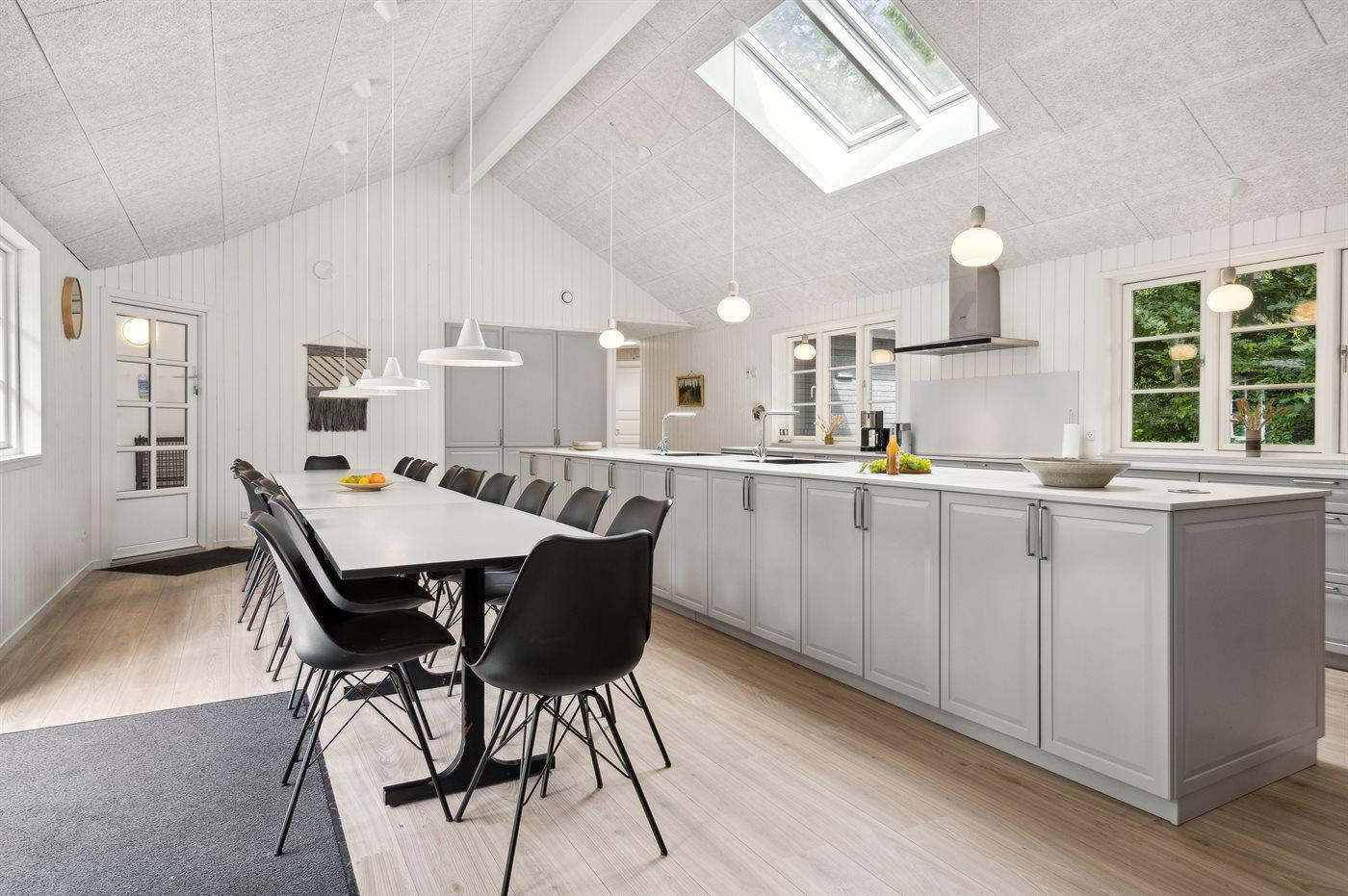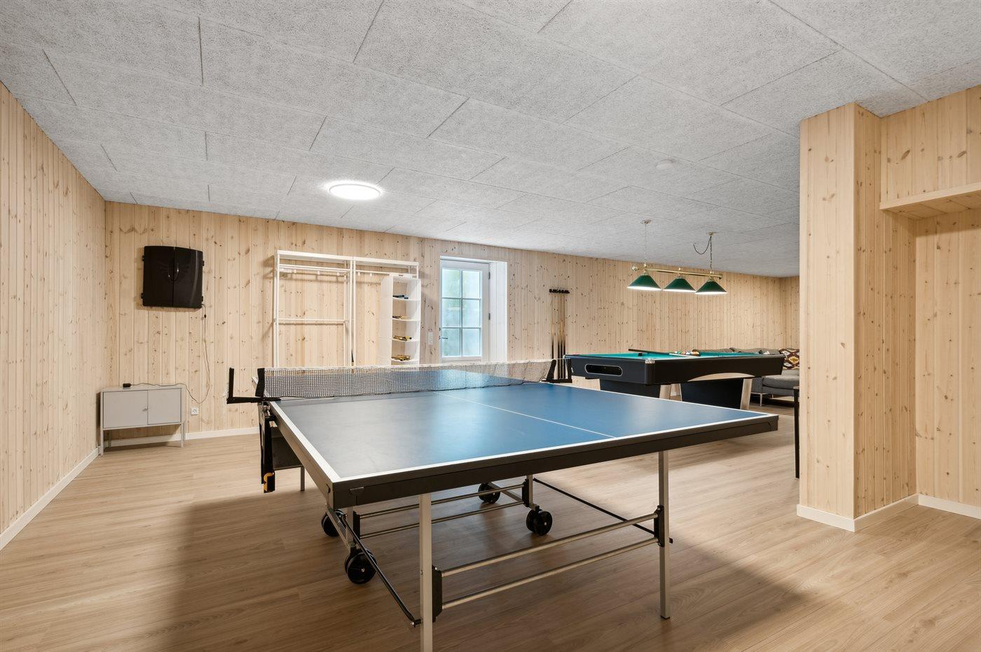 Her er tale om et sommerhus udover det sædvanlige, og her er alt hvad hjertet kan begære af indendørs faciliteter. Lige fra den store og indbydende swimmingpool med bl.a. vandrutsjebane og det store og dejlige spabad med plads til 6 personer og ikke at forglemme, det store aktivitetsrum, hvor udvalget af aktiviteter, som hele familien kan hygge sig med i timevis, er stort. Huset på hele 333 m2 er opført i fornem kvalitet og bygget i 2021 - her er mange gode detaljer, og husets hjerte er - foruden den fantastiske swimmingpoolafdeling - køkkenalrummet, hvor alle gæster kan samles til uforglemmelige ferieminder.