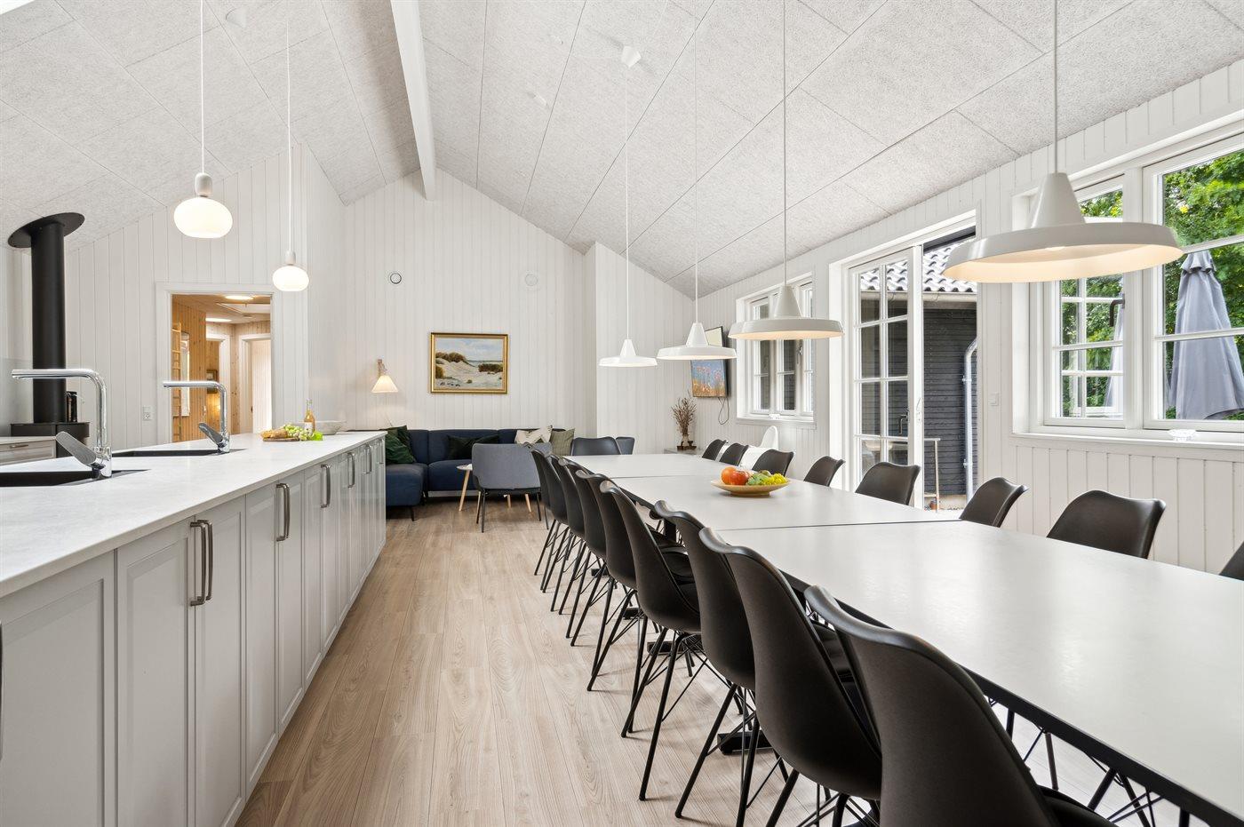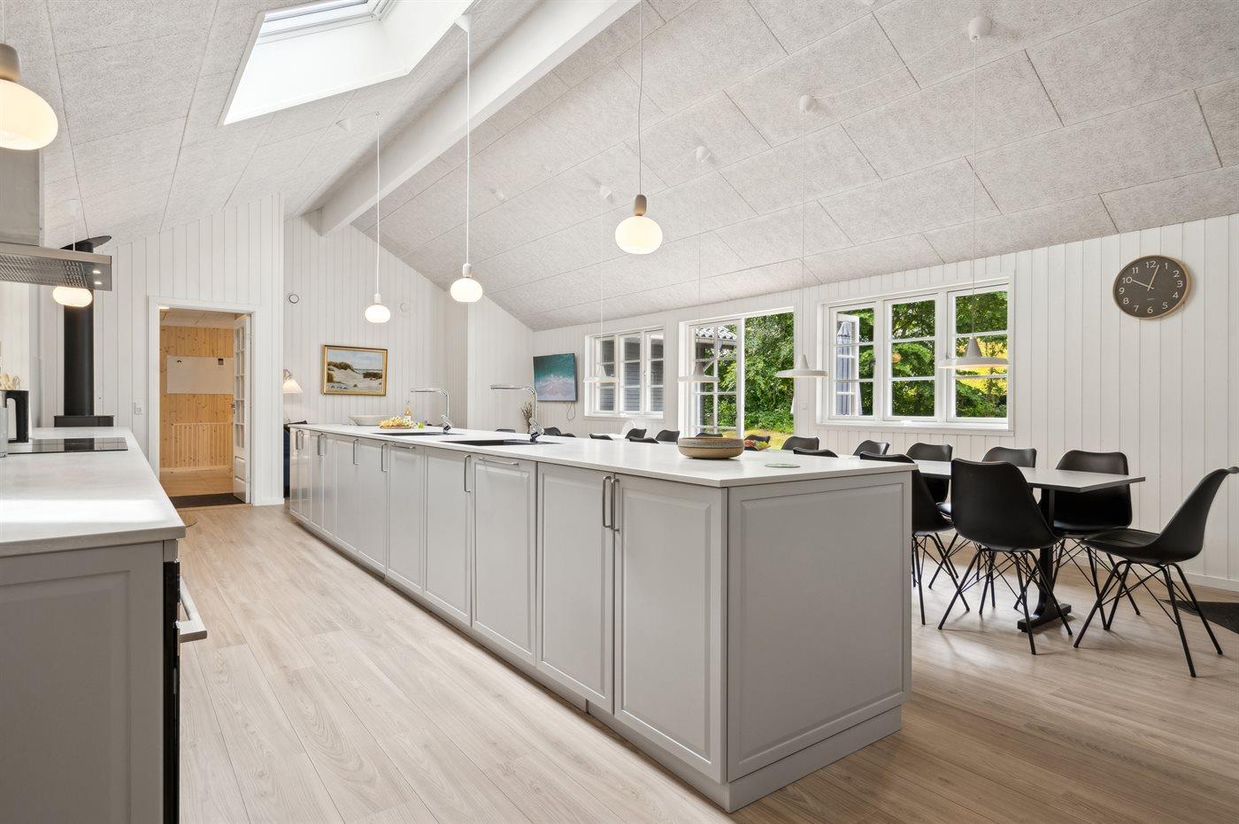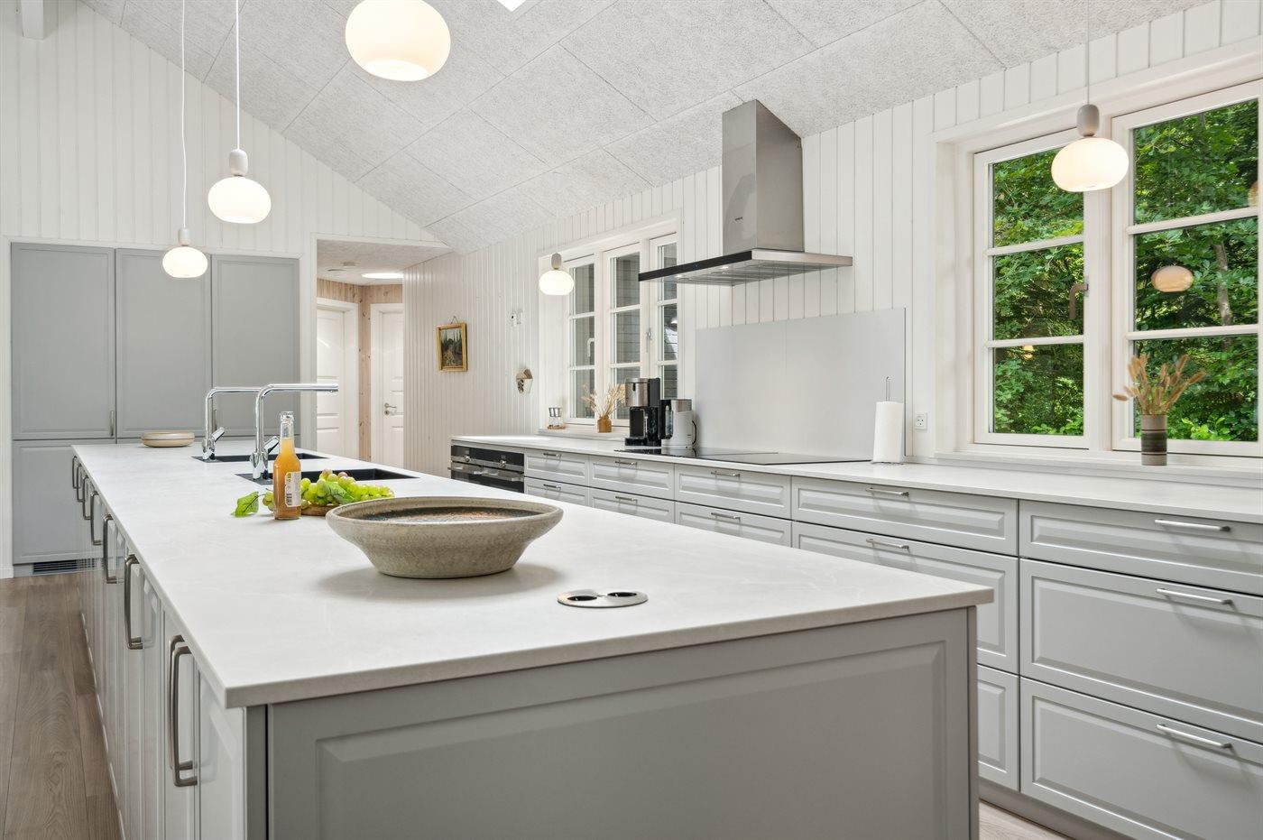Her er tale om et sommerhus udover det sædvanlige, og her er alt hvad hjertet kan begære af indendørs faciliteter. Lige fra den store og indbydende swimmingpool med bl.a. vandrutsjebane og det store og dejlige spabad med plads til 6 personer og ikke at forglemme, det store aktivitetsrum, hvor udvalget af aktiviteter, som hele familien kan hygge sig med i timevis, er stort. Huset på hele 333 m2 er opført i fornem kvalitet og bygget i 2021 - her er mange gode detaljer, og husets hjerte er - foruden den fantastiske swimmingpoolafdeling - køkkenalrummet, hvor alle gæster kan samles til uforglemmelige ferieminder.