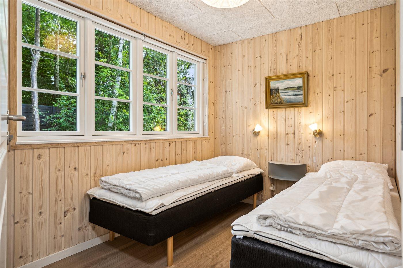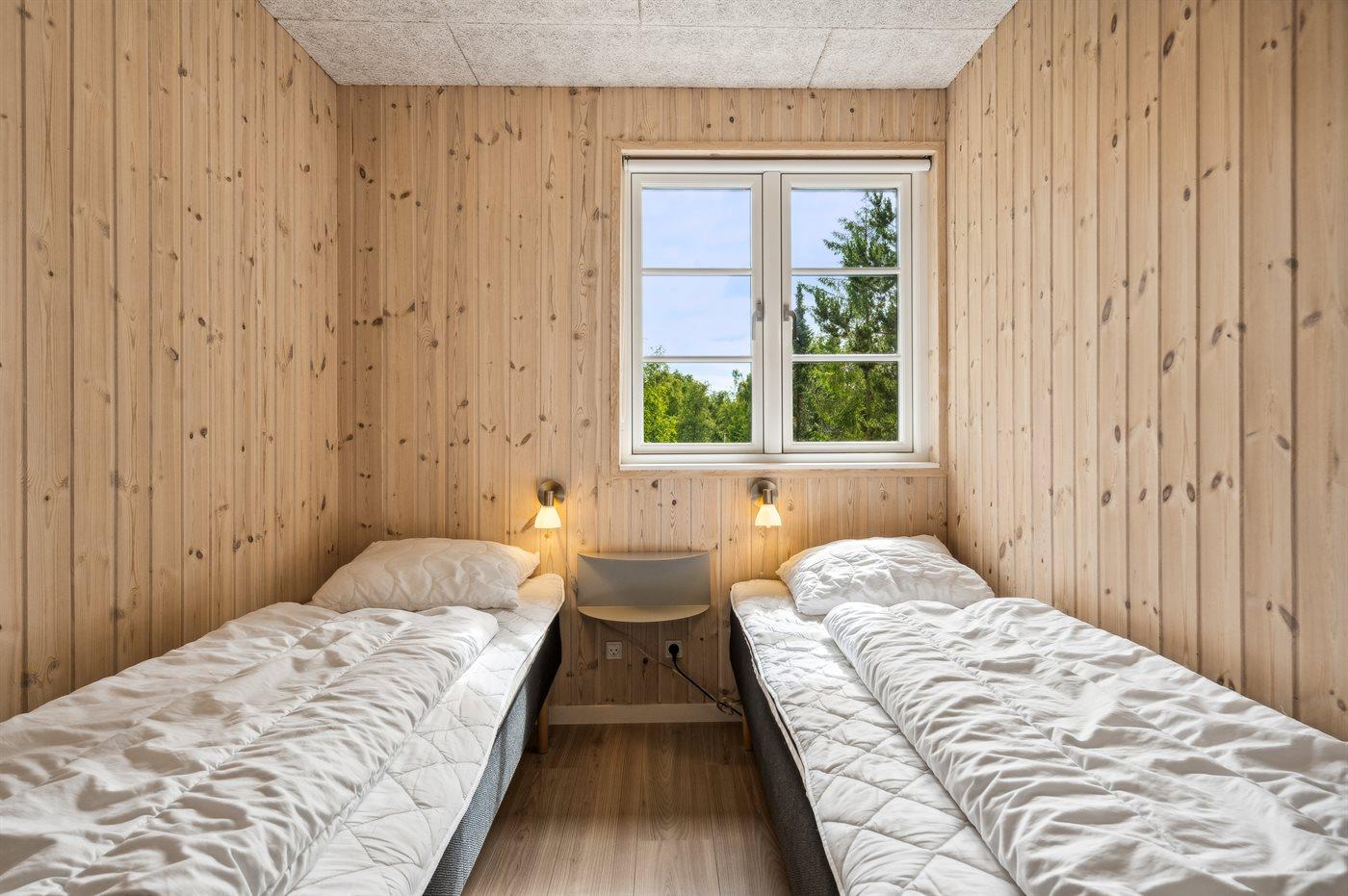 Der er i alt 9 soveværelser. Sovepladserne fordeler sig på: 18 sovepladser i enkeltsenge. 2 sovepladser på madrasser. 2 af disse sovepladser befinder sig på husets hems. Derudover er der 1 stk. barneseng.