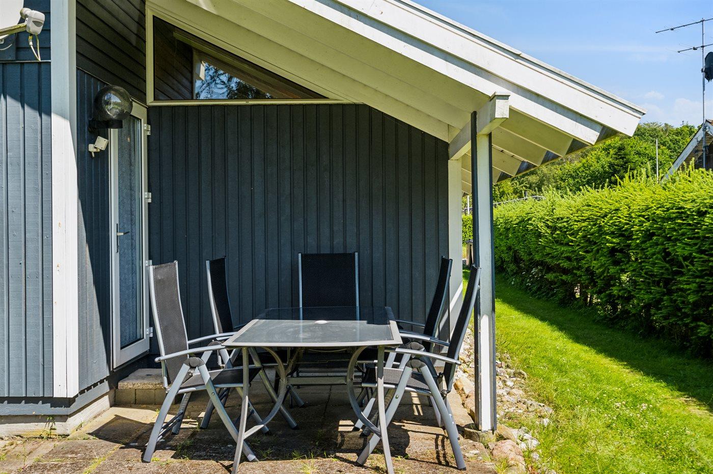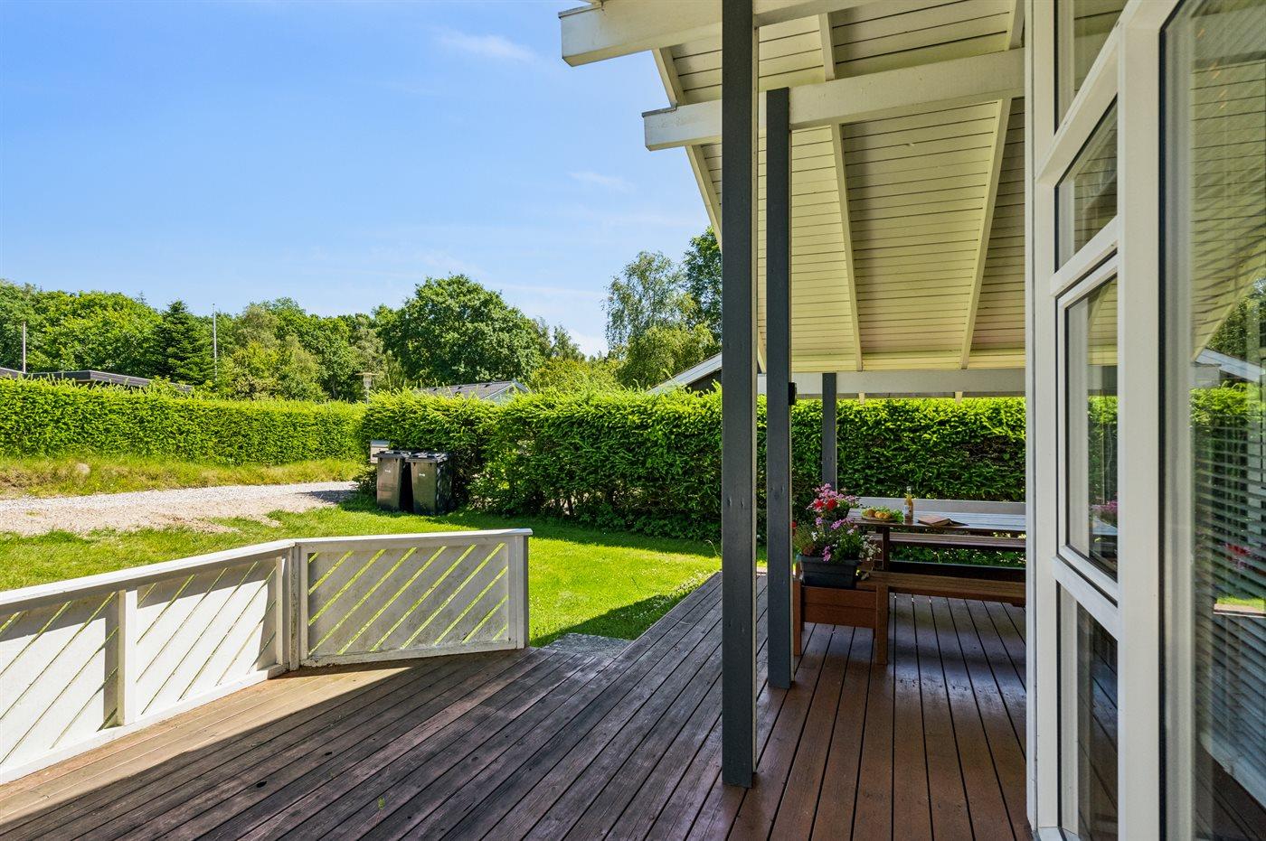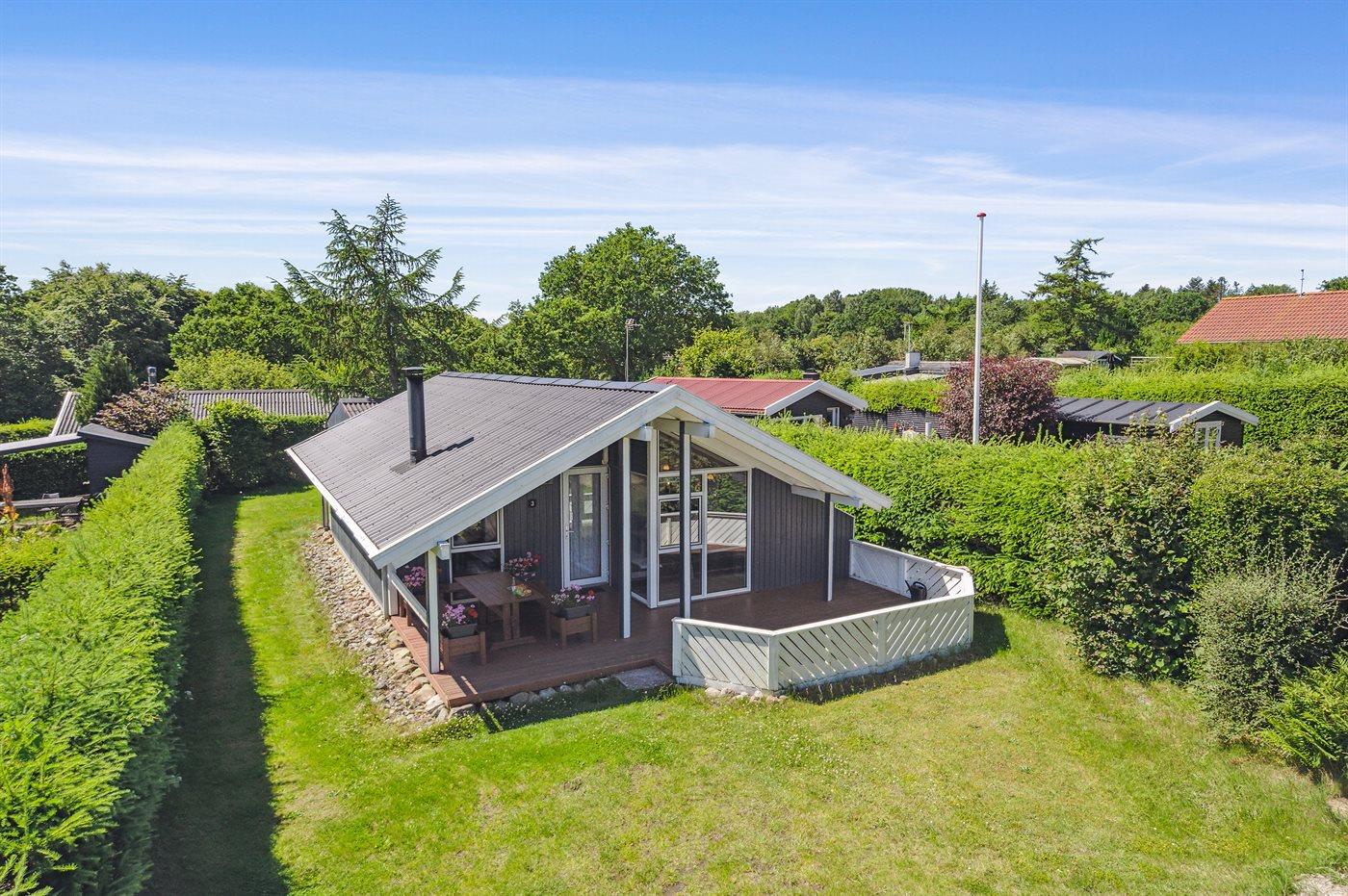 Sommerhuset har et godt terrasseareal, som også delvist er overdækket. Herfra kan stilheden nydes i fulde drag, og der er altid mulighed for at finde en fin lækrog. Ferieområdet indbyder til gåture i den dejlige natur, og en særlig oplevelse er et besøg på Hvidbjerg Klit, som ligger blot ca. 500-600 meter fra sommerhuset. Området byder også på et ishus og kaffested.