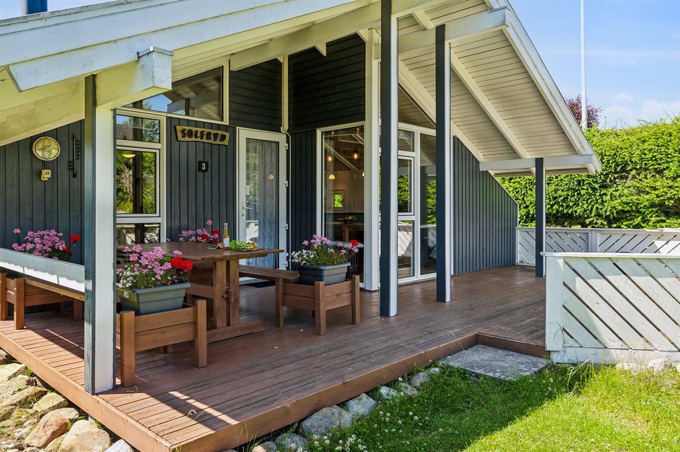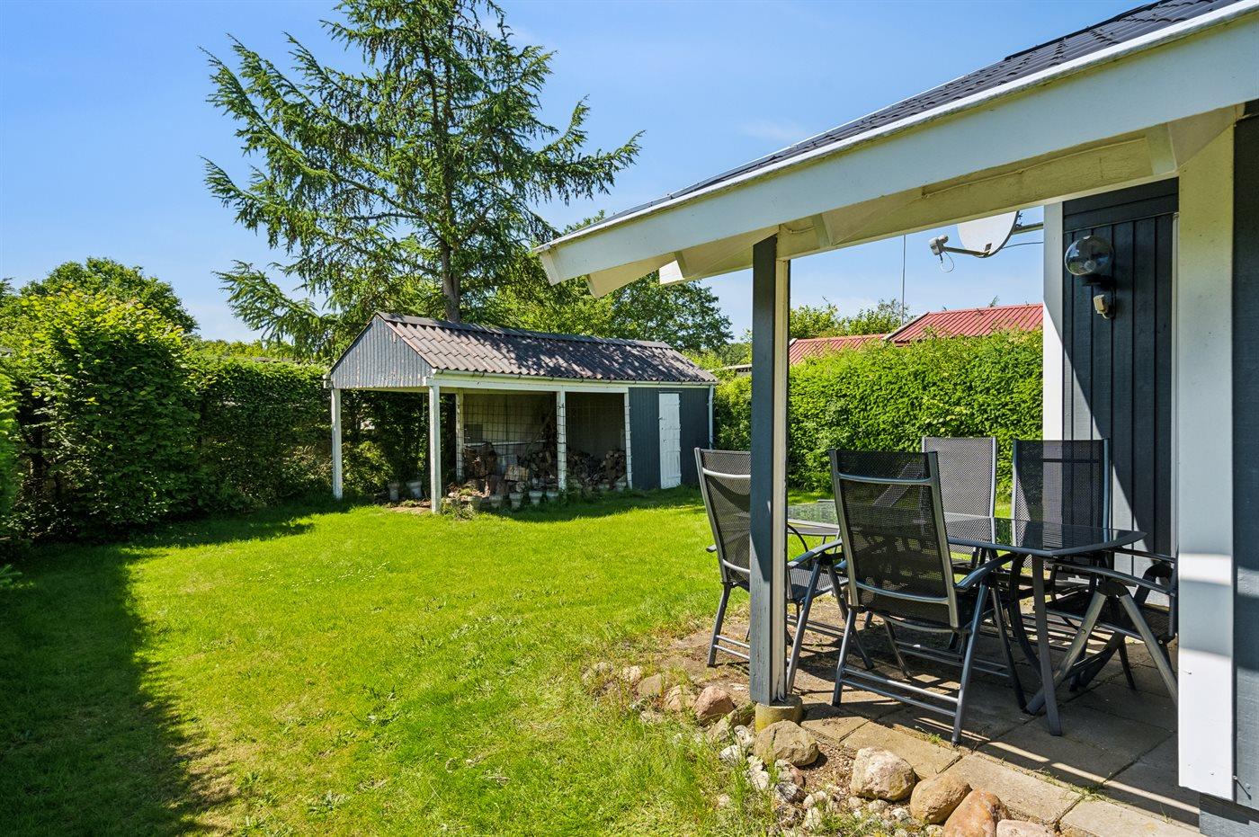 Hyggeligt sommerhus nær Lillebælt med skøn have, terrasse og tæt på børnevenlig sandstrand.