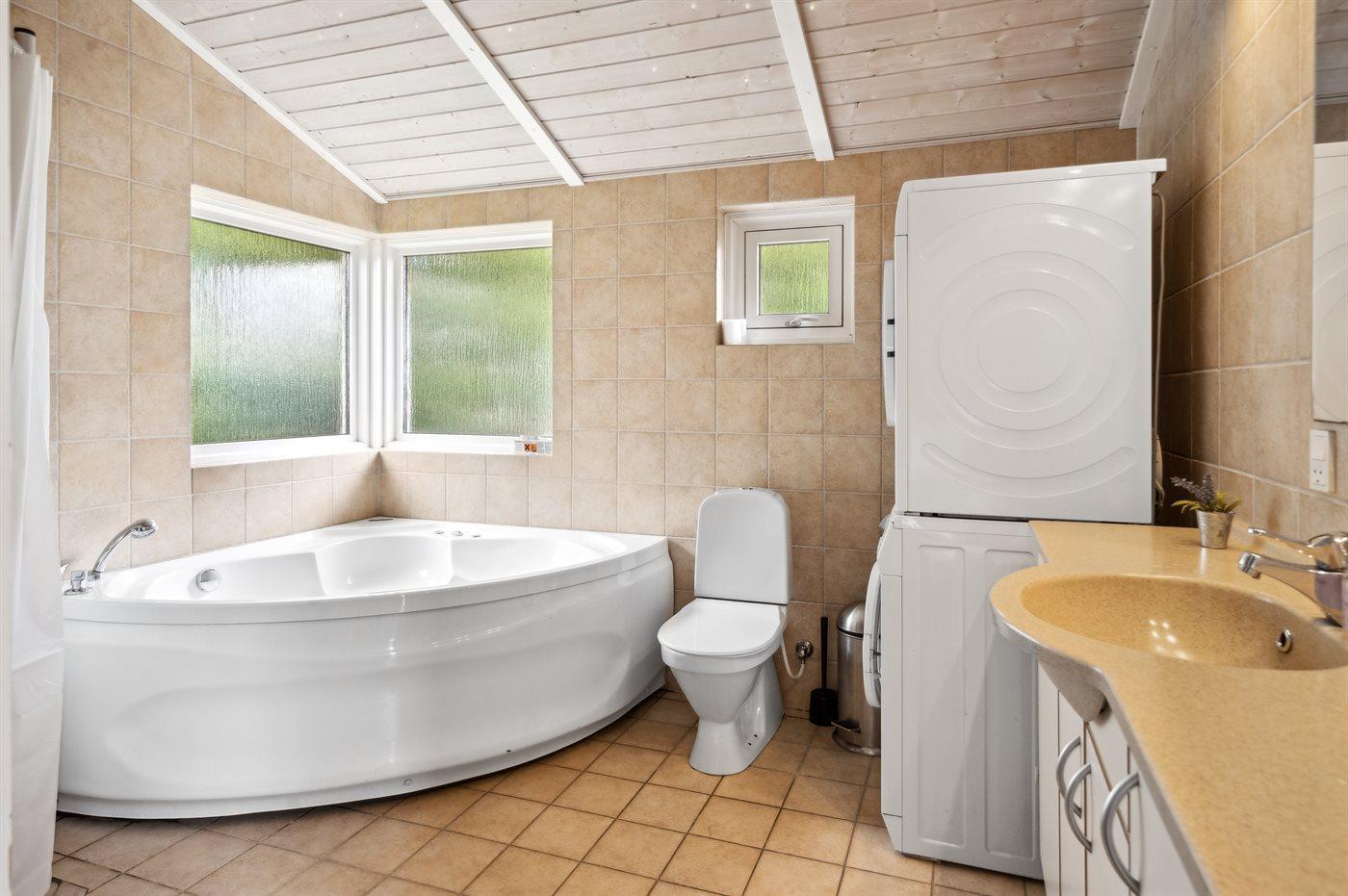 Der er 2 badeværelser med bruseniche og 2 toiletter. Der er gulvvarme på 2 badeværelser. I saunaen er der mulighed for afslapning.
