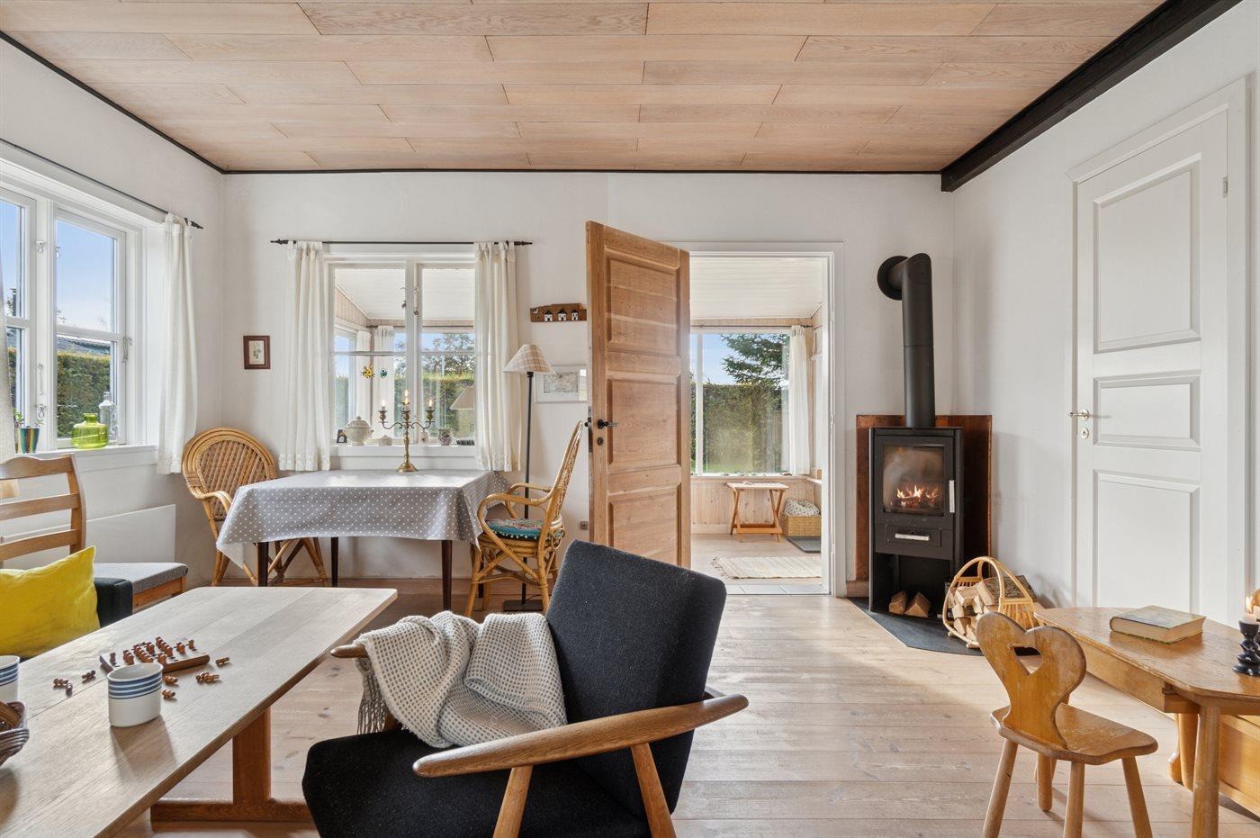 Hyggeligt sommerhus nær børnevenlig strand ved Høll med anneks og dejlig terrasse.