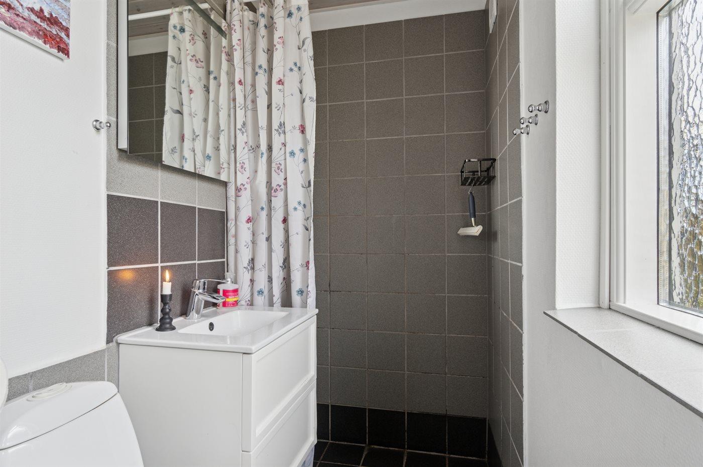 Der er 1 badeværelse med bruseniche og 1 toilet.