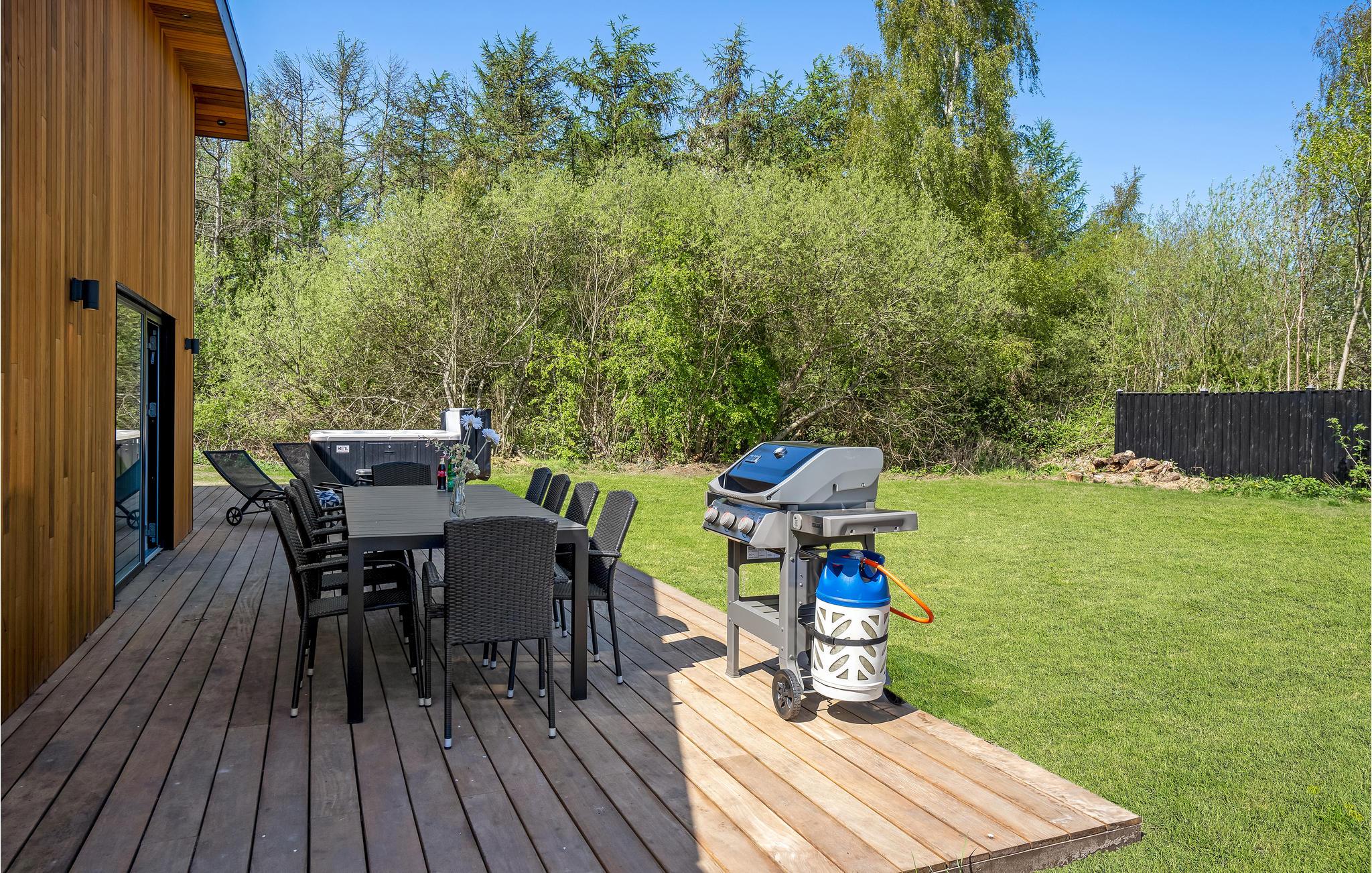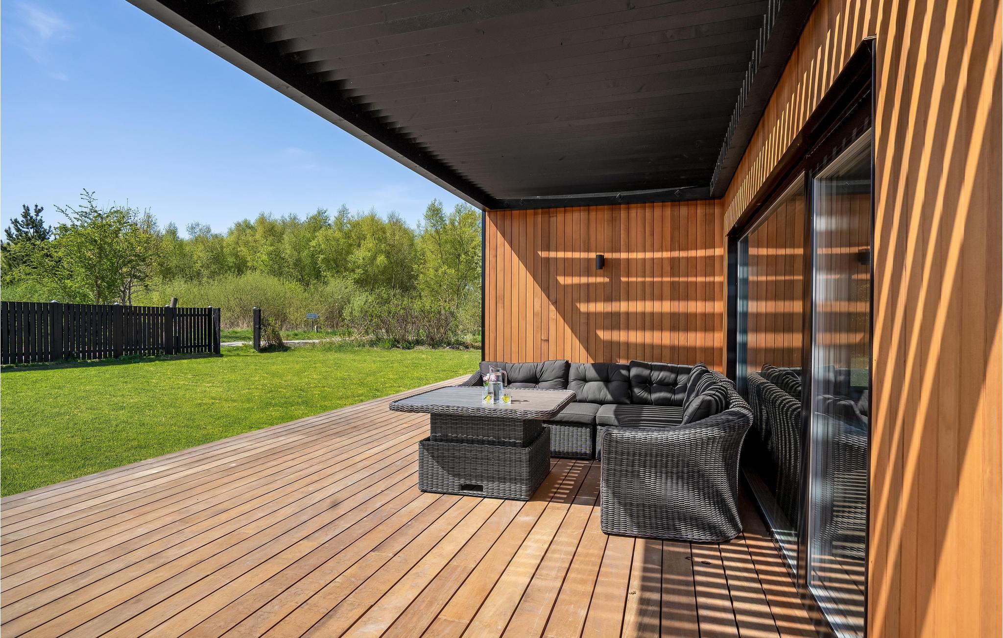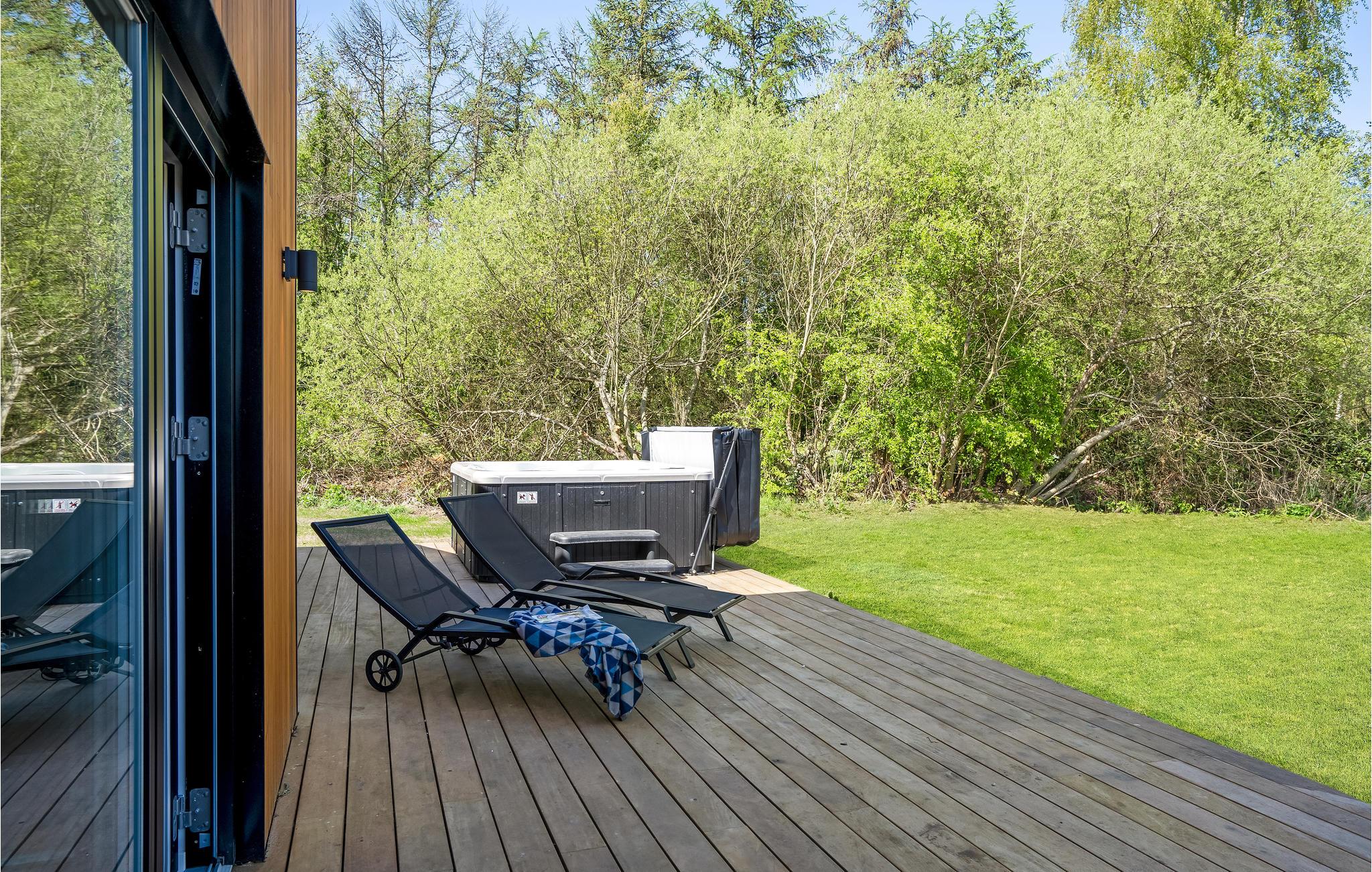 Der er åbne terrasser på begge sider af huset, således at I altid har mulighed for at sidde i solen. På den ene terrasse finder I også et udendørs spabad, hvor I på én og samme gang kan nyde det varme vand, den friske luft og måske en kølig drink.