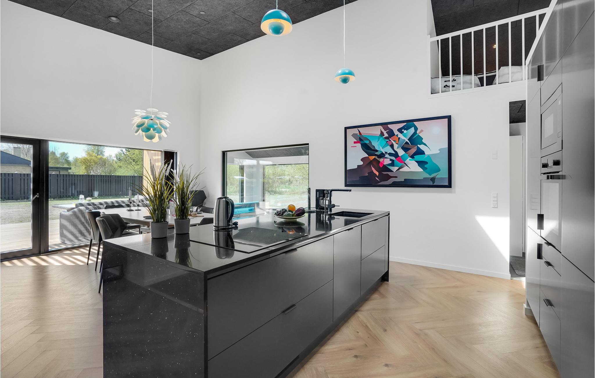 Velkommen til dette skønne feriehus, der imponerer ude som inde. Huset er meget rummeligt og skaber rammer om en luksusferie for op til ti gæster. Husets hjerte er det kæmpestore køkken-alrum med et topmoderne, veludstyret køkken m. tilhørende spiseplads på den ene side og et skønt sofarrangement med fladskærm på den anden. Her kan I tilberede lækre feriemåltider og flade dejligt ud, mens I hyggesnakker og ser fjernsyn. Et absolut højdepunkt ved huset er poolrummet, hvor I kan tilbringe timevis med at svømme baner og plaske rundt i vandet.