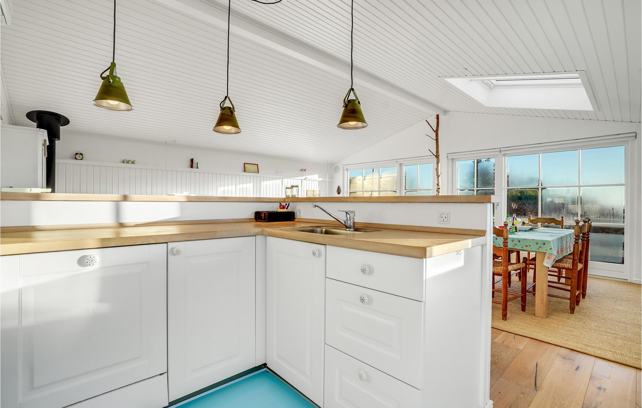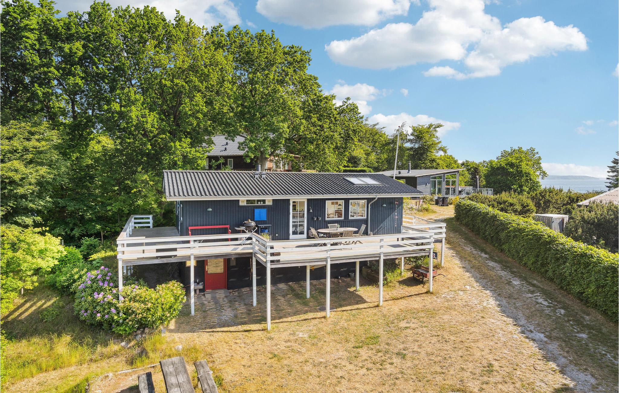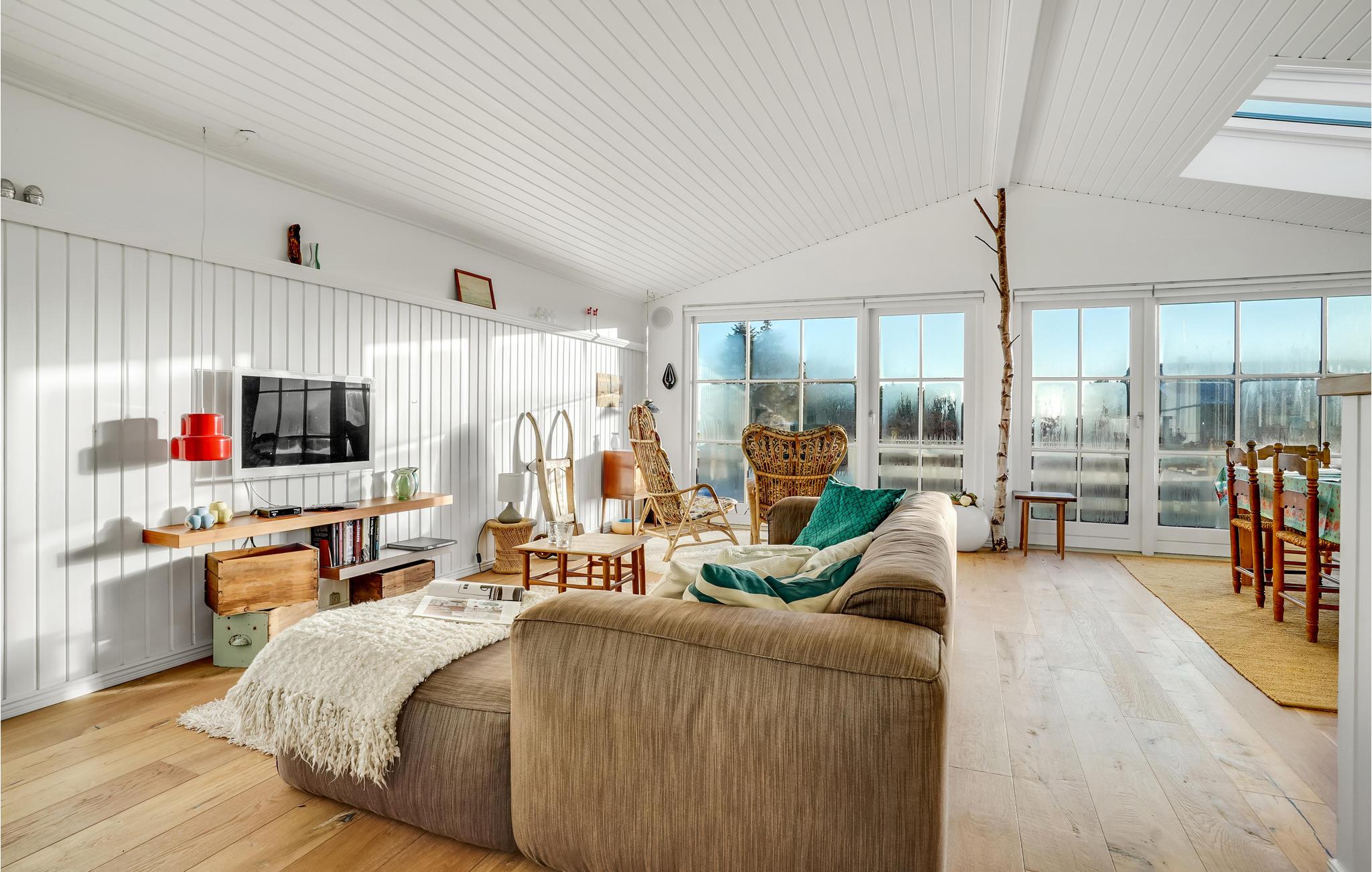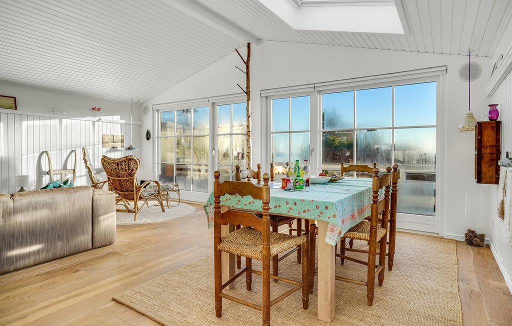 Glæd jer til en rolig og afslappende ferie i Hvidbjerg. Det lyse feriehus inviterer jer til at blive i feriehuset og læse en god bog i lænestolene, lægge fødderne op mens I ser en film og lade den knitrende ild i brændeovnen varme jer. I kan også tilbringe en dejlig tid udendørs på træterrassen. Nyd jeres morgenmad i den friske luft, mens I beundrer udsigten over fjorden.