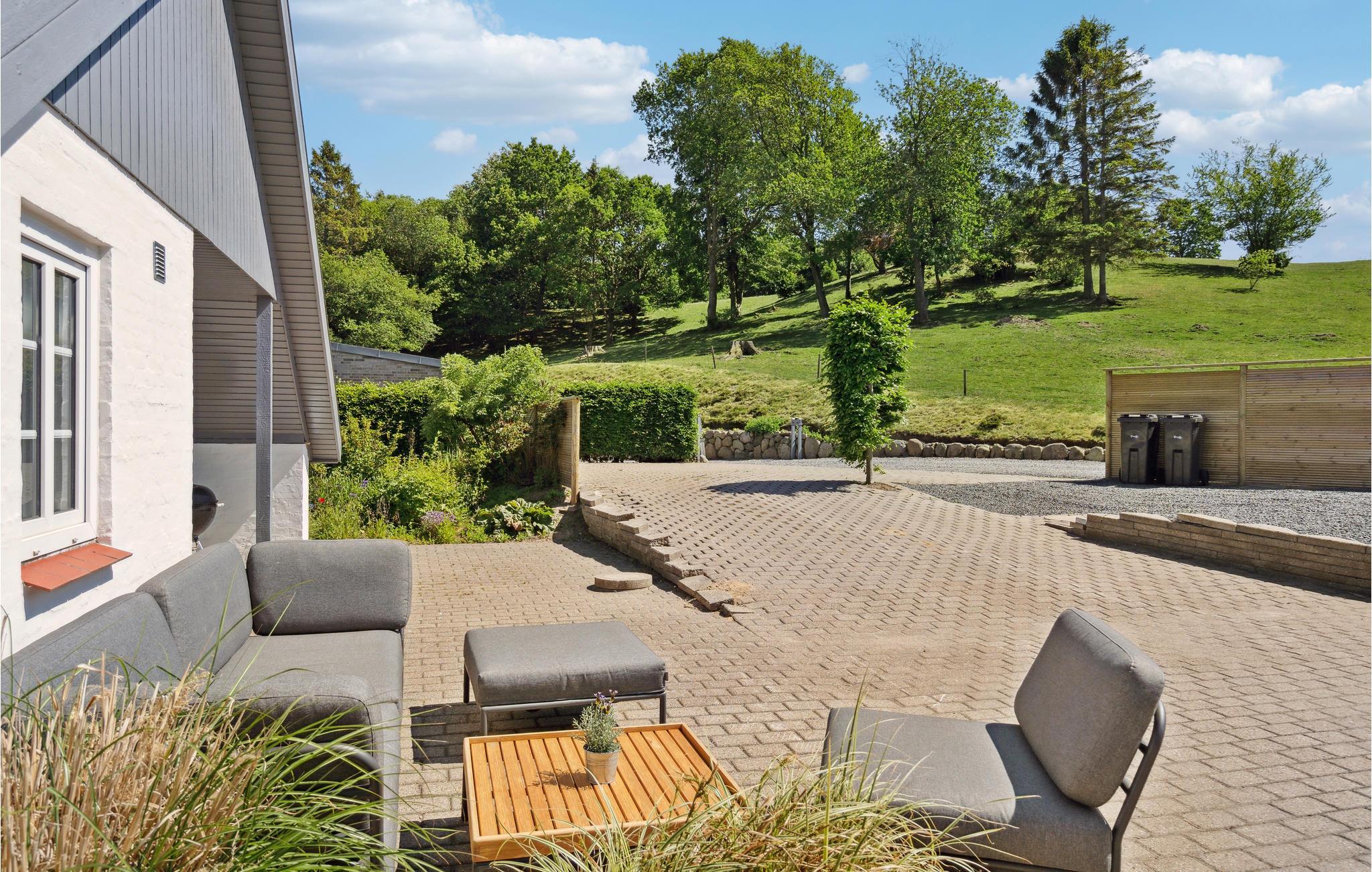 Velkommen til dette dejligt beliggende feriehus med kig til Vejle Fjord. Huset er charmerende med et hjemligt interiør. Her spiser I ved det lange spisebord med en uforlignelig fjordudsigt. Stuen bliver hurtigt centrum for fælles aktiviteter. Sæt jer godt til rette på sofaen efter en begivenhedsrig dag og se jeres yndlingsserie. Efter en tur i naturen byder saunaen på skøn afslapning. Den meget store, anlagte have byder på masser af plads til leg og afslapning. Nyd solen på terrassen, hyggelige grillaftener og den fantastiske udsigt.