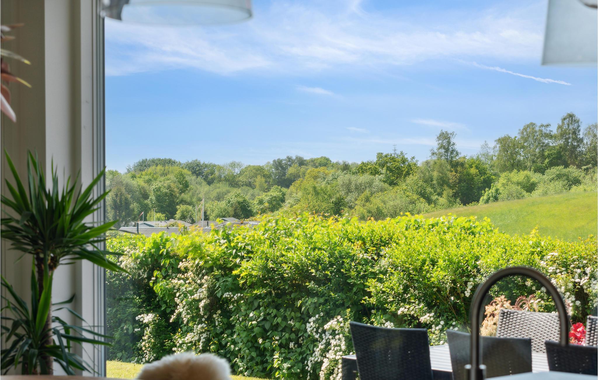 Eksklusivt feriehus ved Vejle Fjord med panoramaudsigt, moderne køkken og skøn have for en afslappende ferieoplevelse.
