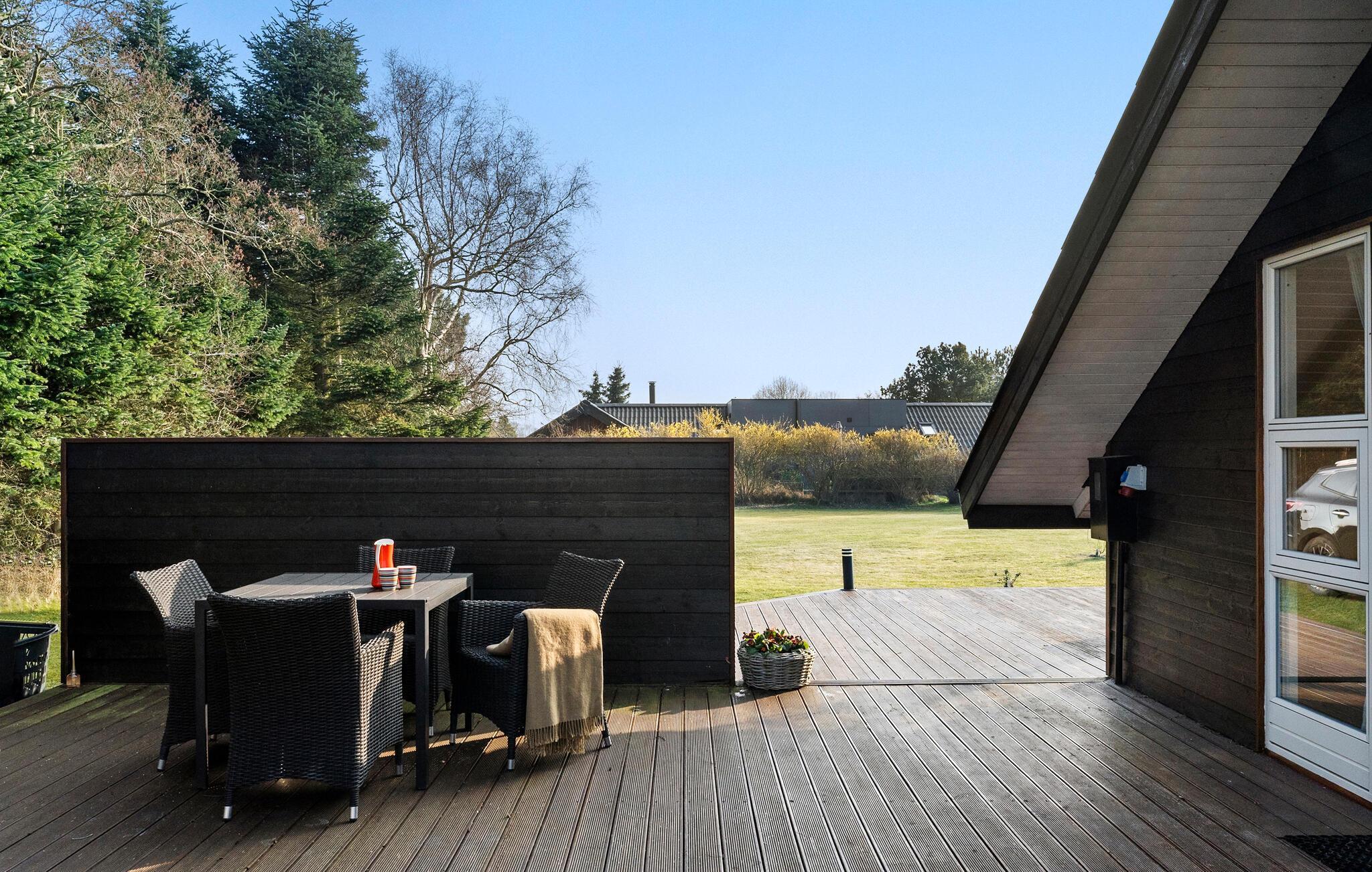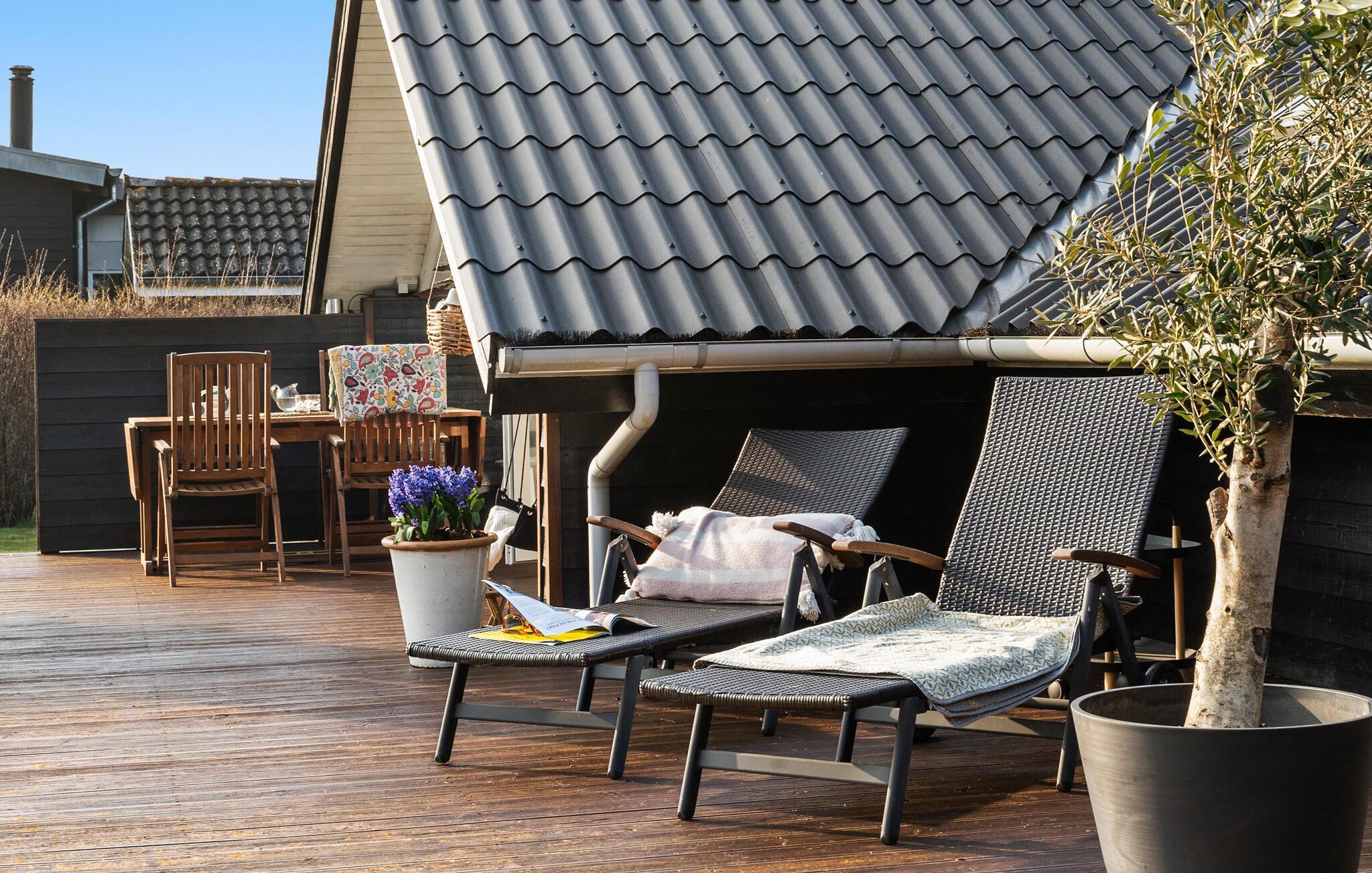 Udenfor er der en rummelig terrasse med masser af siddepladser, ideel til solrige eftermiddage eller milde aftener. Haven giver plads til at dvæle eller få lidt motion i den friske luft. friluftsmennesker nyder at se på fugle eller en frisk brise fra havet.