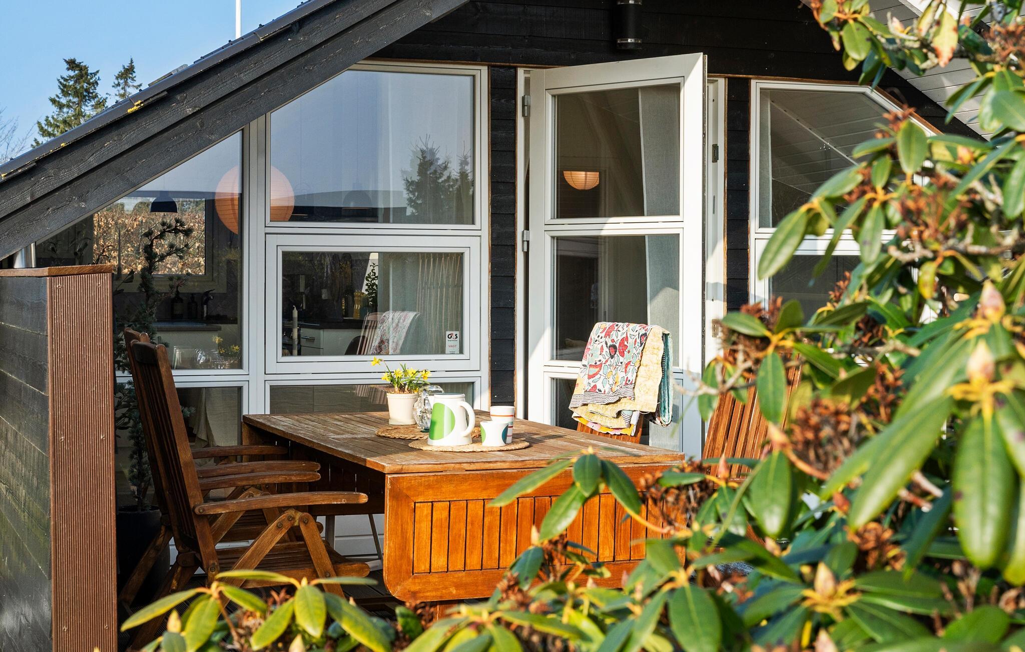Nyd et moderne feriehus med terrasse og delvis havudsigt tæt på Hvidbjerg Strand i Børkop.