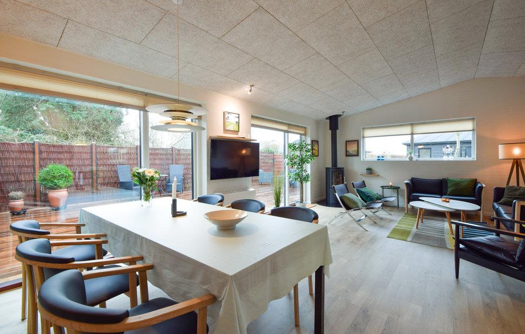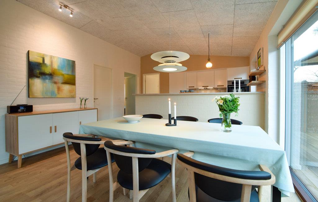 Rummeligt og elegant feriehus tæt på sandstrand med stor terrasse og moderne faciliteter i Børkop.