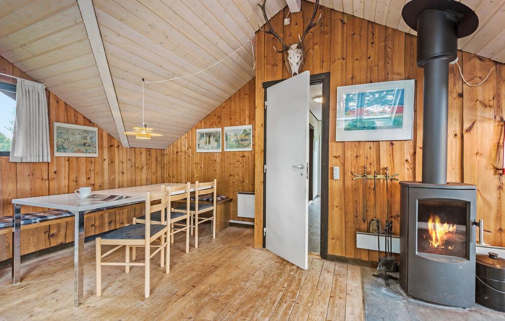 Indenfor i huset venter jer en stemning af træ i den åbne stue samt en knitrende brændeovn, som også på køligere aftener sørger for behagelig varme. Tilbring afslappede timer i den hyggelige siddekrog, eller nyd fælles måltider ved spisebordet, mens I nyder udsigten over naturen. Det veludstyrede køkken inviterer til at tilberede lækre retter til hele familien.