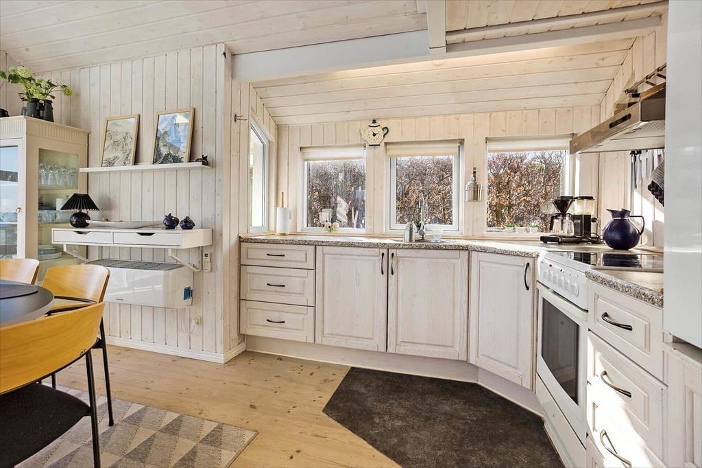 Sommerhus i Hvidbjerg, Sydøstjylland, med plads til 5 voksne. Der er en hyggelig indretning med bl.a. brændeovn.
