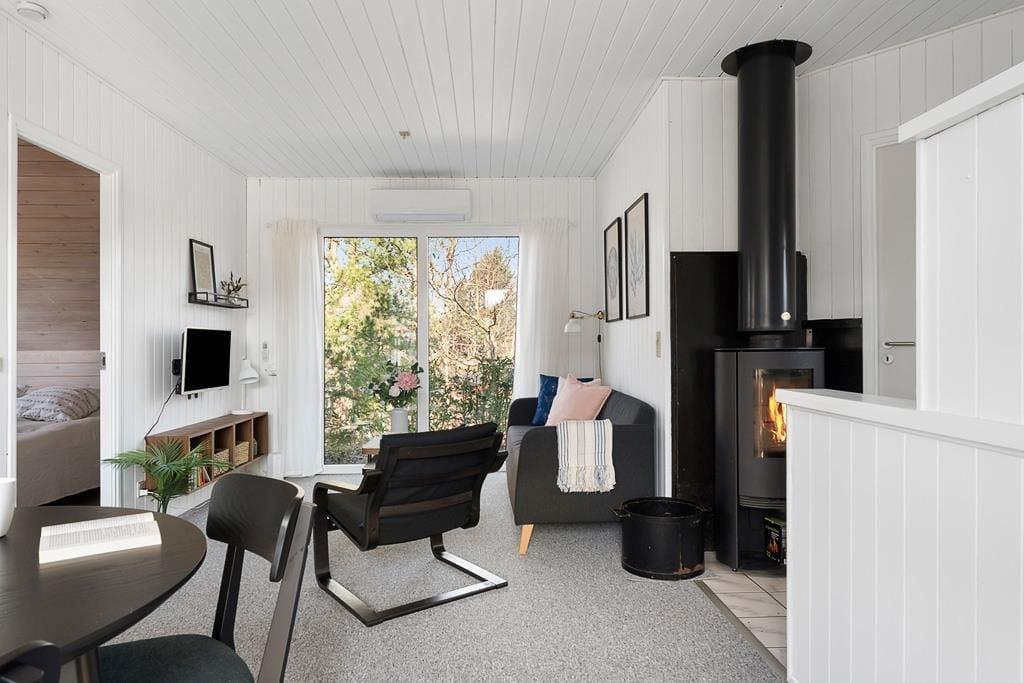 Hyggeligt sommerhus med sauna, beliggende i det attraktive feriehusområde Hvidbjerg, kun 300 meter fra badestrand. Huset indeholder en stue med brændeovn, spiseplads og udgang til terrasse. Derudover er der et veludstyret køkken med bla. airfryer, 2 soveværelser samt et badeværelse med sauna. Til huset er en lille have og god terrasse. Et dejligt hus med en god beliggenhed, tæt ved stranden. Der er desuden kun 9 km til Fredericia med butikker, havnemiljø, restauranter og museer.