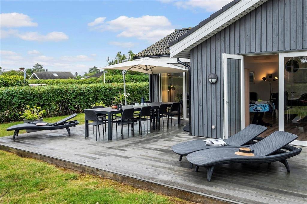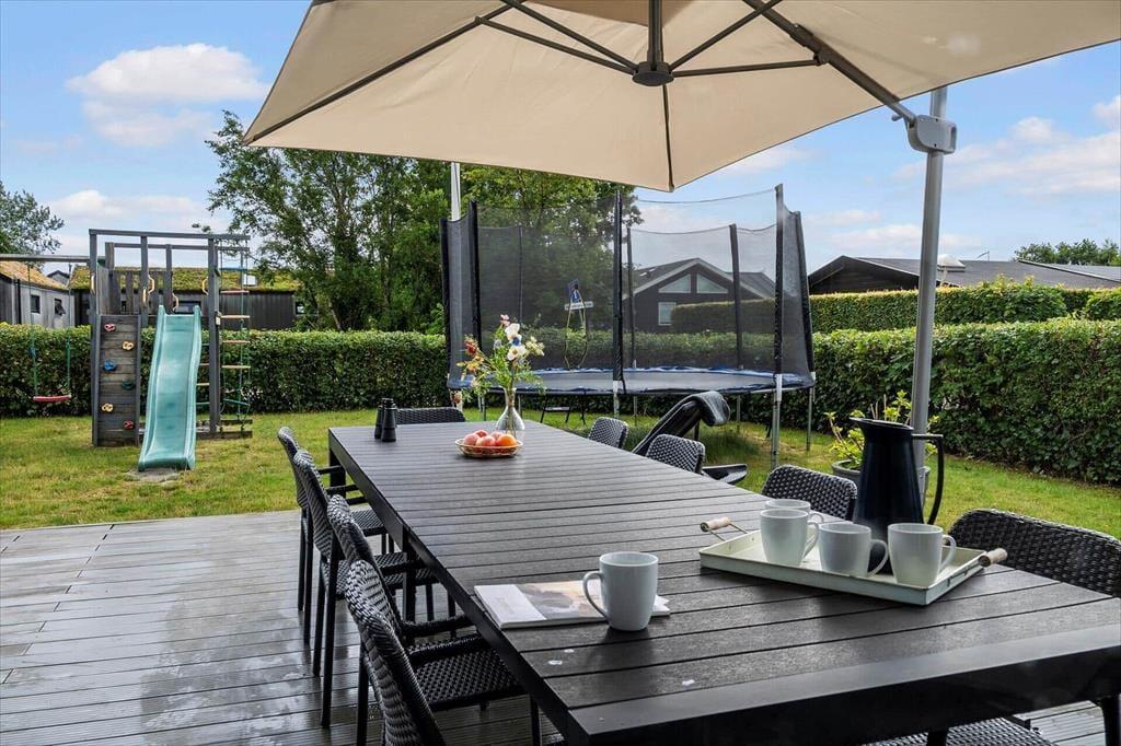 Sommerhuset byder også på fantastiske udendørsfaciliteter. Den store terrasse er det perfekte sted at nyde solrige dage med en god bog eller en kop kaffe, mens børnene leger i haven. Her er der masser af plads til udendørs spil og aktiviteter, på rutchebanen og trampolinen. Efter en dag fyldt med sjov og leg, kan I samles omkring grillen og tilberede en lækker middag under åben himmel. Med den korte afstand til Hvidbjerg Strand er det oplagt at tage en tur til stranden, hvor I kan mærke sandet mellem tæerne og nyde en dukkert i det klare vand.