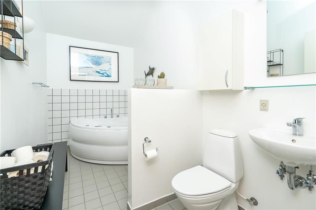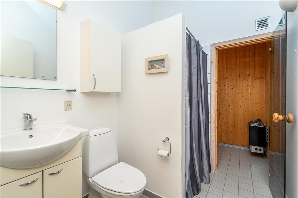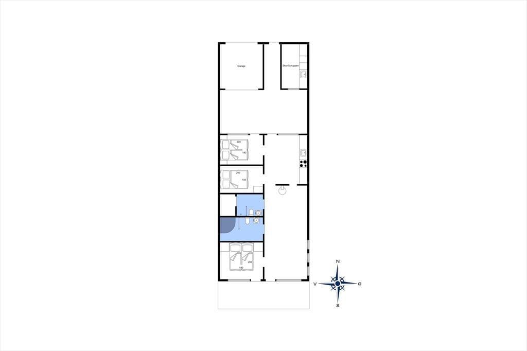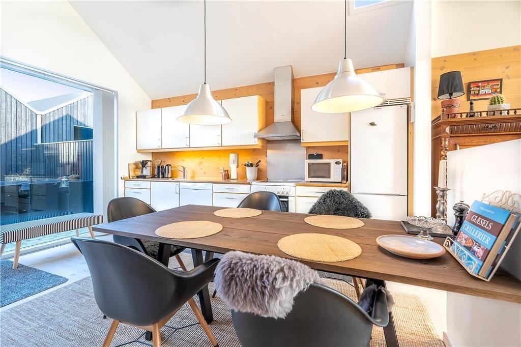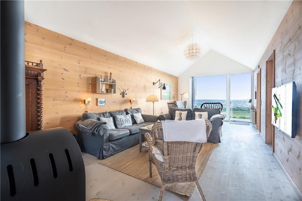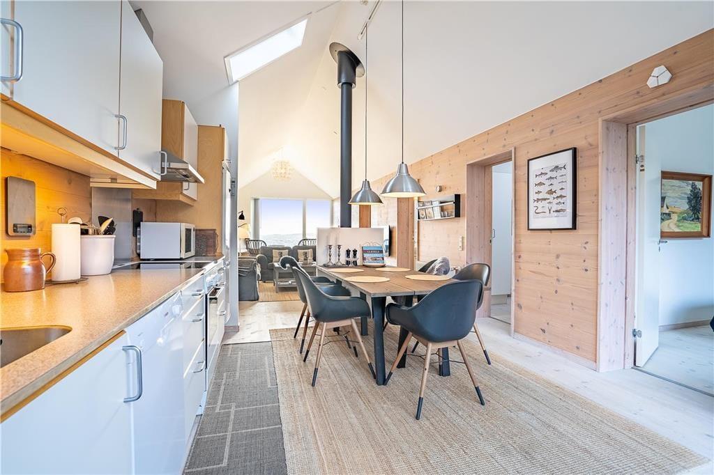 Panoramaudsigten er en lækker feature ved sommerhuset, men det er bestemt ikke eneste grund til at holde ferie her. Huset er nemlig udstyret med både spabad og sauna på de to badeværelser, og der er brændeovn, fladskærms-tv og bløde siddemøbler i stuen – med andre ord får I rig mulighed for at slappe af i varme og komfortable omgivelser. Stuen ligger i åben forbindelse med køkkenet, der har gode arbejdsforhold og en hyggelig spiseplads. Soveværelser er der tre af, hvoraf det største har en imponerende fjordudsigt ligesom stuen. Hvis I har været ude at fiske og kommer hjem med en større fangst, er det smart, at husets grovkøkken er indrettet som bryggers med fryser og håndvask, der kan bruges som fiskerenseplads.