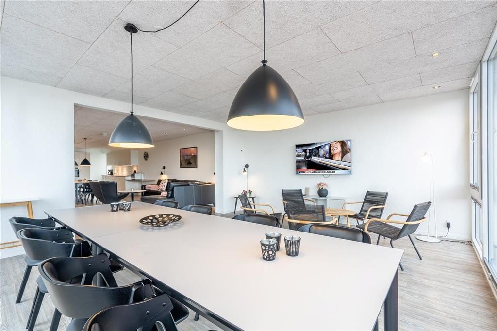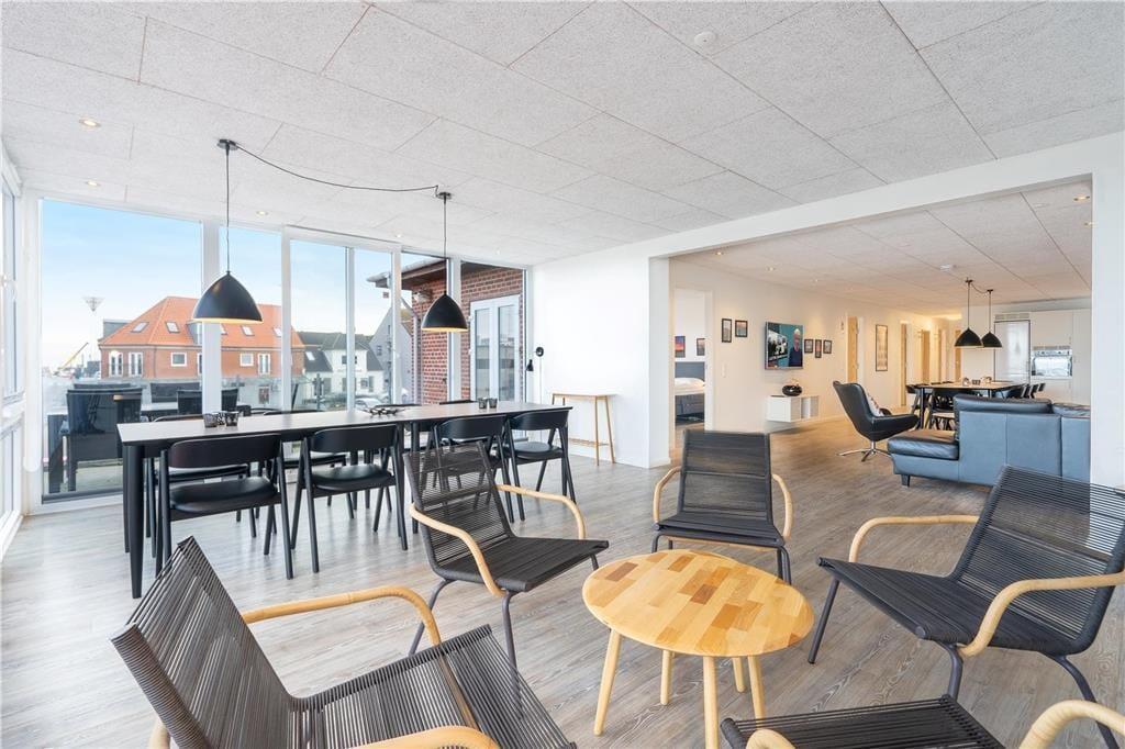 Denne flotte ferielejlighed på 174 m2 er ideel til den store familie eller jer, der gerne vil være flere familier eller generationer om at dele feriedagene. Lejligheden ligger midt i Hvide Sandes pulserende centrum, der byder på spændende butikker og et væld af gode spisesteder. Havnen har I udsigt til fra lejligheden, og med 750 meter til Vesterhavet kan I nemt og bekvemt bruge fridagene ved stranden.