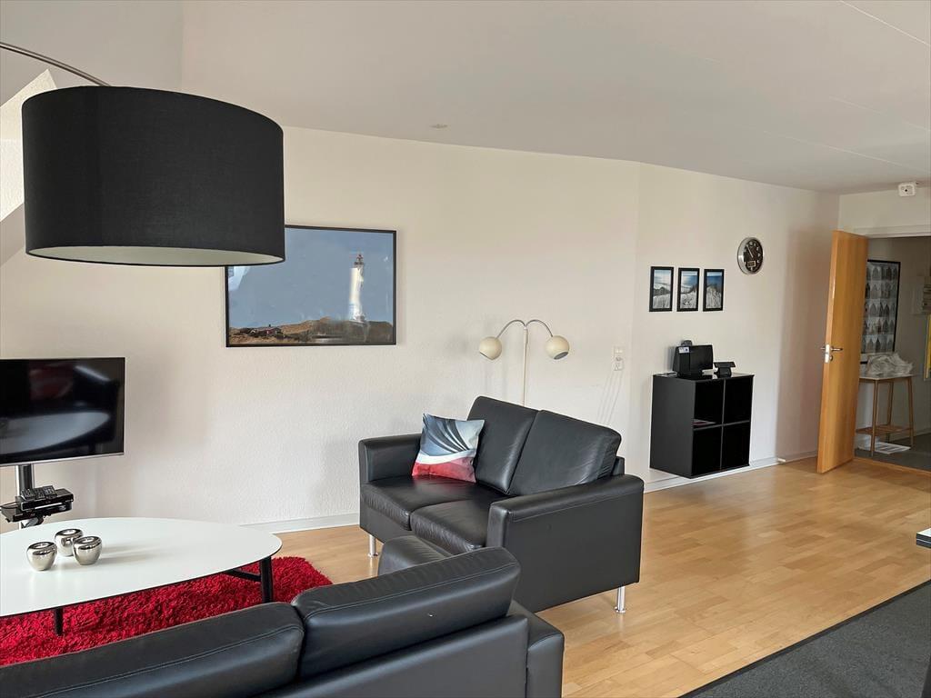 Denne velindrettede ferielejlighed byder på et stort opholdsområde med en skøn udsigt til Hvide Sandes hyggelige havnemiljø. Lejligheden ligger centralt i byen, og der er få skridt til havnen og Ringkøbing Fjord, samtidig med at I kun har 850 meter til badestranden og Vesterhavet.