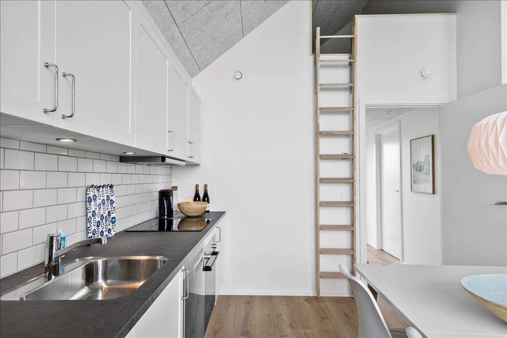 Der er meget at se og opleve i Hvide Sande og omegn – men det kan nu anbefales at sætte en del tid af til afslapning og hygge inden døre i lejligheden, der ligger på første sal. Atmosfæren er lys og luftig takket være de store vinduespartier og loftet, der går helt til kip. Det moderne møblement passer godt til arkitekturen, og med et lækkert åbent køkken, et flot badeværelse og et dejligt soveværelse er der taget højde for både funktionalitet og komfort. Fra køkkenet har I adgang til en hems, der med et lille vindue og kig til stuen fungerer som en hyggelig soveplads for både børn og voksne.
