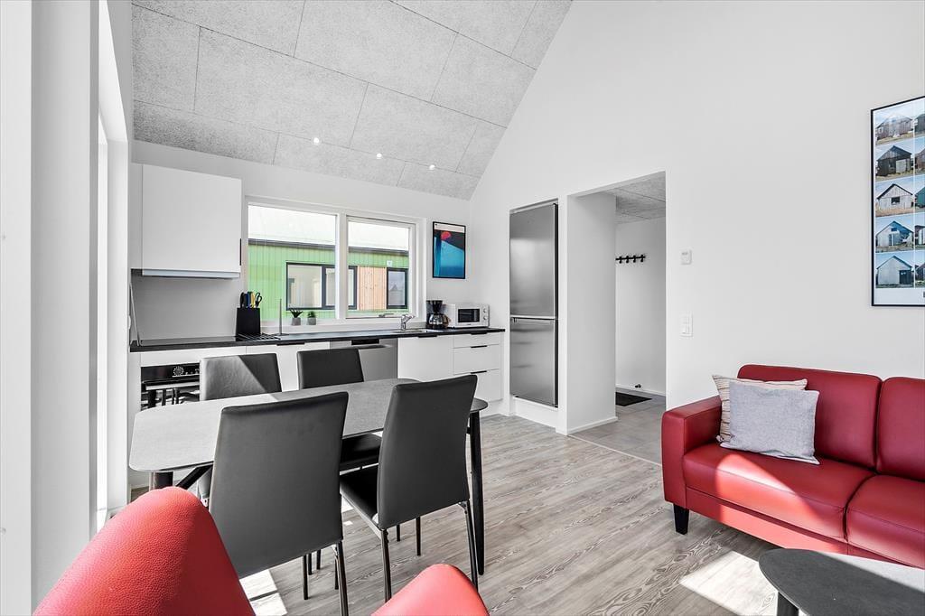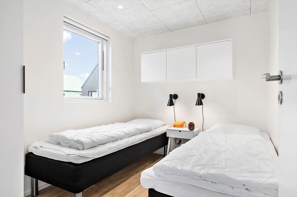 Når I holder ferie i et moderne sommerhus som dette, kan I forvente, at alt bare spiller. Rummene er lyse, luftige og smagfuldt indrettede, og der er gulvvarme overalt, hvilket også bidrager til den gode rumfornemmelse. Planløsningen passer godt til fire personer, for der er et badeværelse med brus og to gode soveværelser at gøre godt med. Det ene soveværelse er indrettet med dobbeltseng og det andet med to enkeltsenge, og begge har skabsplads, hvis I vil pakke feriegarderoben ud. Endelig ligger køkken og stue samlet som et skønt opholdsrum, hvor I rigtigt kan hygge jer sammen med madlavning, lækre måltider, brætspil eller en filmaften i sofaafdelingen.