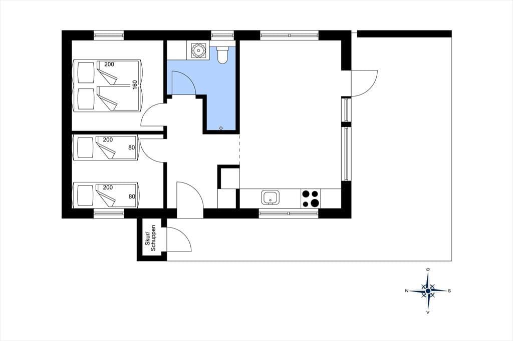 Med en gennemtænkt planløsning, der udnytter hver eneste af husets 50 m2, kan I nemt holde ferie fire personer sammen. Husets ene soveværelse er med dobbeltseng og det andet med to enkeltsenge, og badeværelset er praktisk indrettet med bruseniche samt vaskemaskine og tørretumbler. Alle rum fremstår lyse, luftige og lækre – ikke mindst stuen, som har integreret køkkenafdeling, loft til kip og stilfuldt interiør. Fra stuen har I direkte adgang til terrassen, hvilket især er rart om sommeren. Og holder I ferie på andre tider af året, kan I nyde, at der er gulvvarme overalt i huset.