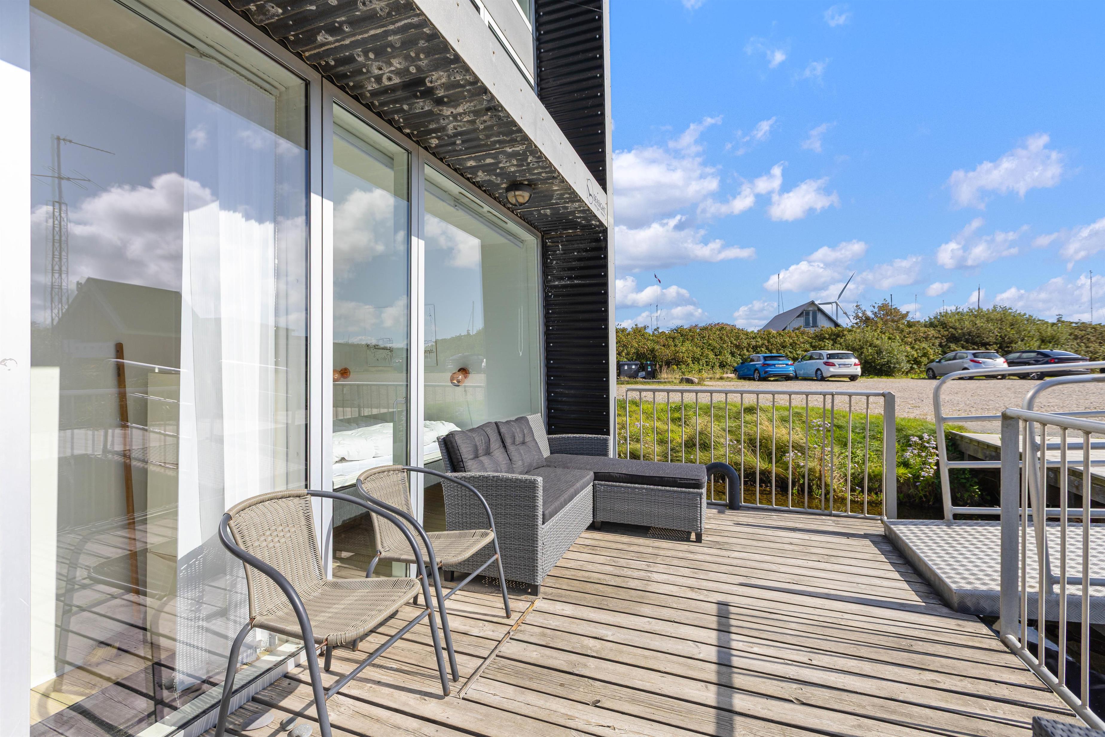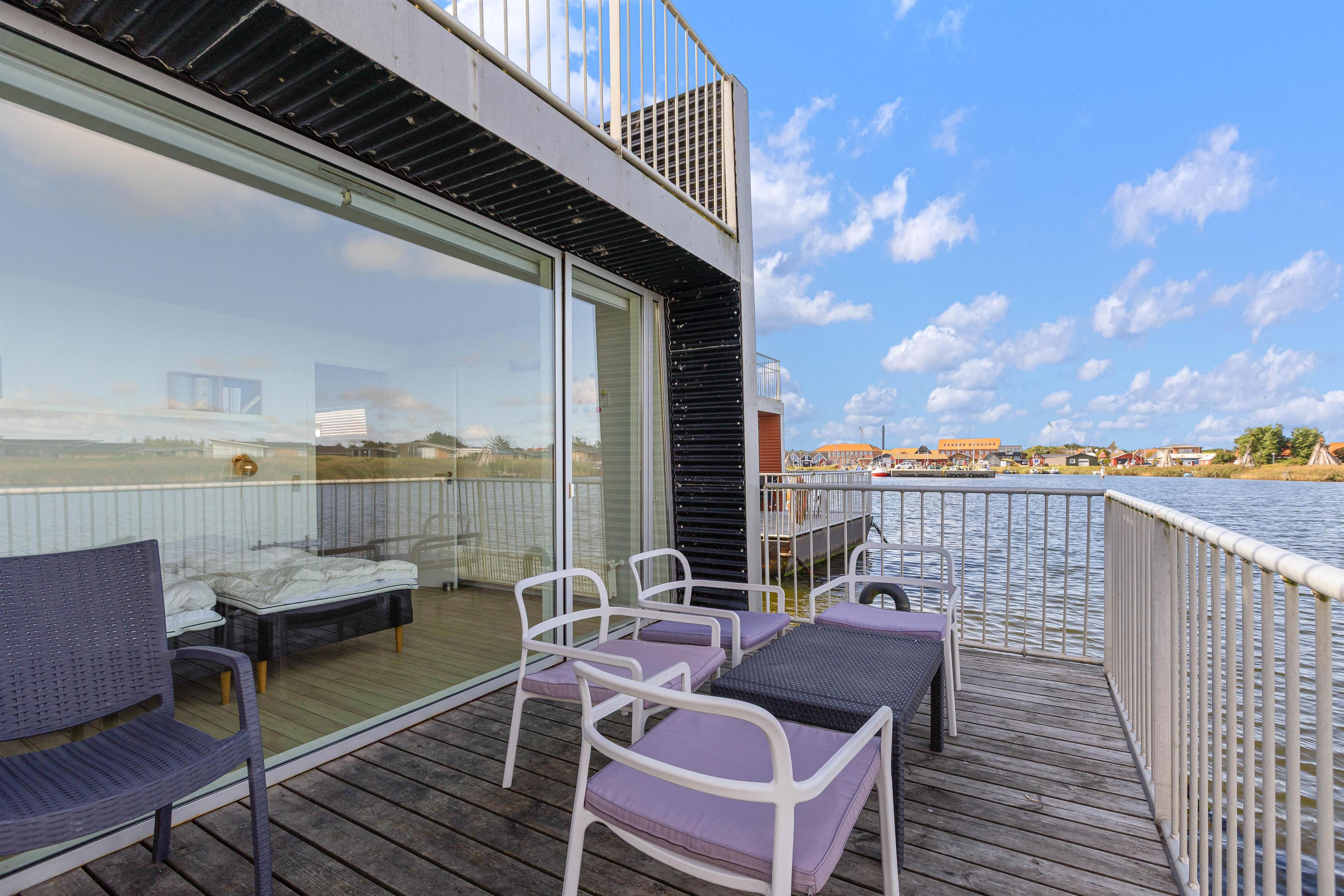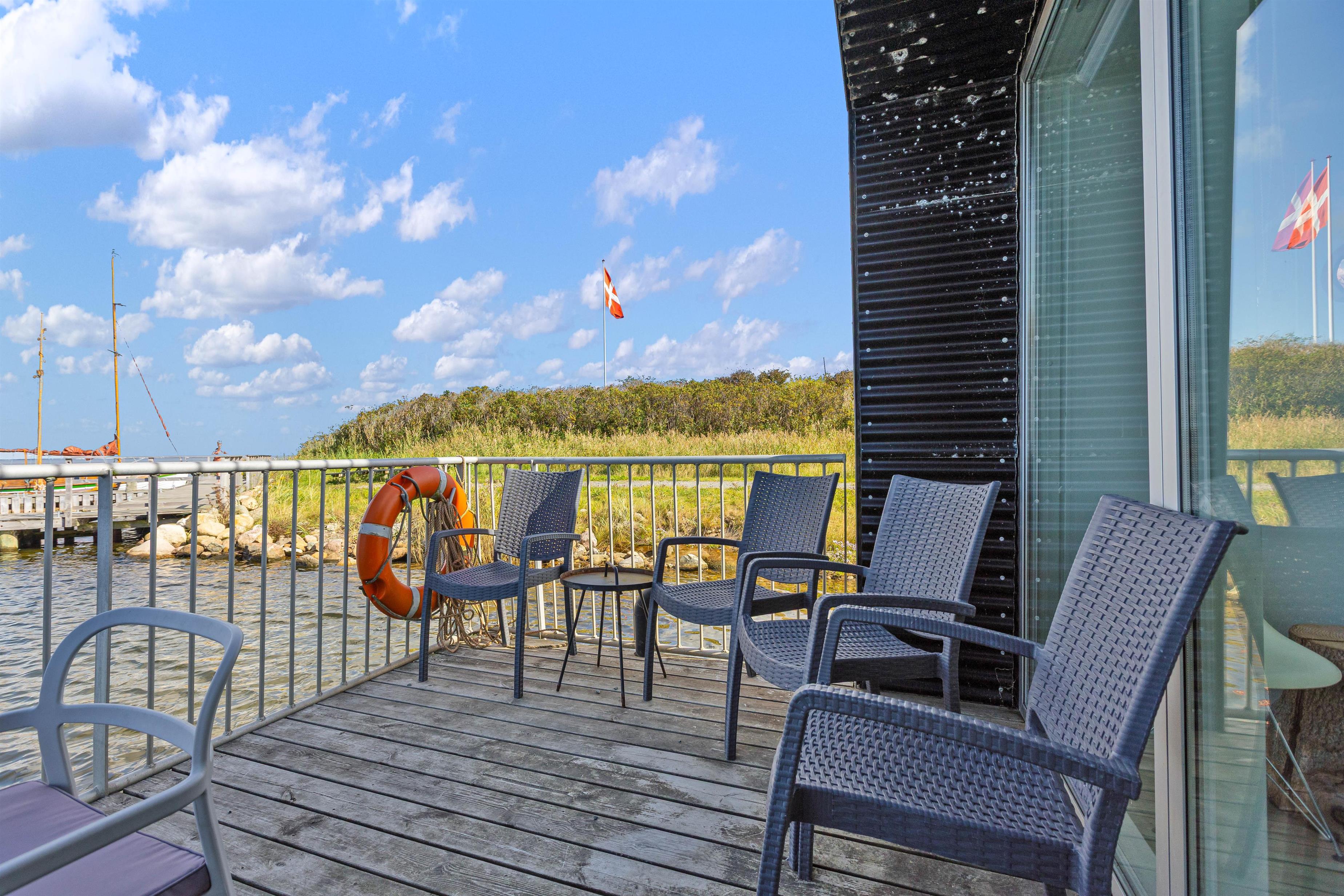 Derudover har du også to terrasser, så du kan sidde ude og nyde den friske luft og måske et par grillaftener. Herfra har du også et godt overblik og indsejlingen og livet på den hyggelige fjordhavn, hvor husbåden er lagt til.