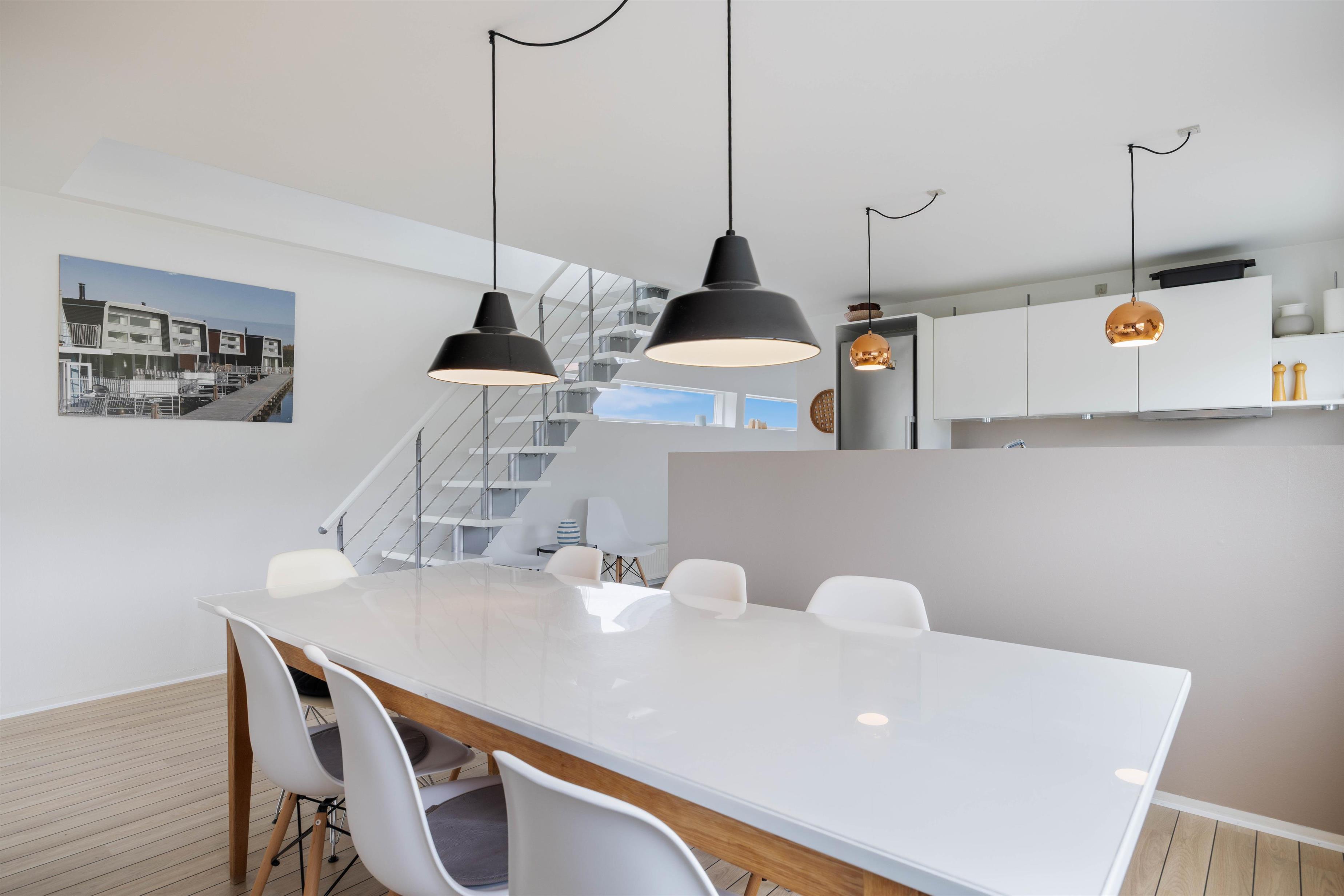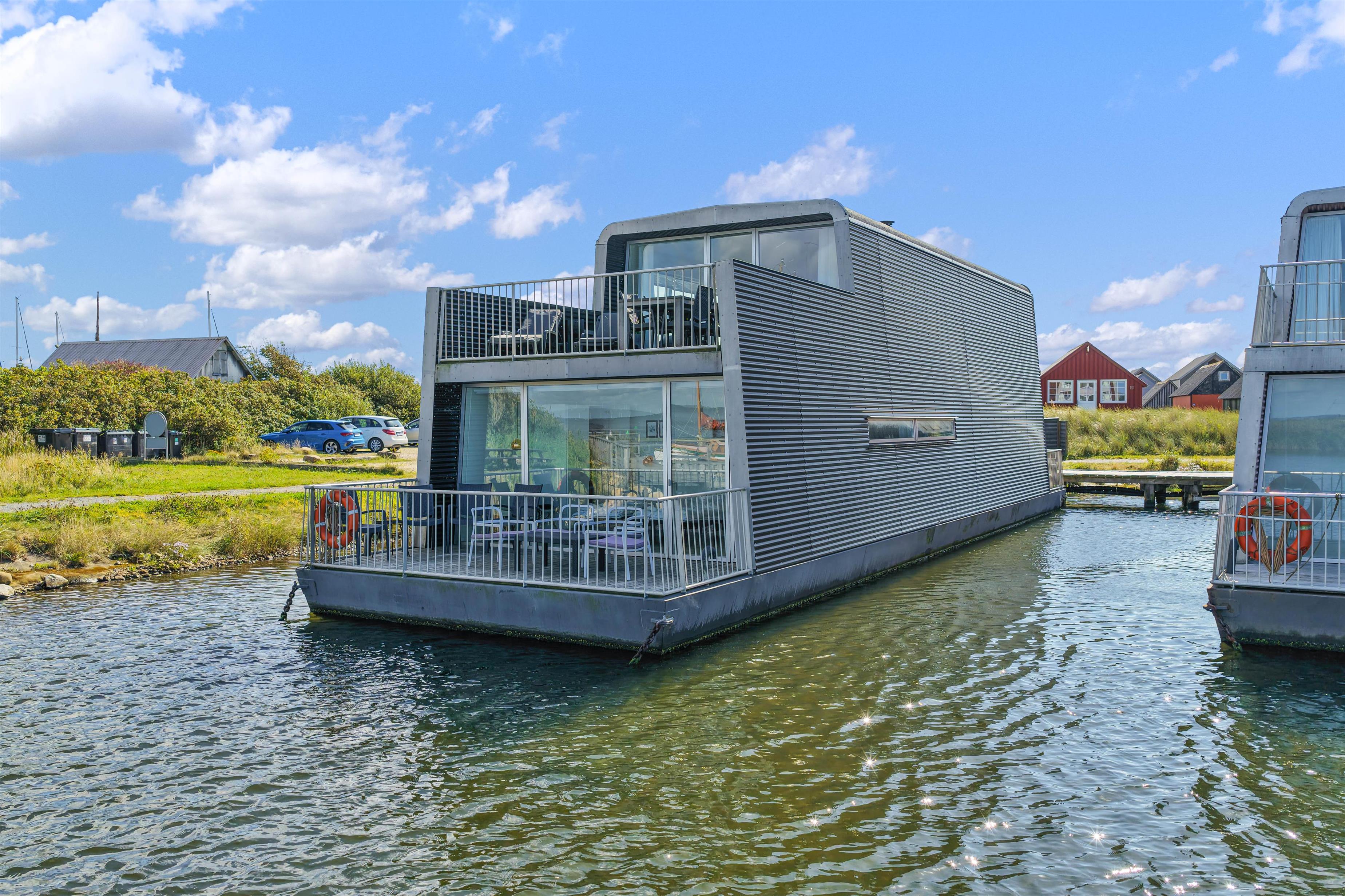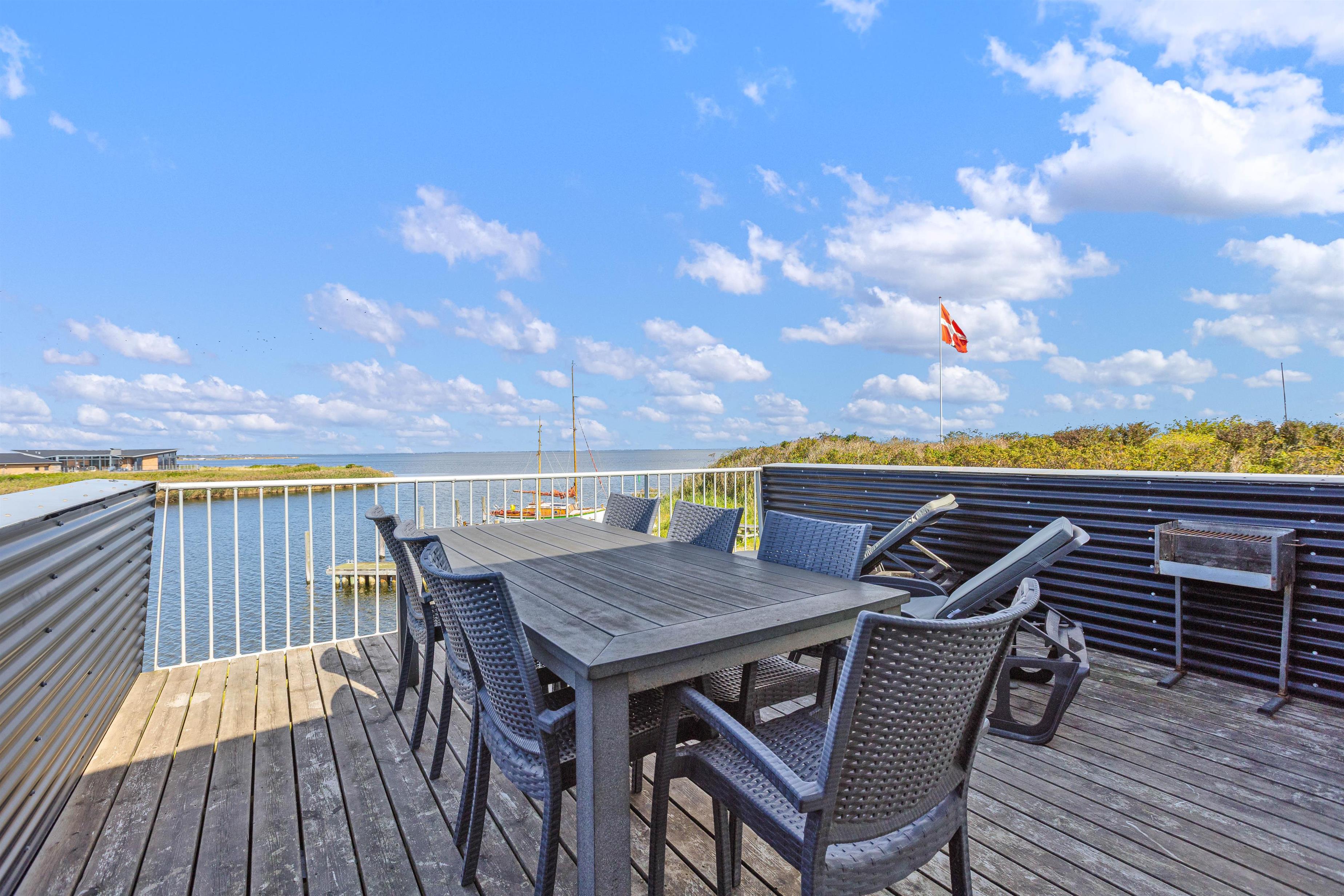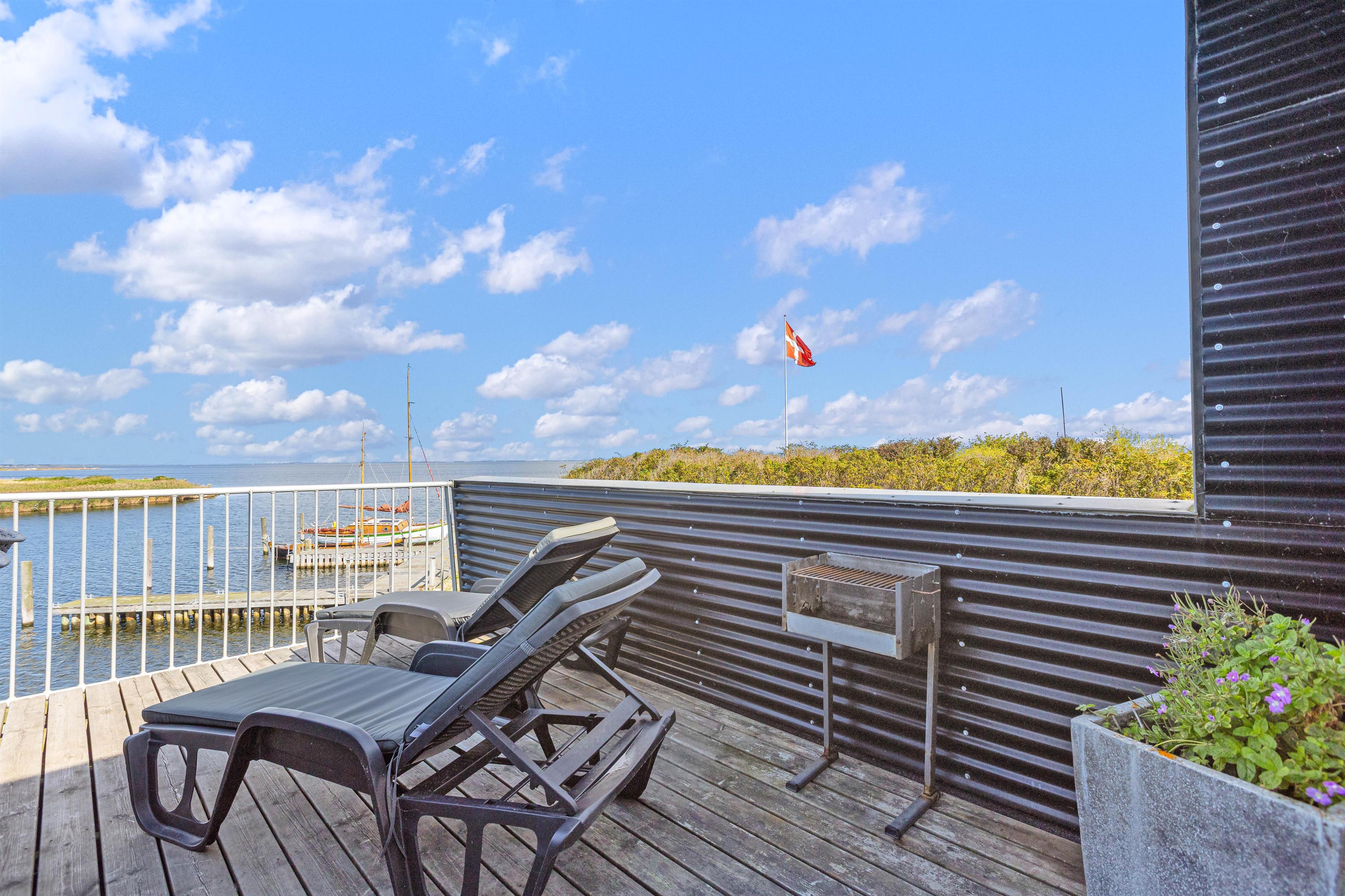 Derudover har du også to terrasser, så du kan sidde ude og nyde den friske luft og måske et par grillaftener. Herfra har du også et godt overblik og indsejlingen og livet på den hyggelige fjordhavn, hvor husbåden er lagt til.