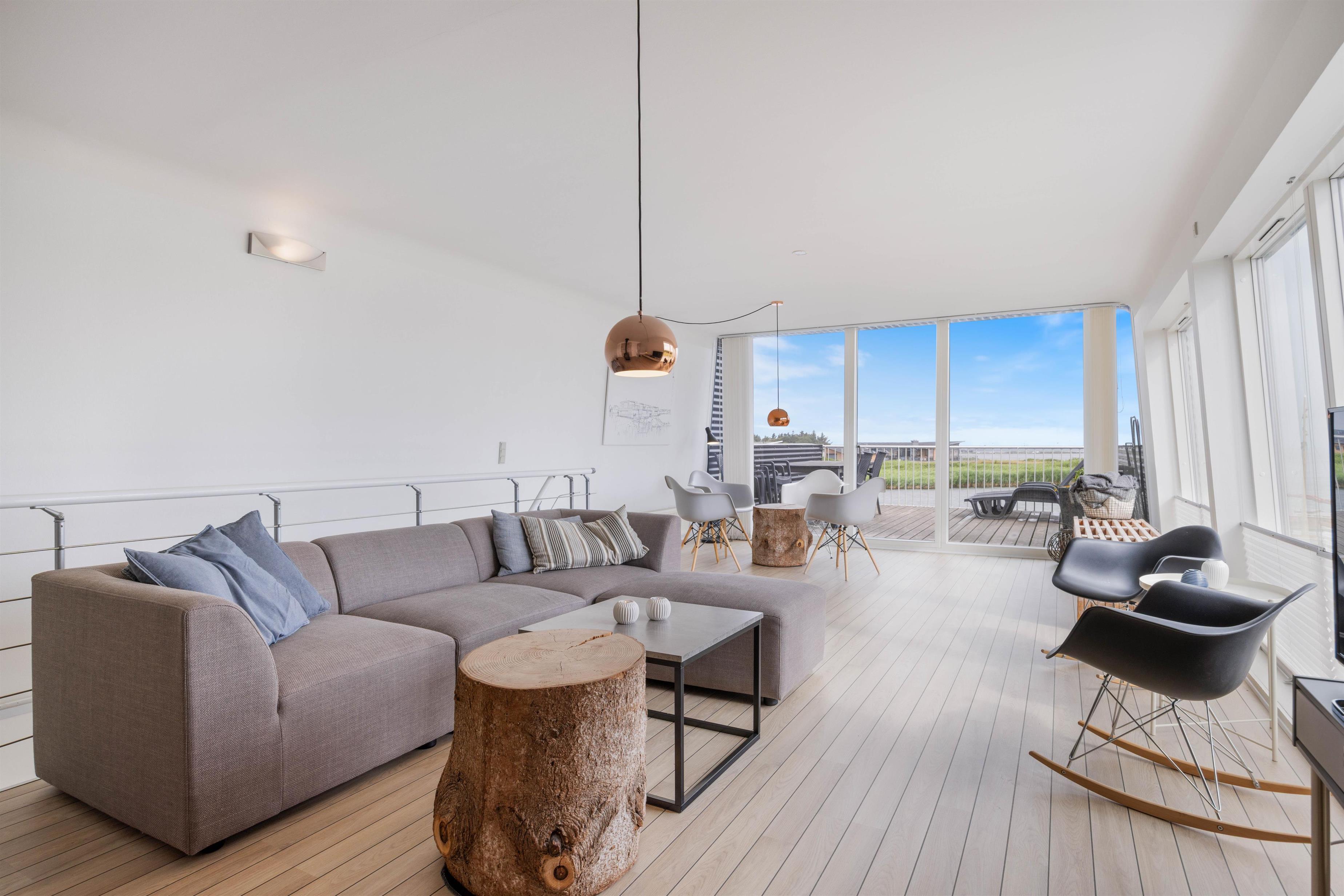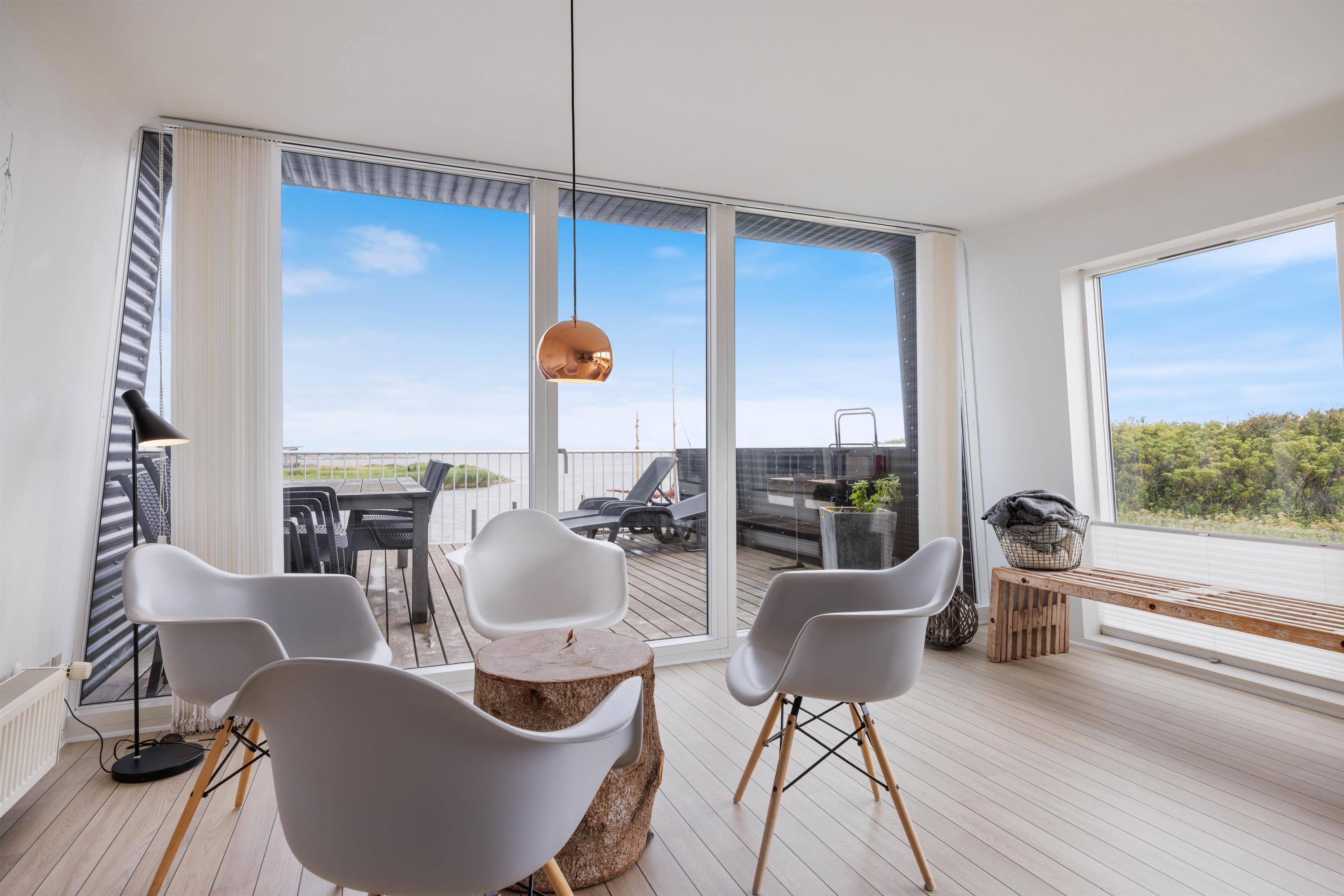 Nyd den smukke udsigt over Ringkøbing Fjord fra både stuen og terrasserne