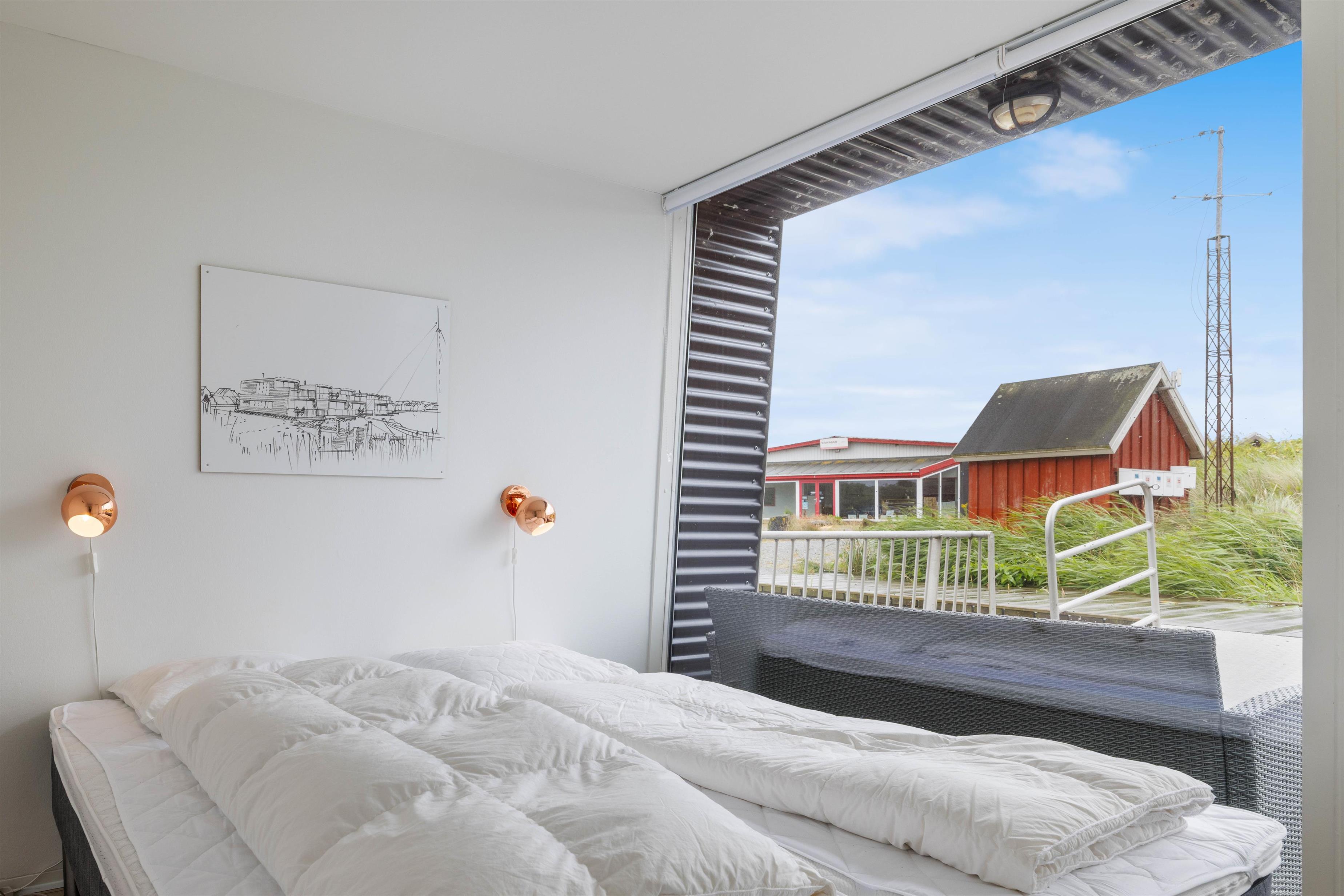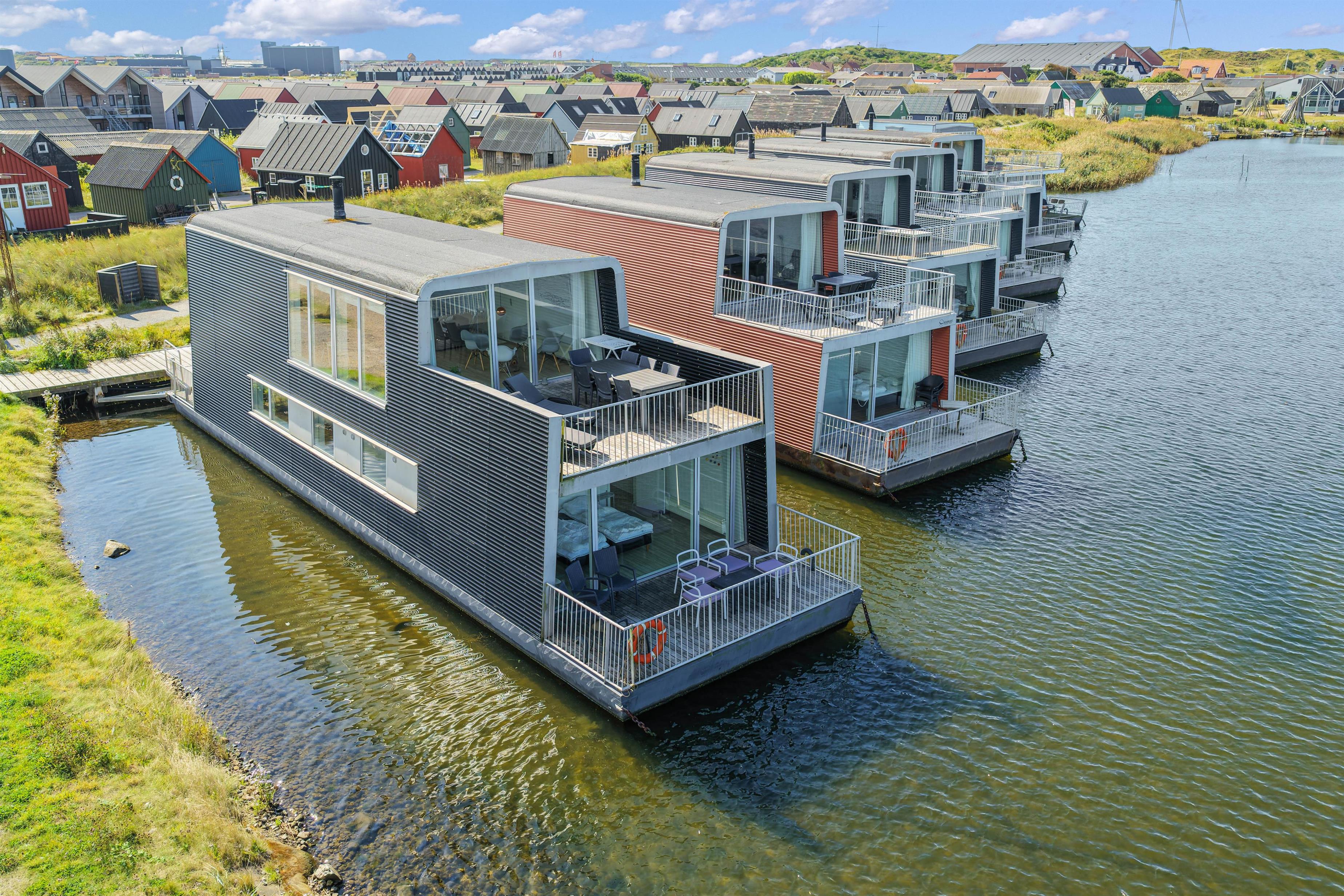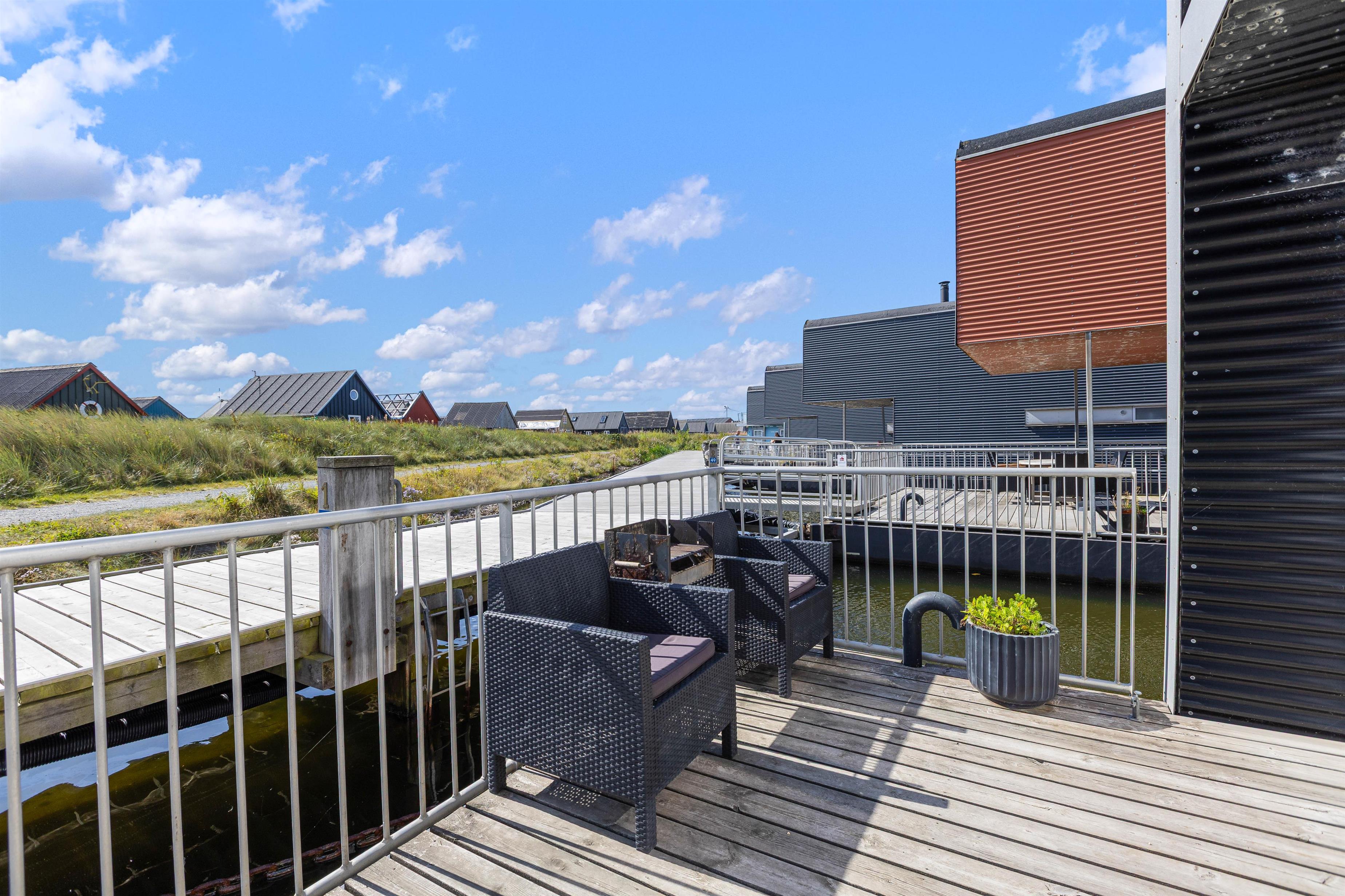 Husbåden ligger i en lille hyggelig havn, så du har den det autentiske fiskermiljø og den smukke natur ved fjorden helt tæt på. Derudover kommer du til at bo i gåafstand til butikkerne, spisestederne og ikke mindst stranden i Hvide Sande.