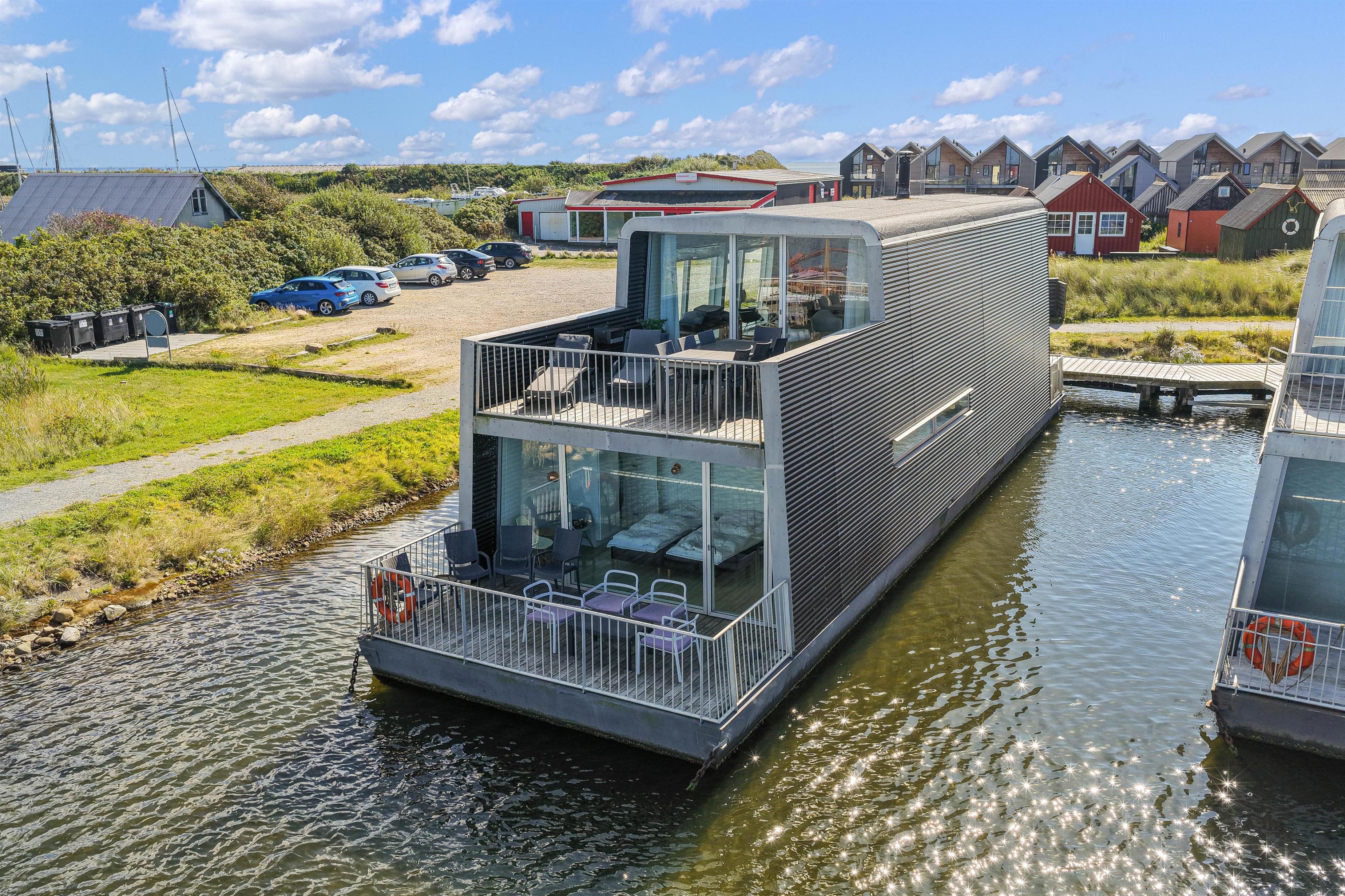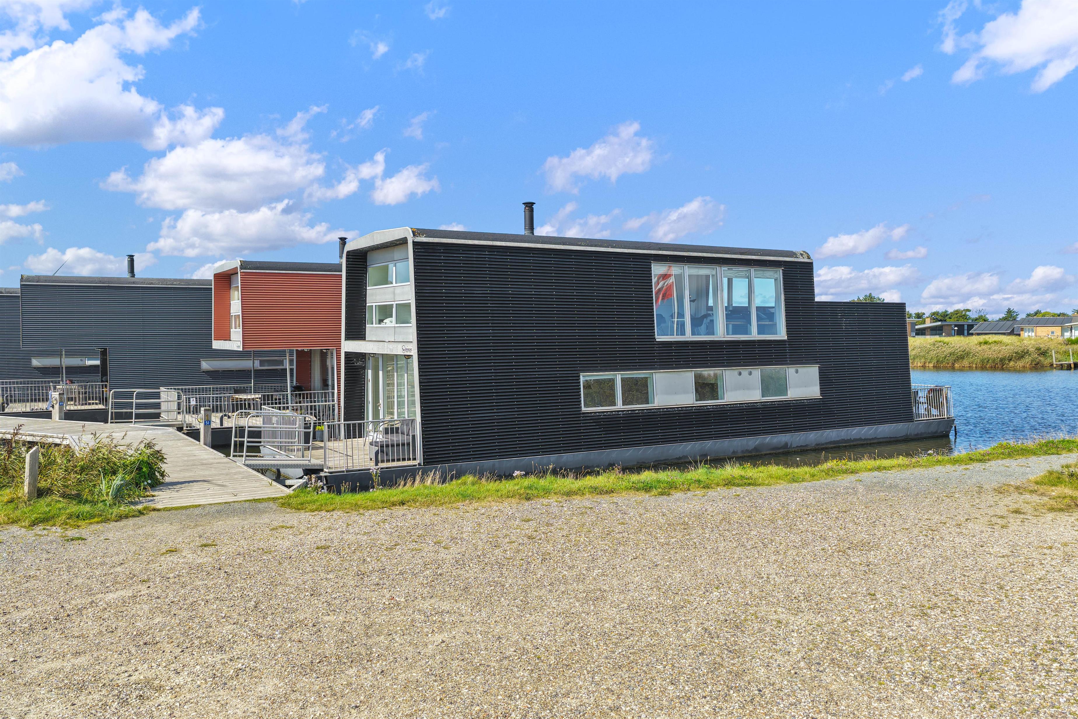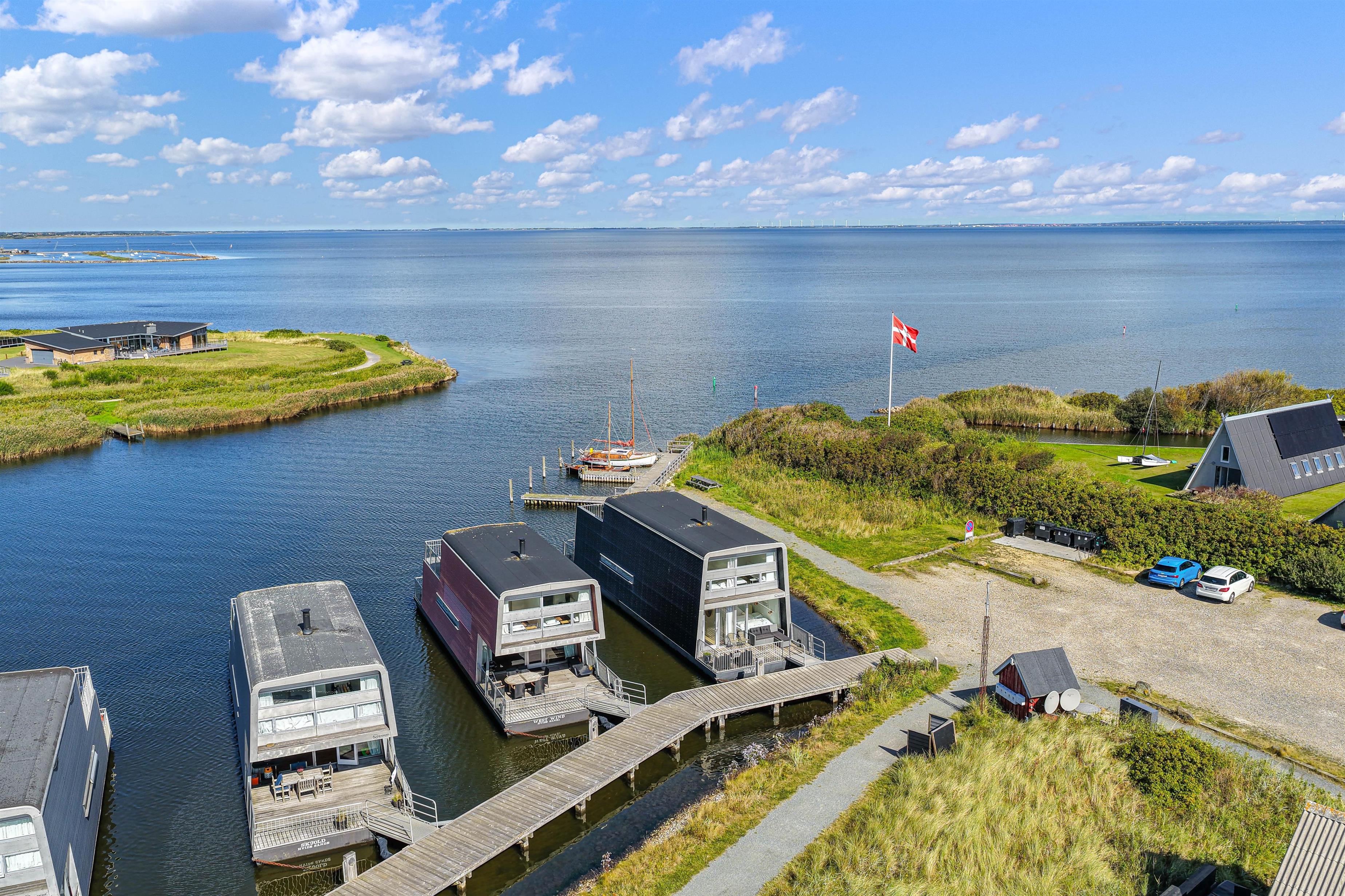 Fra husbåden findes der en sti nordpå, der fører dig om til vandskibanen, hvor du kan prøve krafter med vandski eller wakeboard – eller bare sidde og kigge på og nyde den gode stemning. Og bevæger du dig sydpå, hvad enten det er i bil, til fods eller på cykel, kommer du hurtigt ned på havnen, hvor du kan ose i butikkerne, nyde lidt godt til ganen, eller købe friske fisk – nogle gange sogar direkte fra kutteren.