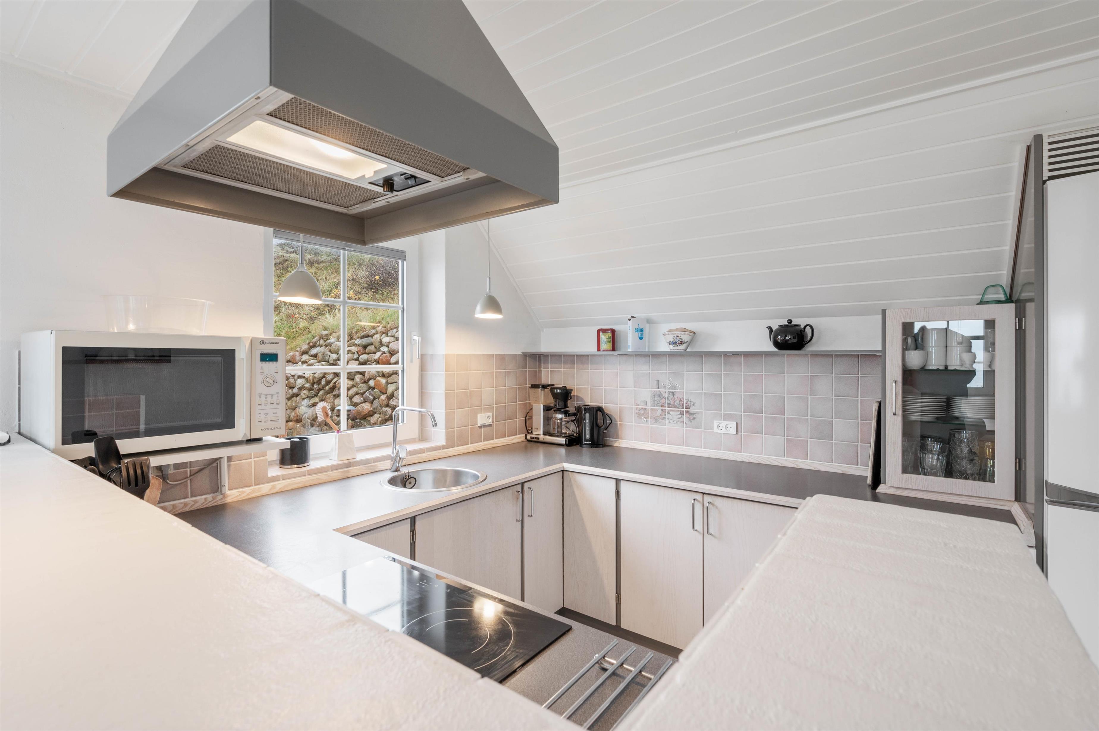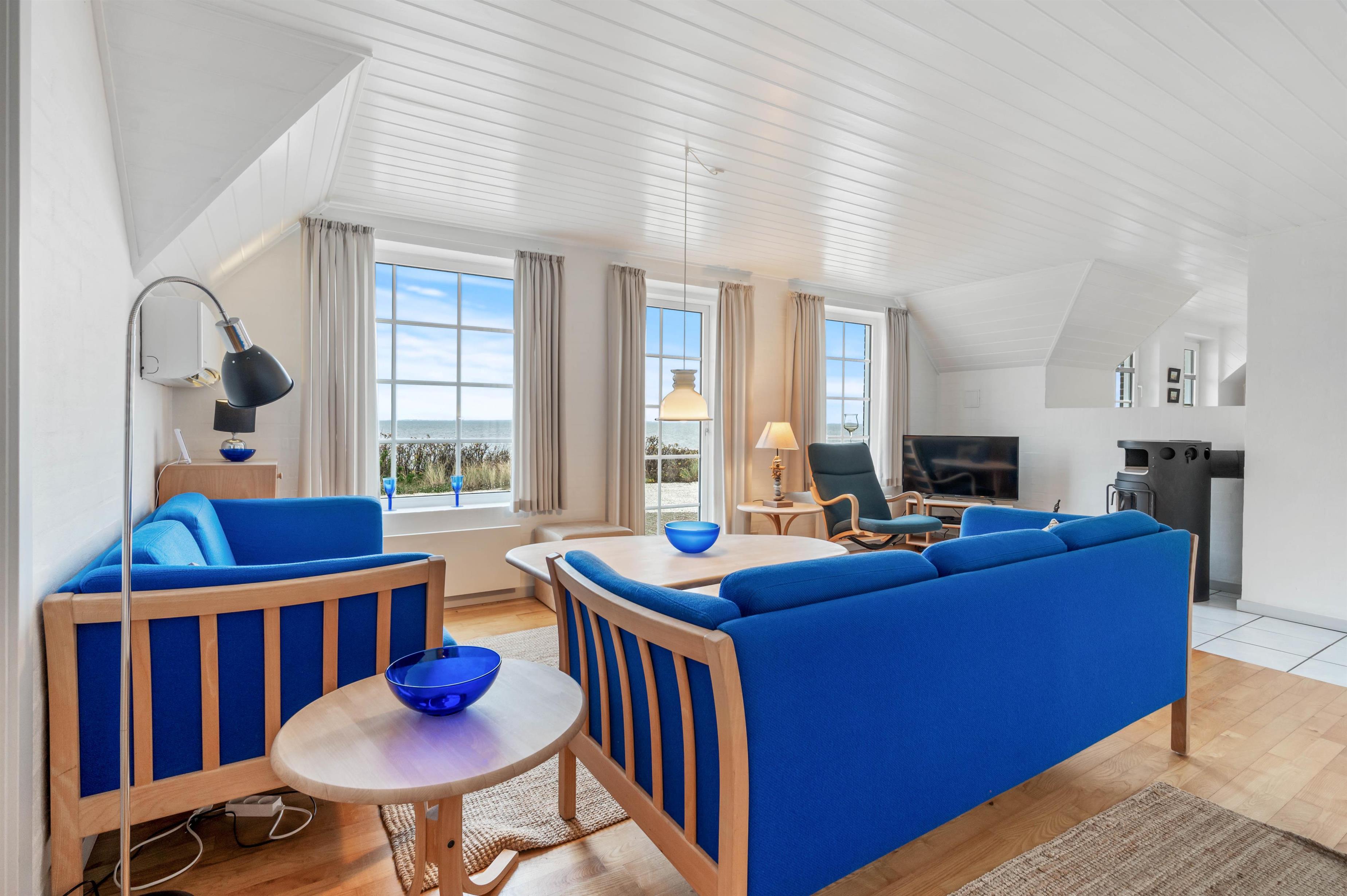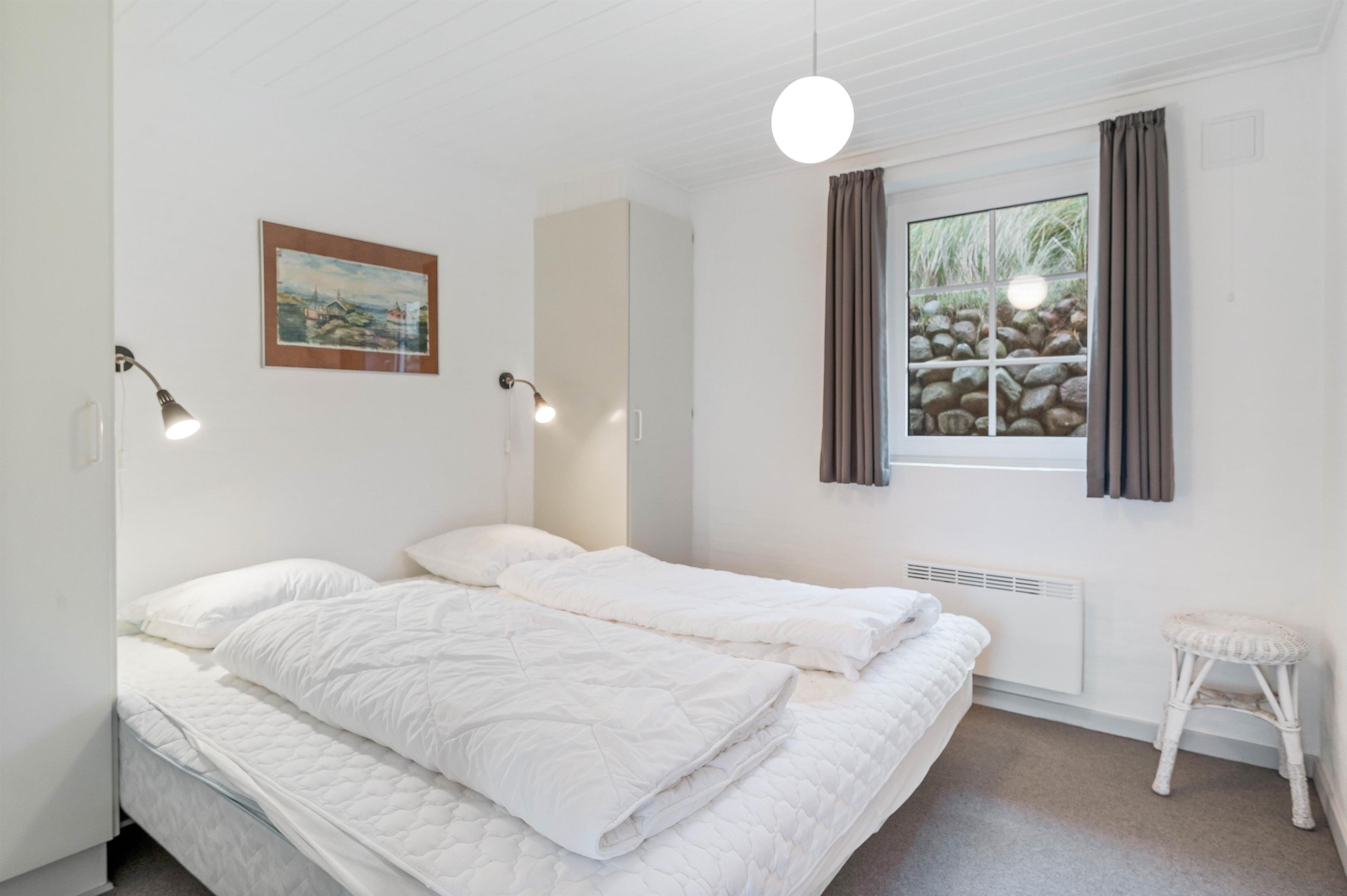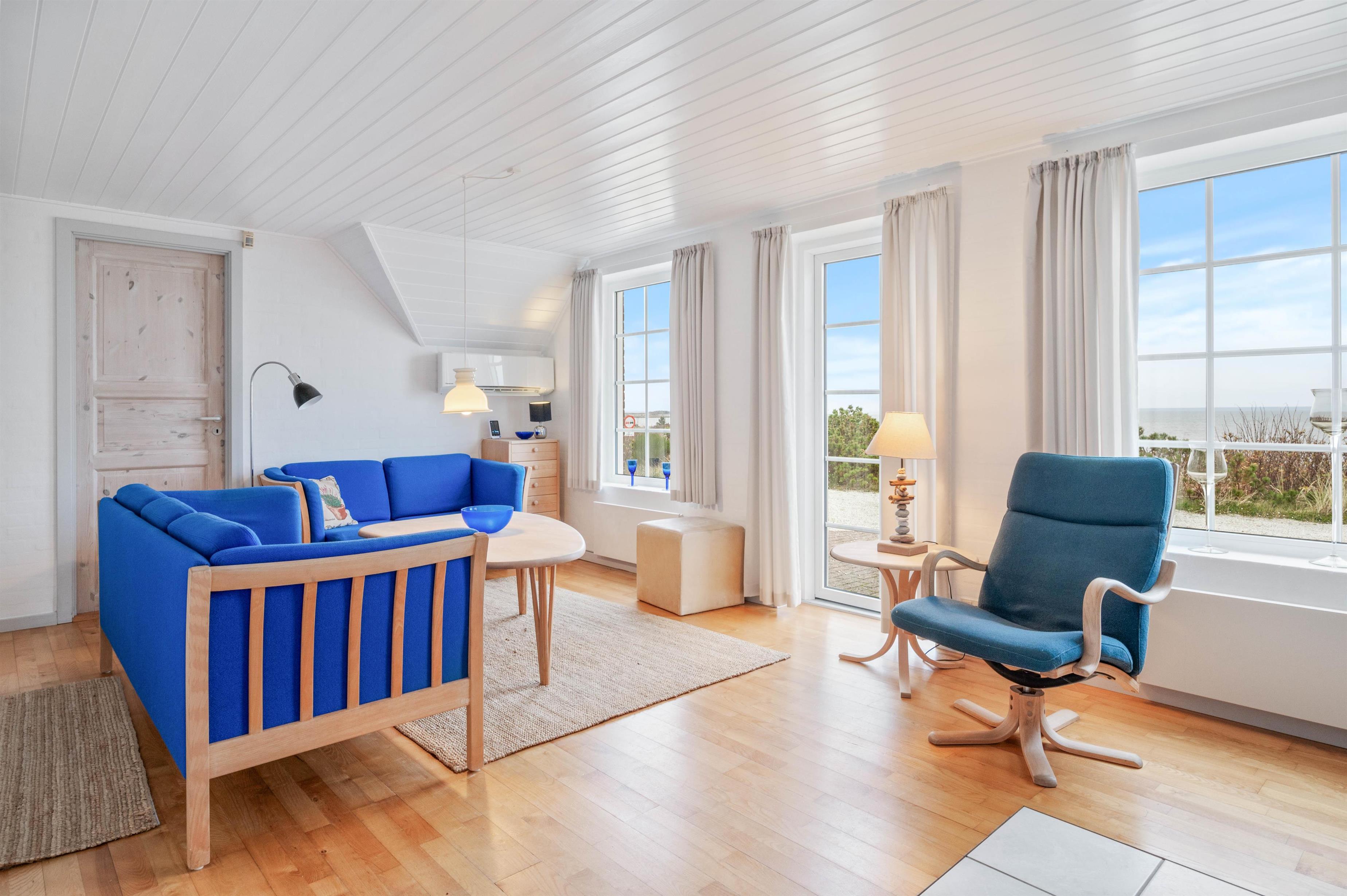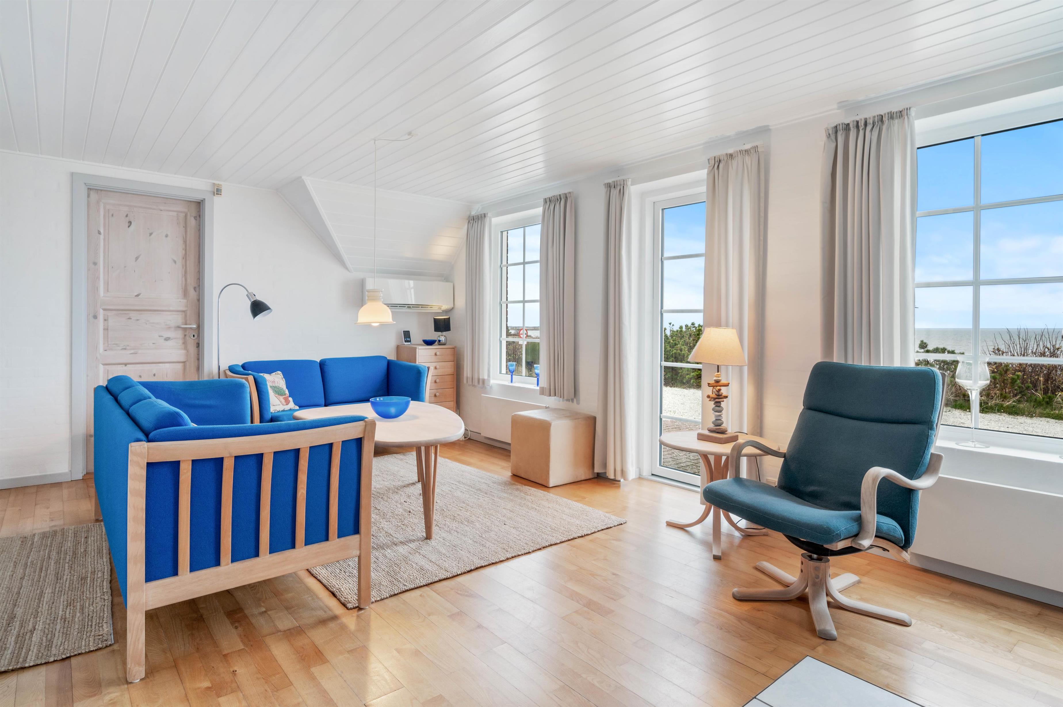 Et flot, lyst og velholdt feriehus i Hvide Sande med en helt unik beliggenhed. Her har man en unik udsigt, bor midt i den prægtige natur mellem Vesterhavet og Ringkøbing Fjord og så har man kun ca. 10 minutters gang til centrum i Hvide Sande. Der er 3 gode værelser, et stort badeværelse med standvandsspa og sauna. Stuen og køkkenet er malet hvidt, hvilket gør huset dejligt lyst.