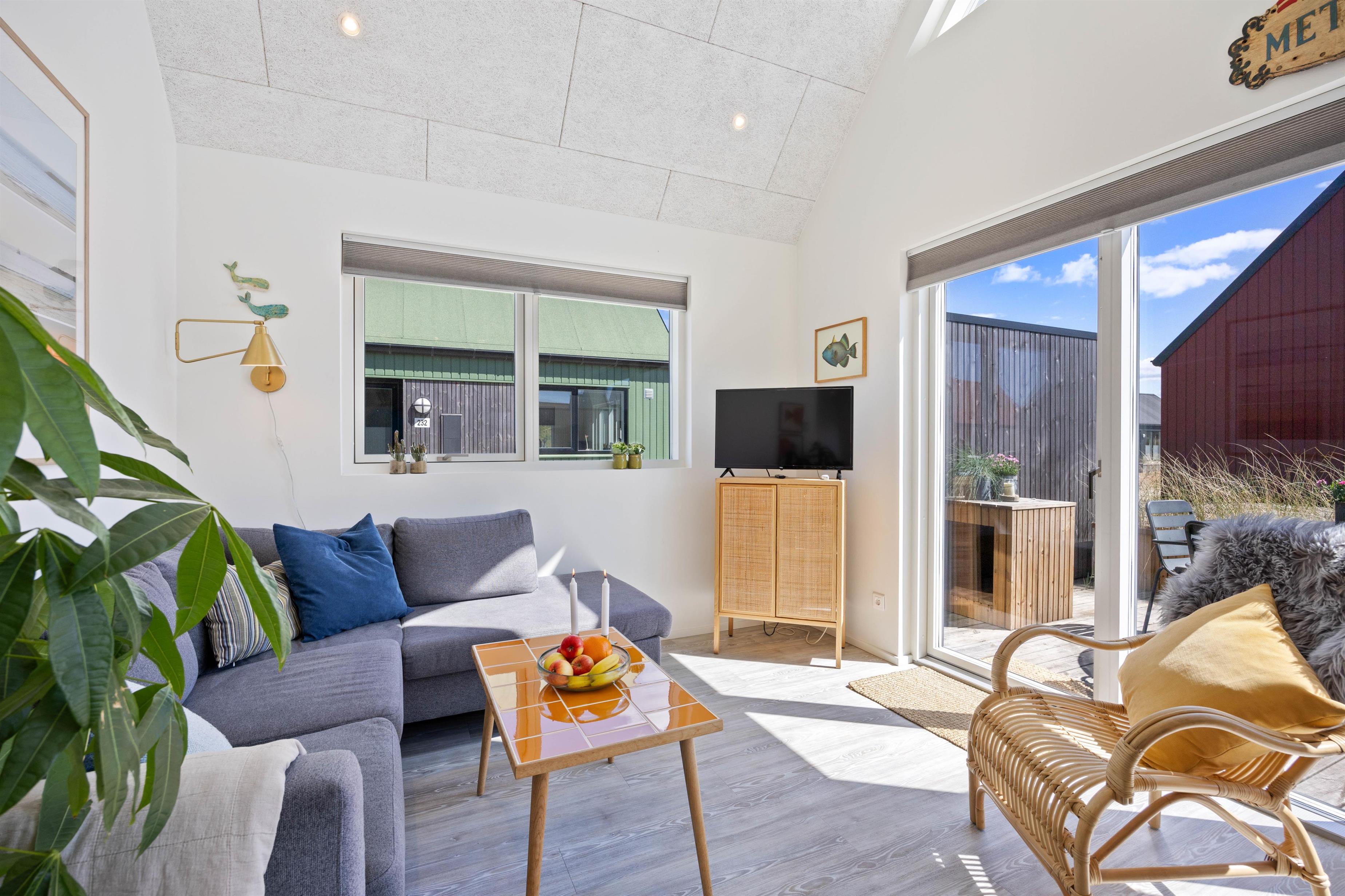 Dette nydelige feriehus er beliggende ved den gamle fjordhavn og tæt på Hvide Sandes lystbådehavn. Den afskærmede terrasse er sydvendt, og her kan I nyde de varme sommerdage og aftener på husets havemøbler og liggestole. På terrassen er det også muligt at nyde en lækker aftensmad lavet på husets gasgrill, imens I kan nyde synet af solen, der går ned i Vest.