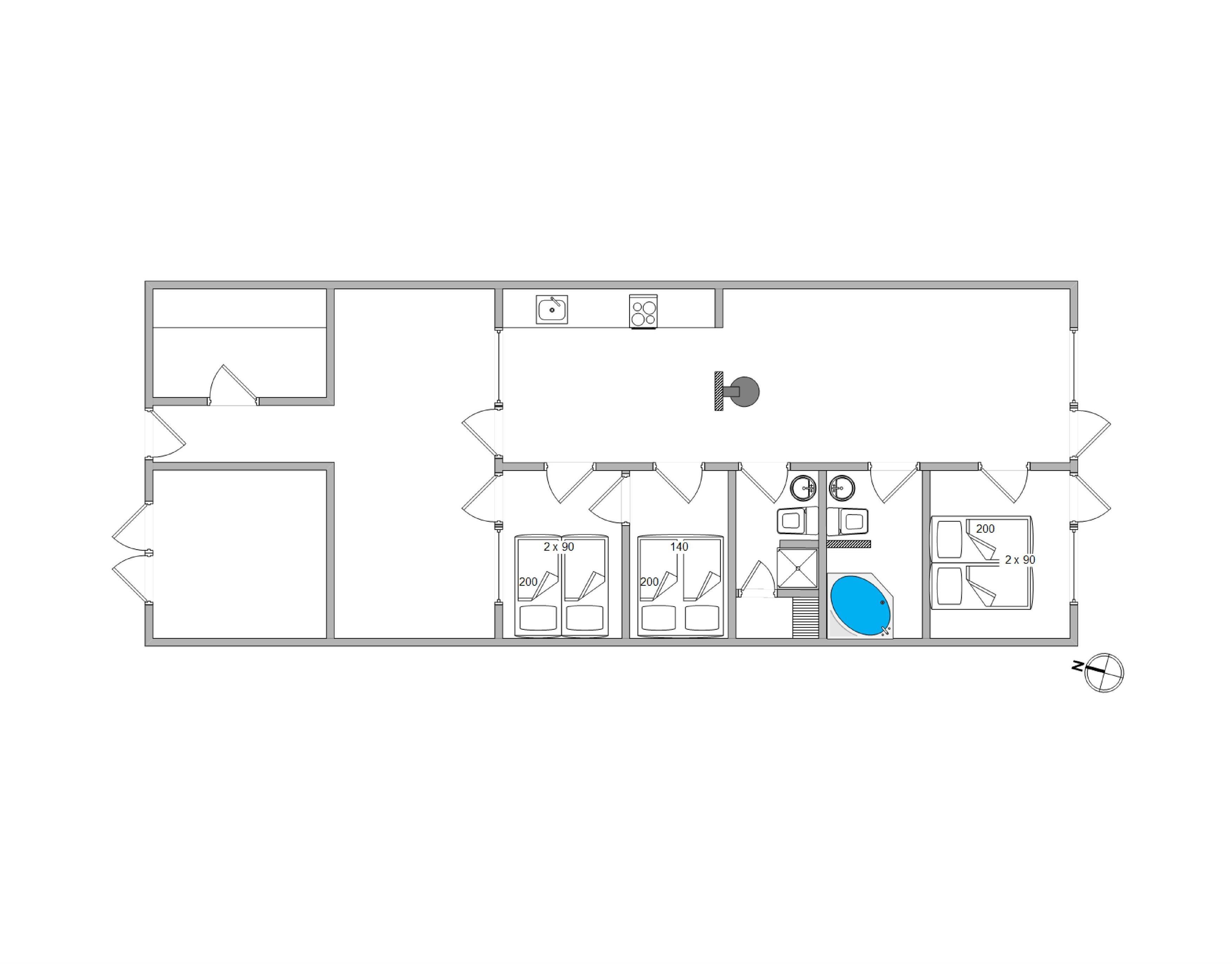 Huset har plads til 6 personer og indeholder 3 store og lyse soverum, hvor man, i de komfortable senge, kan nyde en god nattesøvn efter en lang og oplevelsesrig dag på Vestkysten. Derudover er der 2 store badeværelser med gulvvarme. På det ene badeværelse finder I en sauna, hvor I kan læne jer tilbage og dampe af. På det andet badeværelse er husets spa, hvor I kan nyde et dejligt varmt boblebad.
