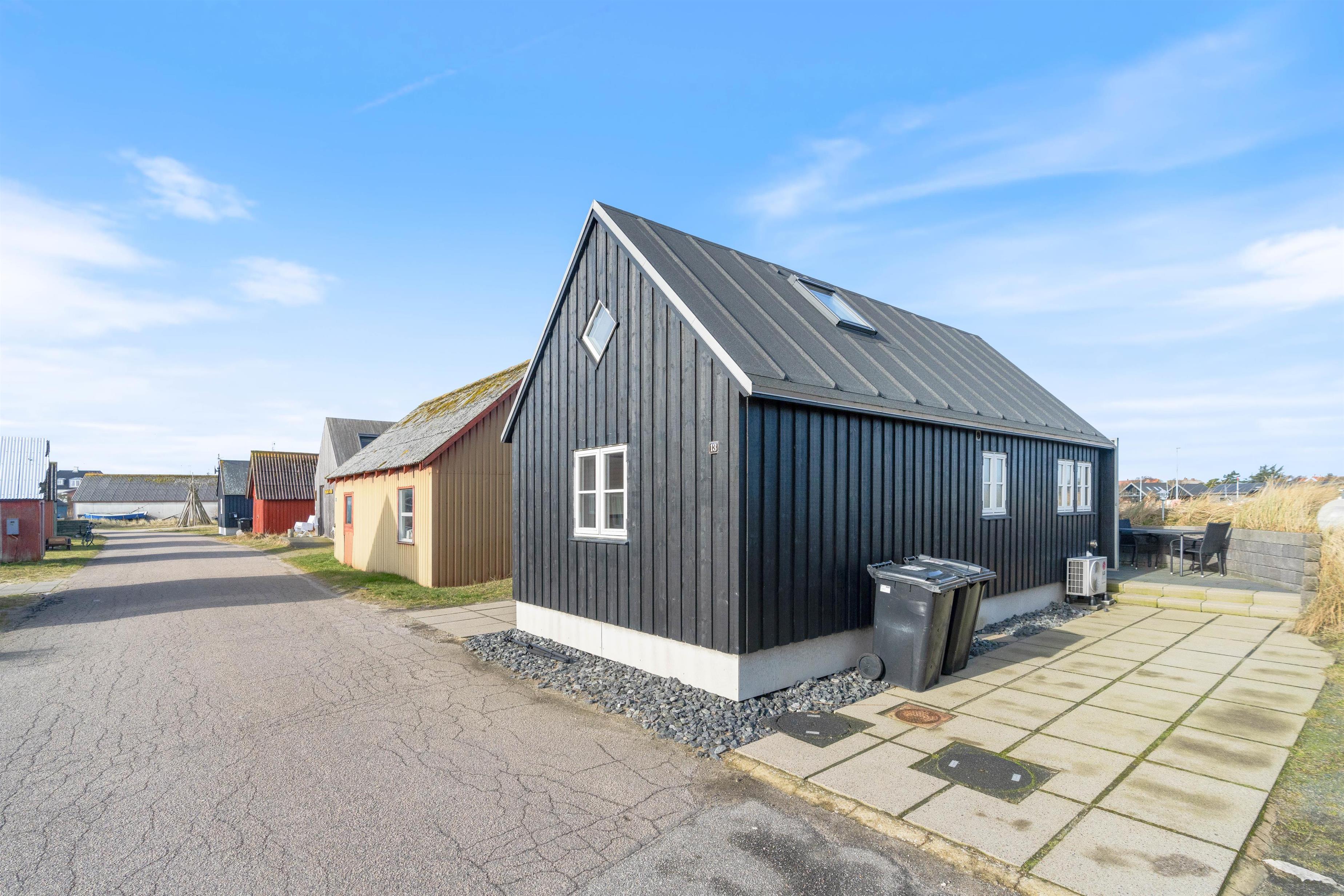 Moderne hytte på Tyskerhavnen i Hvide Sande. Hytten er bygget i stil med de gamle redskabshuse, der også ligger i området. Beliggenheden er perfekt for lystfiskeren, der kun har kort afstand til fiskepladsen herfra.