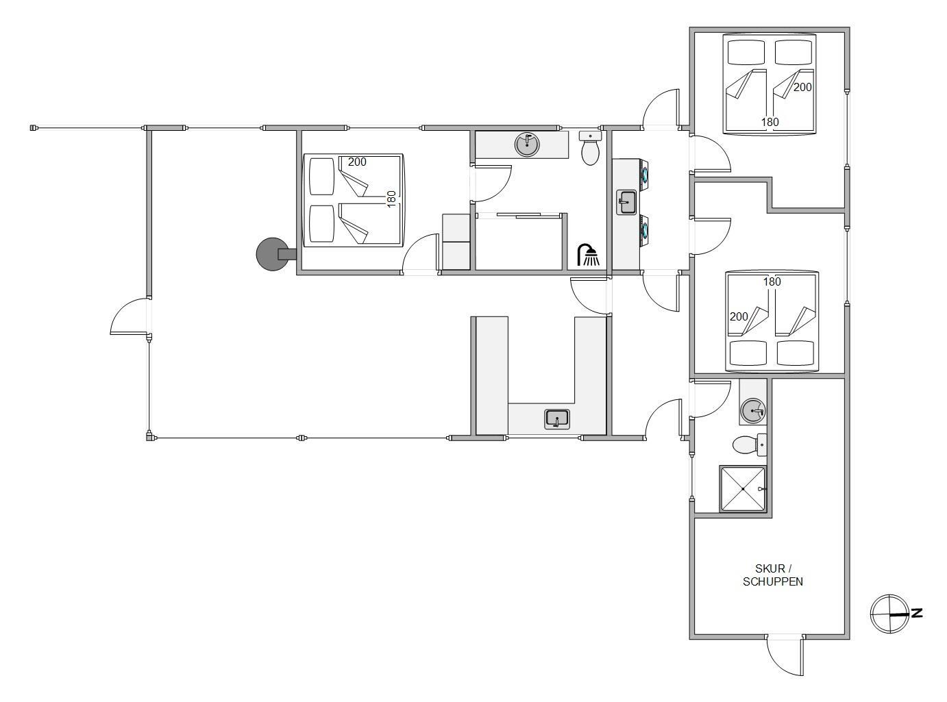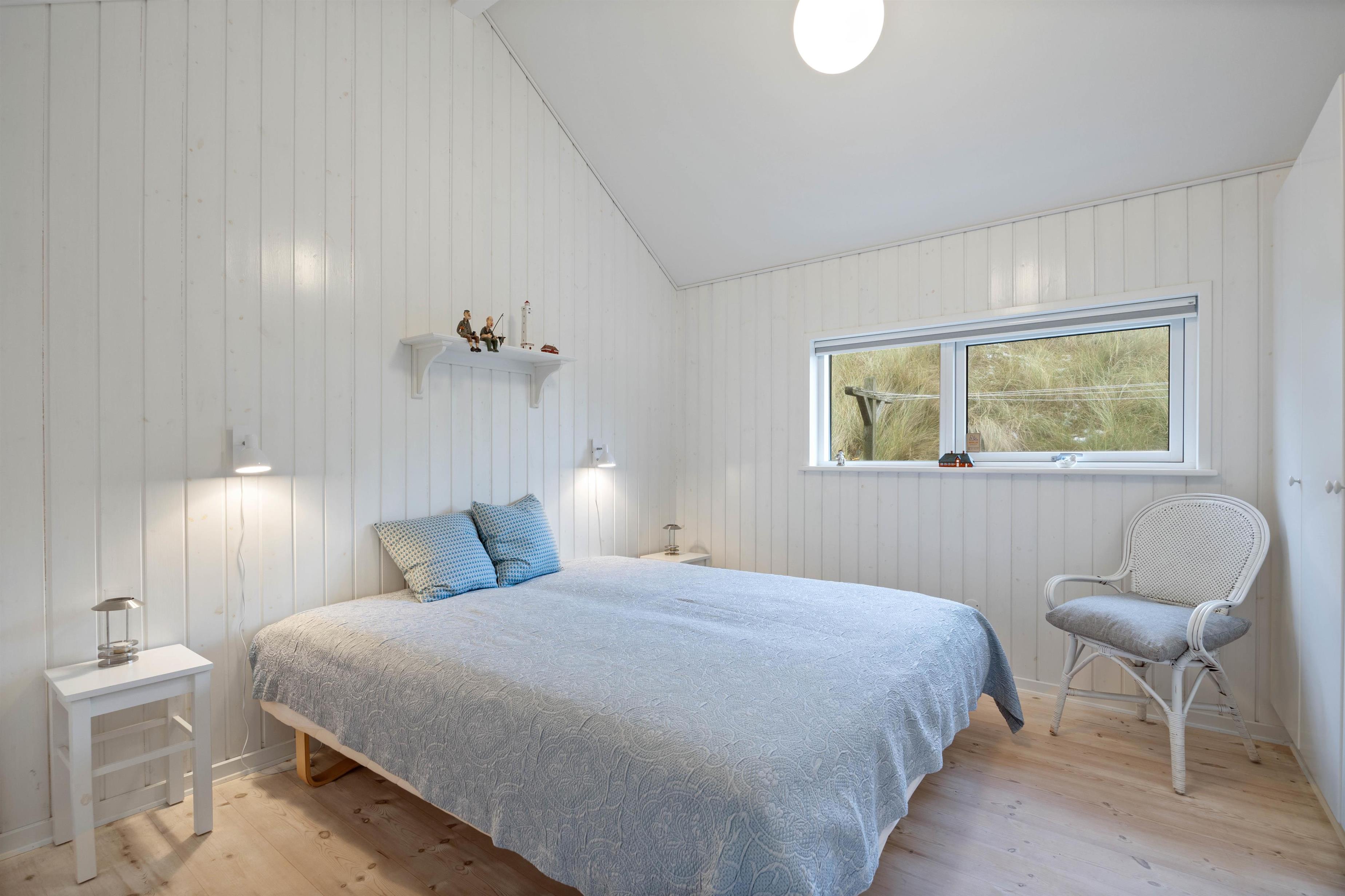Sommerhuset er 109 m2 stort, og der er plads til 6 personer. Derfor er der 6 sovepladser fordelt i tre soveværelser, hvoraf de alle har dobbeltsenge. Derudover har sommerhuset 2 badeværelser, som begge har dejlig gulvvarme. I sommerhuset finder I også både en vaskemaskine og tørretumbler, så det bliver nemt for jer at vaske jeres tøj.