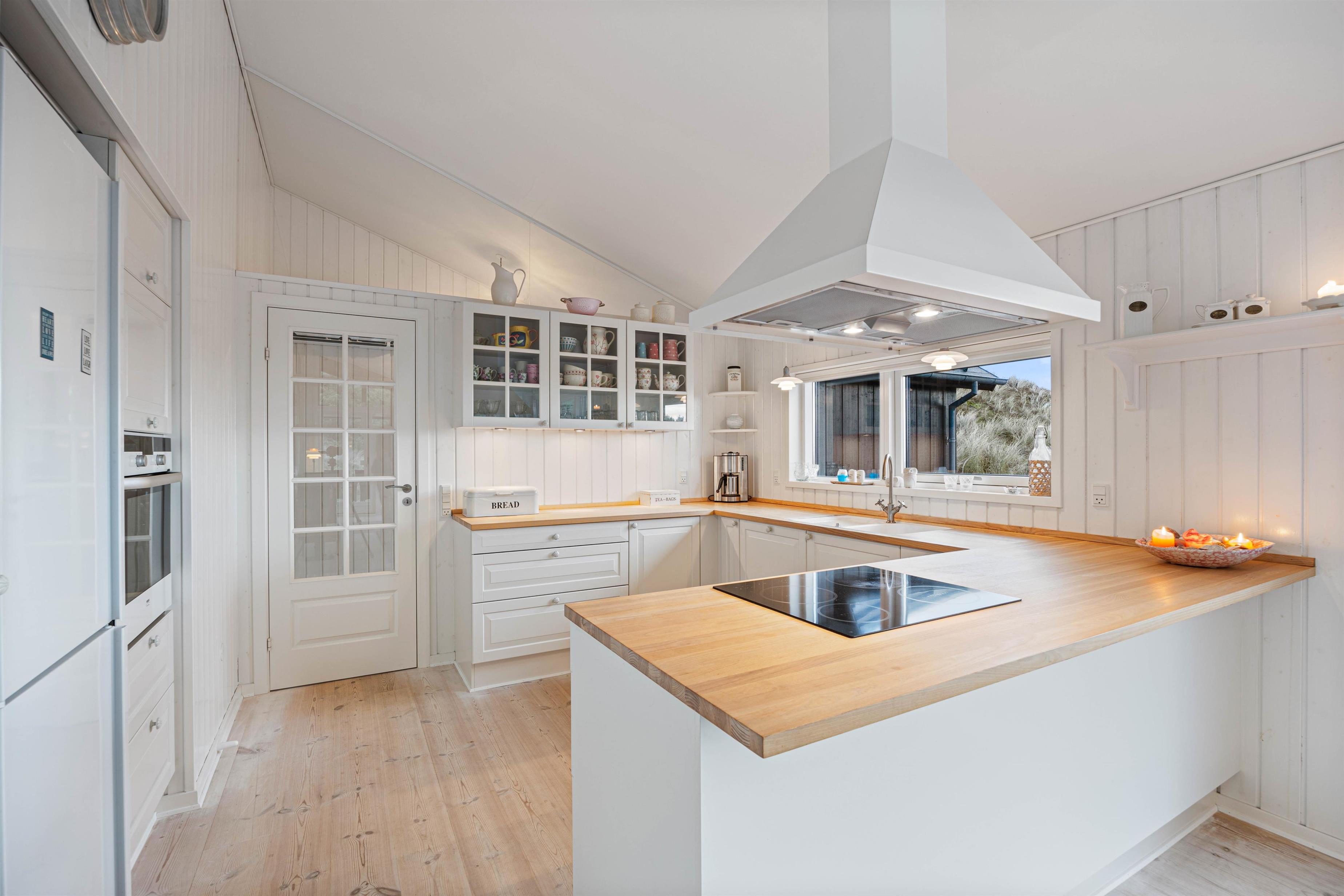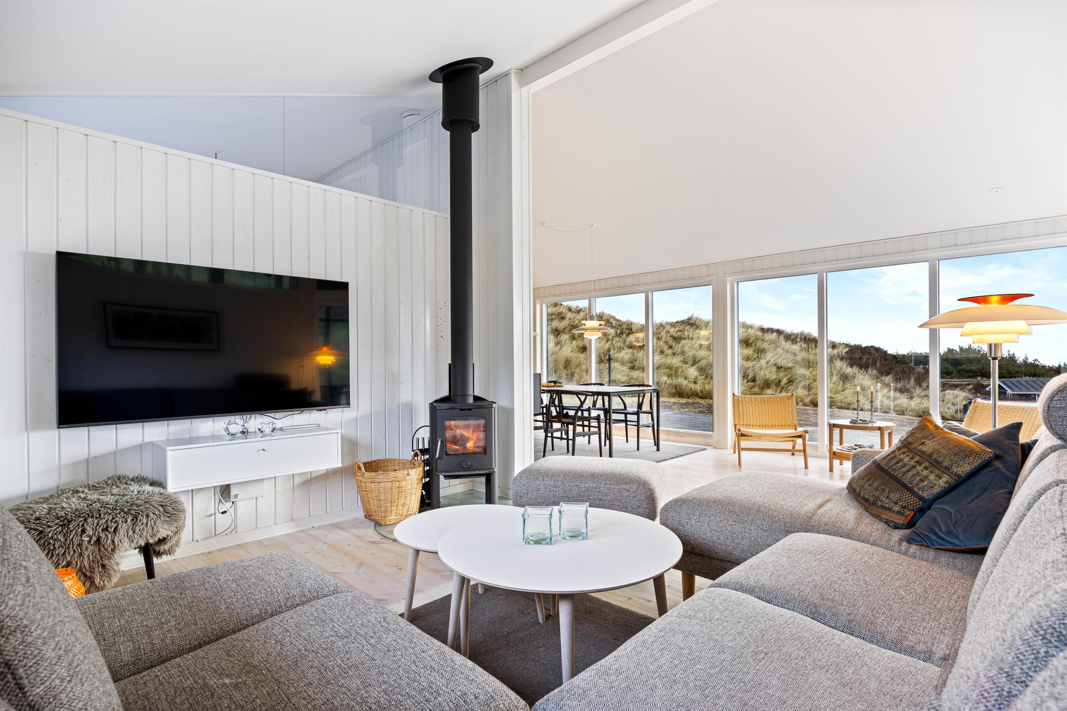 Når du træder ind ad døren, vil du se et godt, traditionelt sommerhus men med et moderne pift. De lyse gulve, hvide trævægge og lyse indretning vil lægge op til en hyggelig ferie. Sommerhuset er nemlig bygget i 2008, hvilket er med til at give charmen til huset. Det rummelige køkkenalrum byder på gode snakke over køkkenet, sjove familiespil ved bordet og hyggelige filmaftener i sofaen foran brændeovnen.
