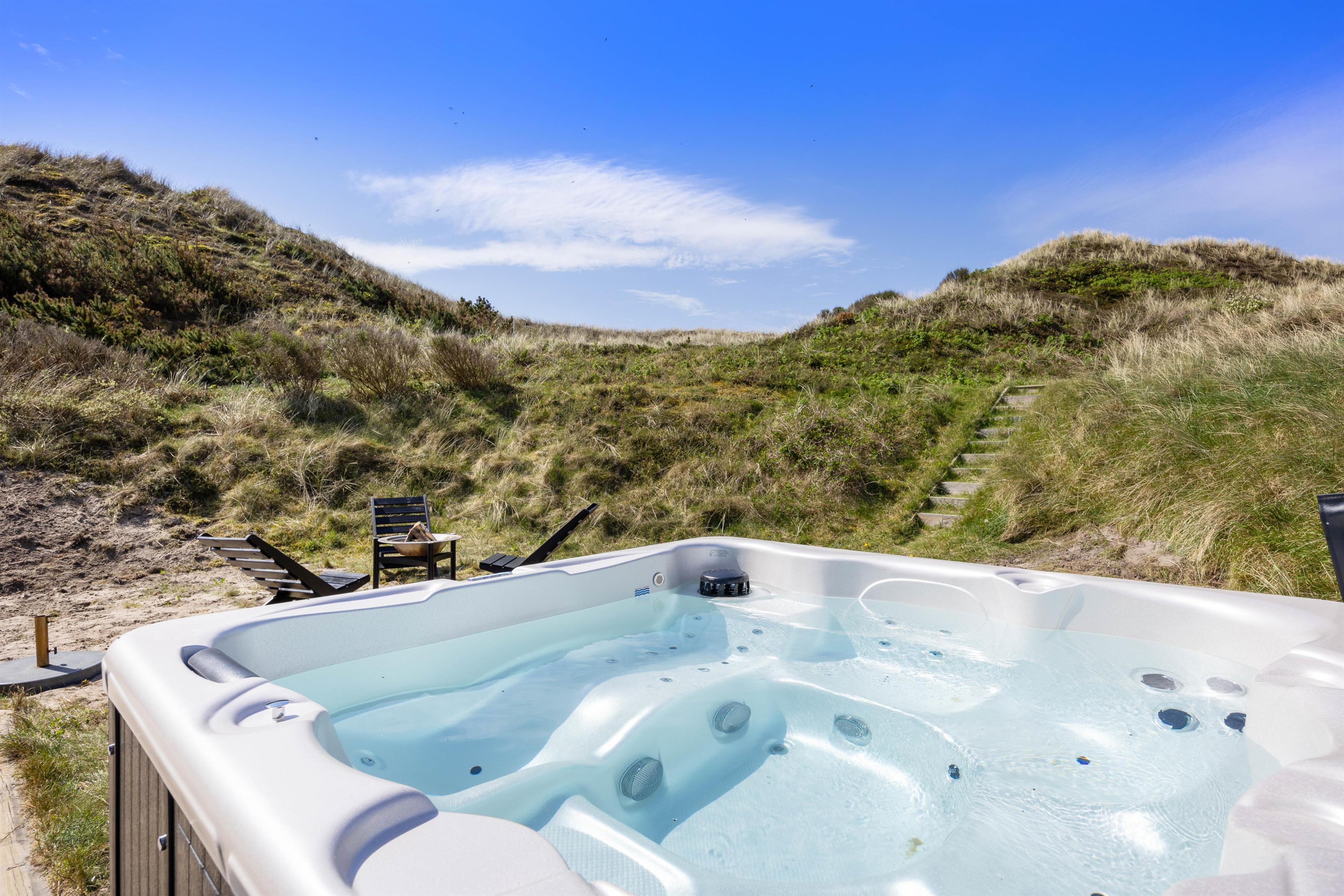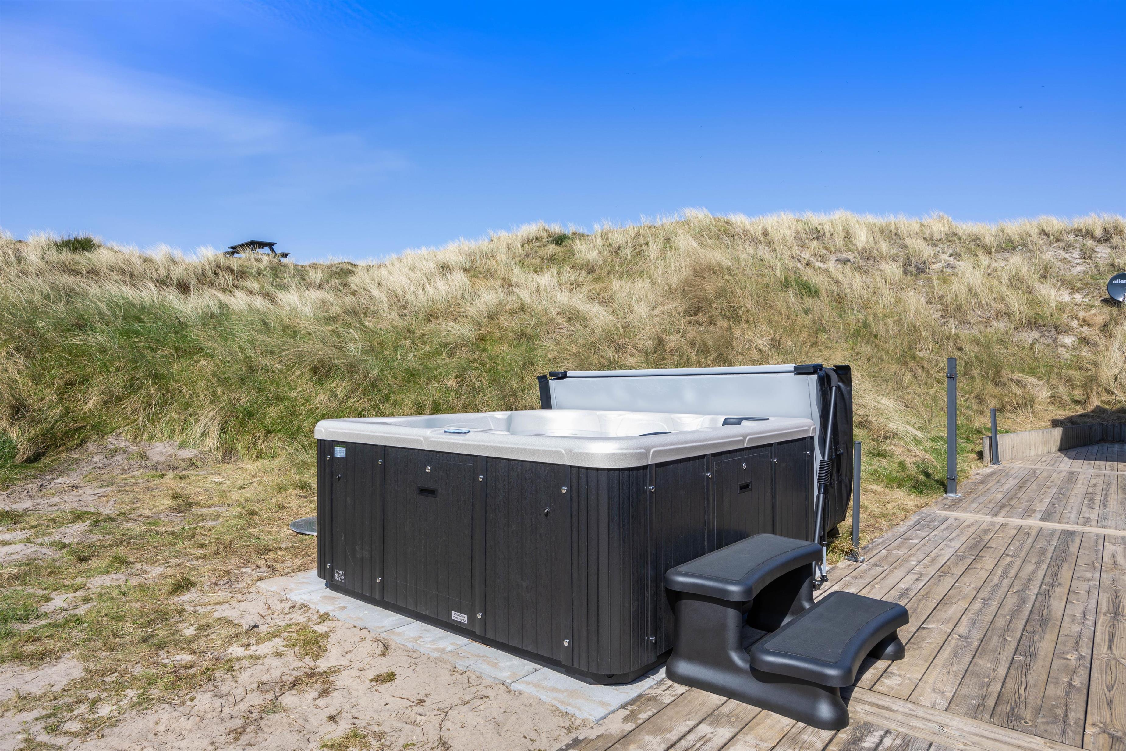 Det skønne sommerhus ligger ikke langt fra byen, og vil I på indkøb, er der kun 1300 meter til købmanden. Hvis I vil ned til en af byens restauranter om aftenen, kan I også tage en hyggelig gåtur dertil. Når I om dagen vil til stranden, er der faktisk kun 250 meter hertil. En lille gåtur over det næsten uberørte klitlandskab er en skøn tur, som I vil nyde. Når I kommer tilbage til sommerhuset, kan I skylle tæerne under udebruseren, som er tilgængelig fra april til november.