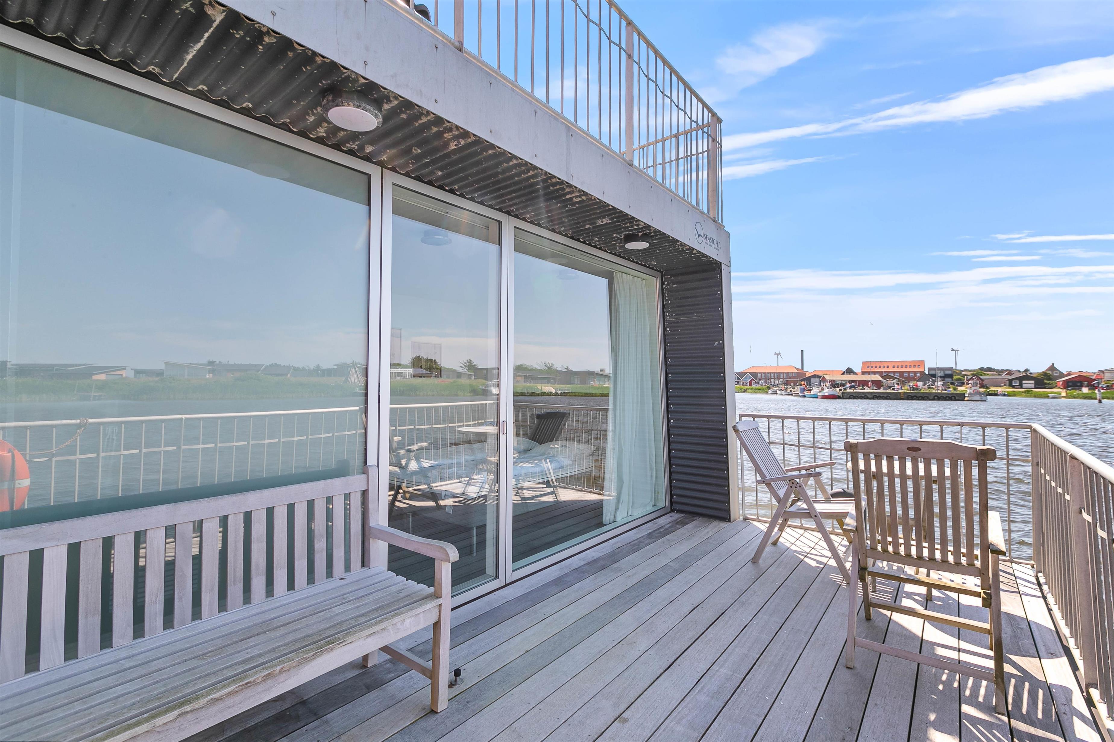 Ferie på en husbåd kan ikke sammenlignes med noget andet. Det er en oplevelse helt i særklasse. Man bor på vandet og har alligevel alle faciliteter, som er at finde i et luksus sommerhus. Derudover får I en pragtfuld beliggenhed med fantastisk udsigt og nær byliv med butikker og restauranter. Husbåden, som er fra 2005, er på 105 m2 og ligger i den hyggelige “Tyskerhavn” i Hvide Sande. Der er 3 soveværelser; et master bedroom med gulvtæppe og dobbeltseng, 1 værelse med 2 enkeltsenge og et med en mindre dobbeltseng. Ovenpå finder I den flotte og hyggeligt indrettede stue med en fantastisk udsigt over havn og fjord. Her er der fladskærms-TV og en flot knitrende brændeovn, som skaber hygge og varme. I stueetagen finder I husets 2 badeværelser. Et med bruseniche, gulvvarme og sauna, og et andet med bruseniche, gulvvarme og et lækkert hjørnespabad. Køkkenet er veludstyret med opvaskemaskine, mikroovn og en fryser på 40 L. Der er desuden vaskemaskine og tørretumbler.