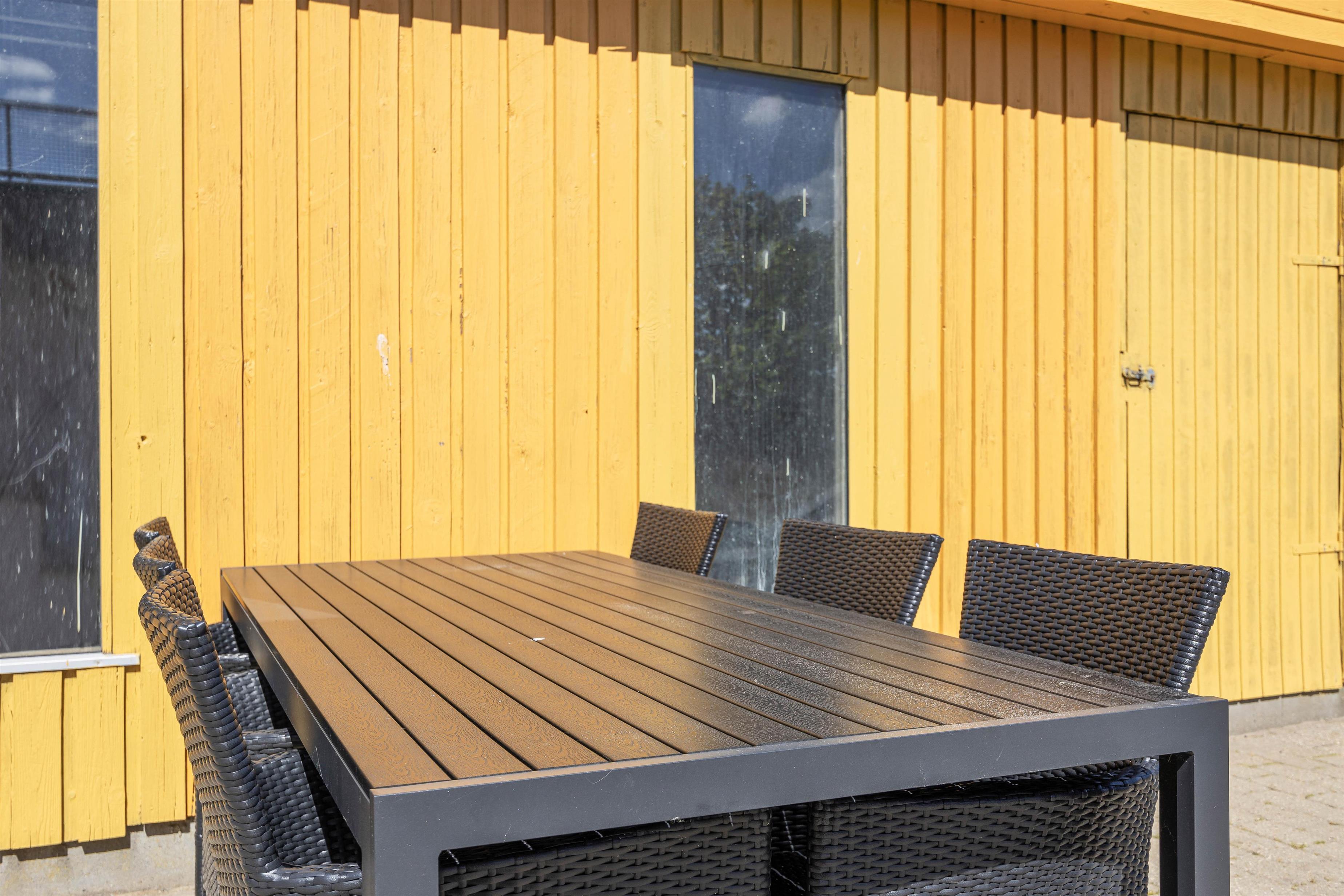 Udenfor venter jer en fin terrasse, hvor I kan nyde vejret. Slå jer ned i de komfortable havemøbler med en god bog, imens hunden får lov at rende rundt. På de lune solskinsdage kan I selvfølgelig også solbade på solvognene.