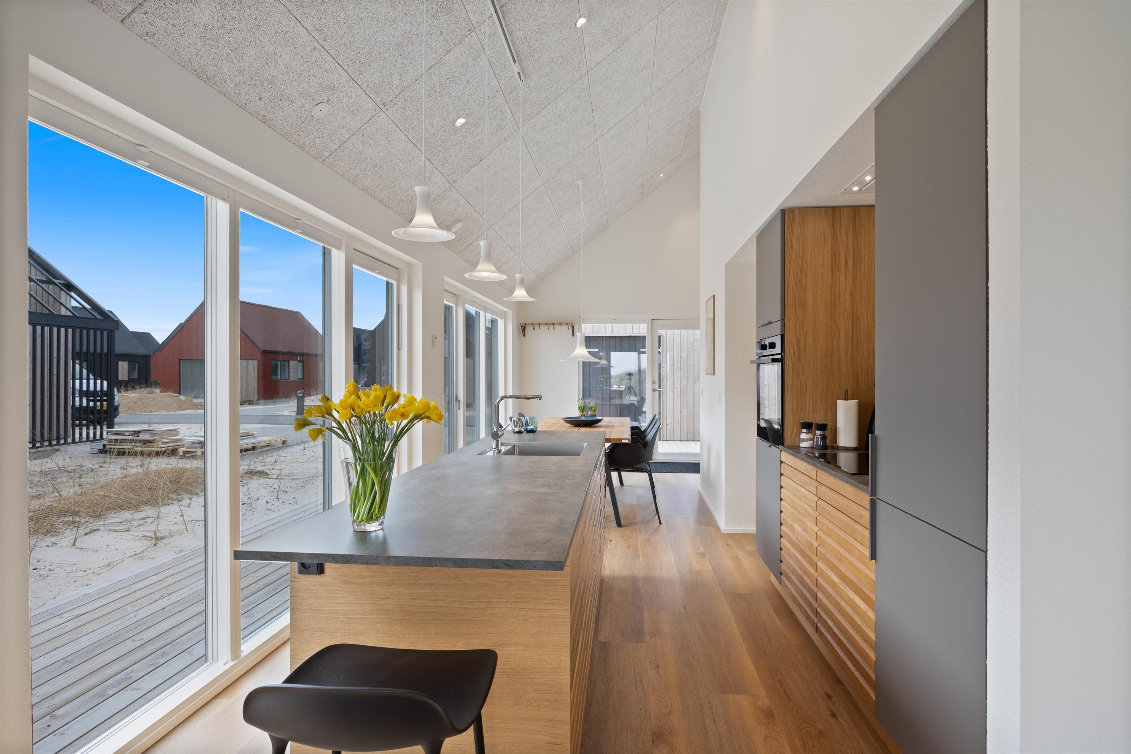 Sommerhuset er bygget i 2025 med store vinduespartier, som lukker masser af naturligt lys ind i rummene. I sommerhusets hjerte, det åbne køkkenalrum, kan hele familien samles om madlavning og hyggelige måltider. Køkkenet er naturligvis udstyret med både opvaskemaskine og god bordplads, så det er nemt at tilberede lækre måltider.