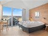 På Slusen 21 i Hvide Sande ligger denne flotte ferielejlighed med udsigt ud over Ringkøbing Fjord. Her kan I holde ferie med op til 4 personer (og 2 hunde), og de to etager er rigtig velindrettede med blandt andet brændeovn, sauna og spabad. Beliggenheden er skøn, og både stranden og byen kan nås til fods.